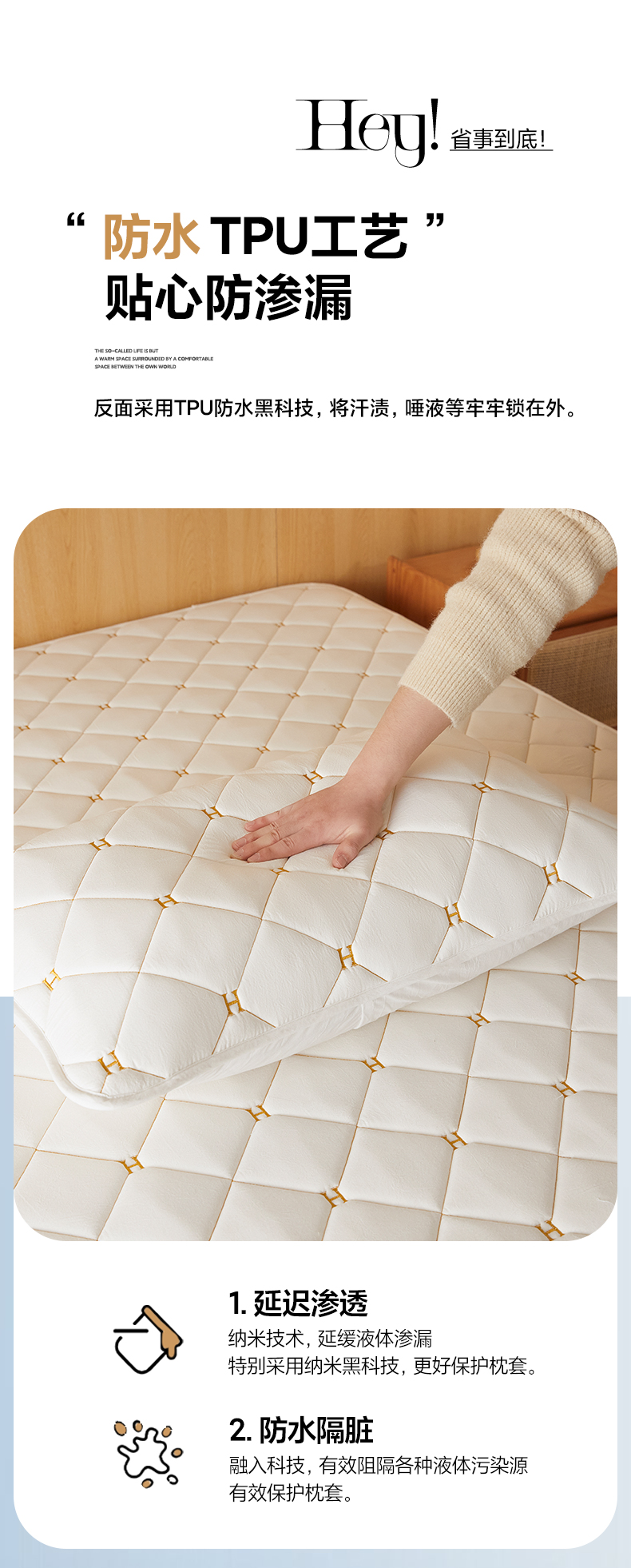 芬晴家纺 2025新款全棉水洗棉A类防水系列枕套 H-星灰