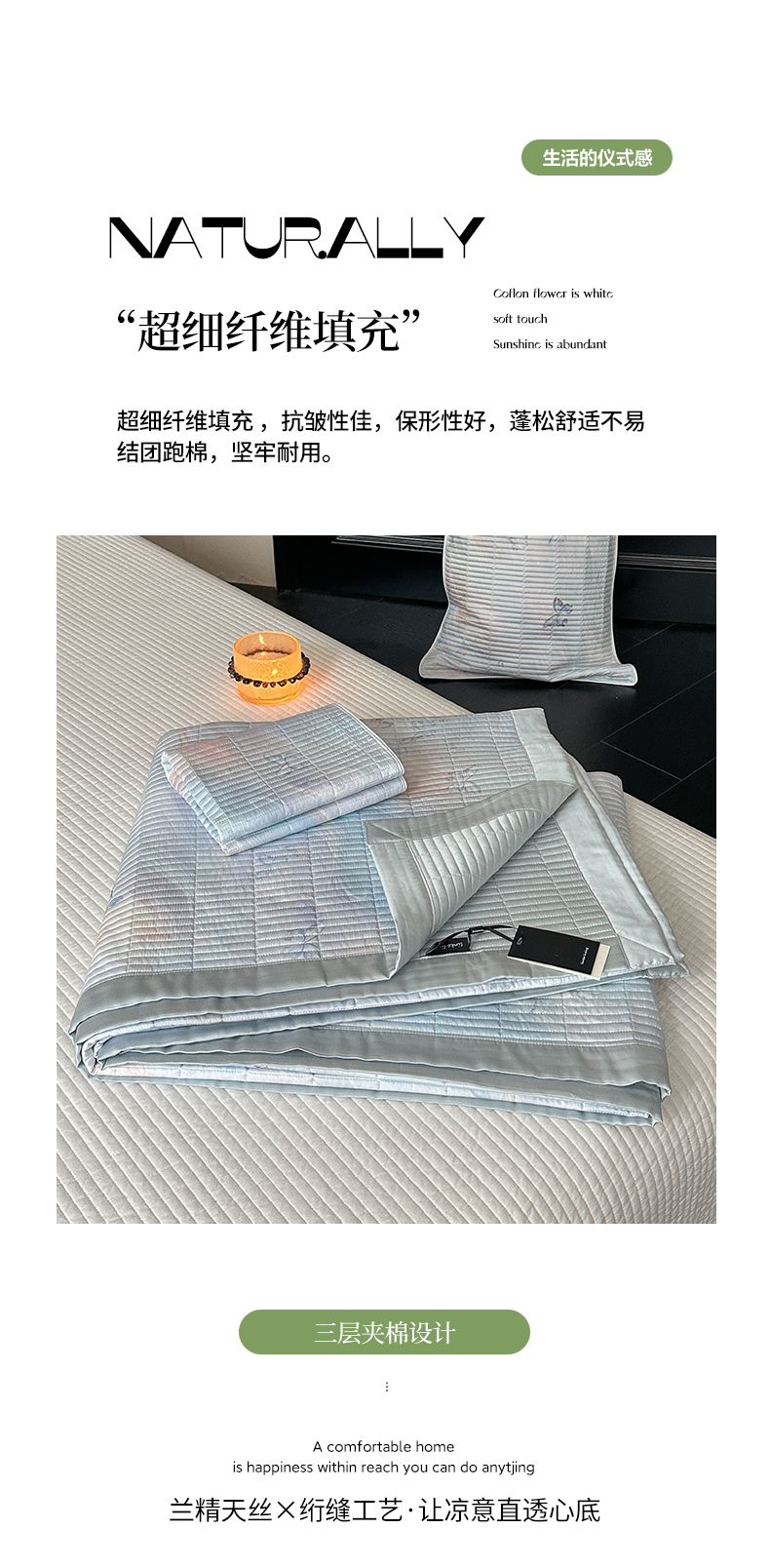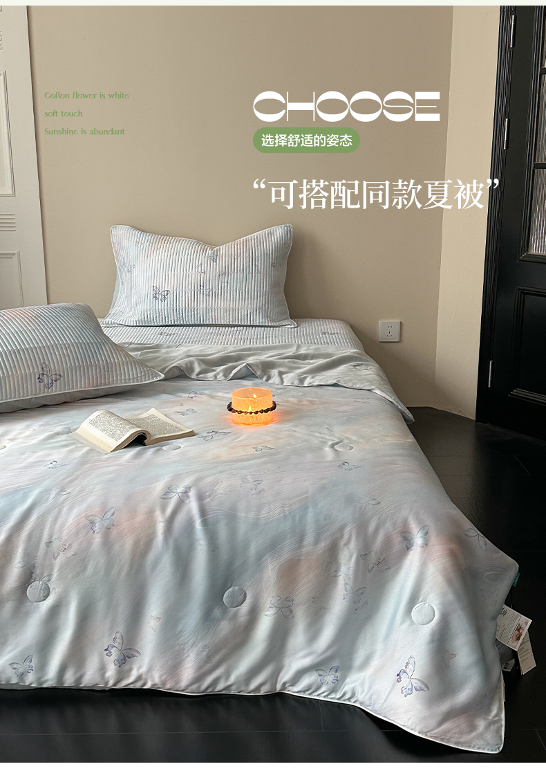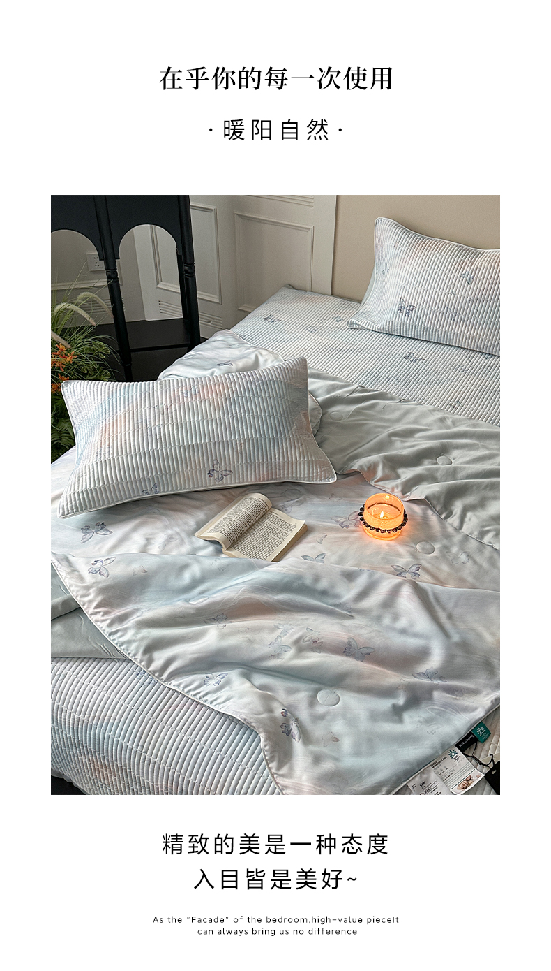 商品名称:2025新款幻蝶系列奥地利进口兰精天丝床盖三件套双面可用可搭同款夏被(提供买家秀) 幻蝶-蓝