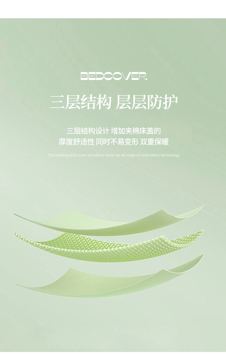 2022新款40S纯棉水洗棉全棉荷叶边夹棉床盖三件套青草绿,青草绿