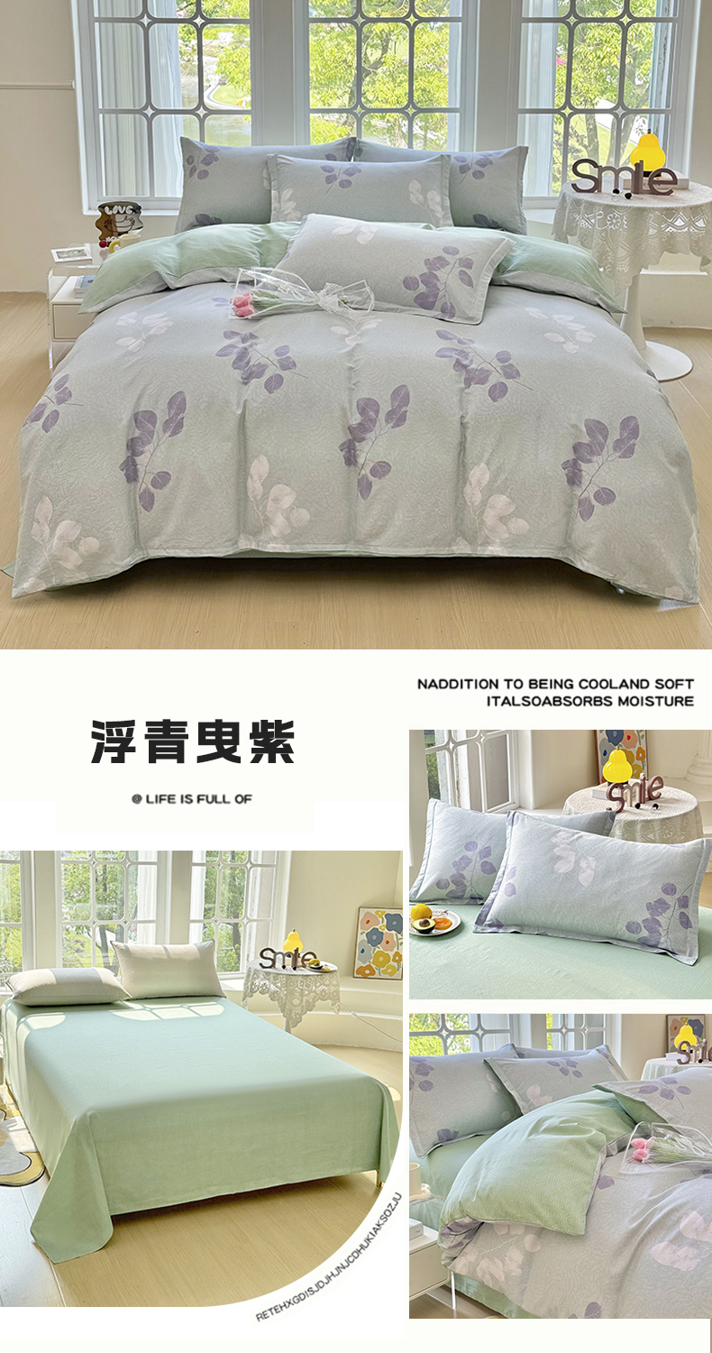 (总)珂博家纺 2025新款12868全棉纯棉小清新印花四件套学生宿舍三件套-系列二,繁花似锦,粉萼摇青,粉穹星语,浮青曳紫,结系花铃,汪星织梦,樱露垂角