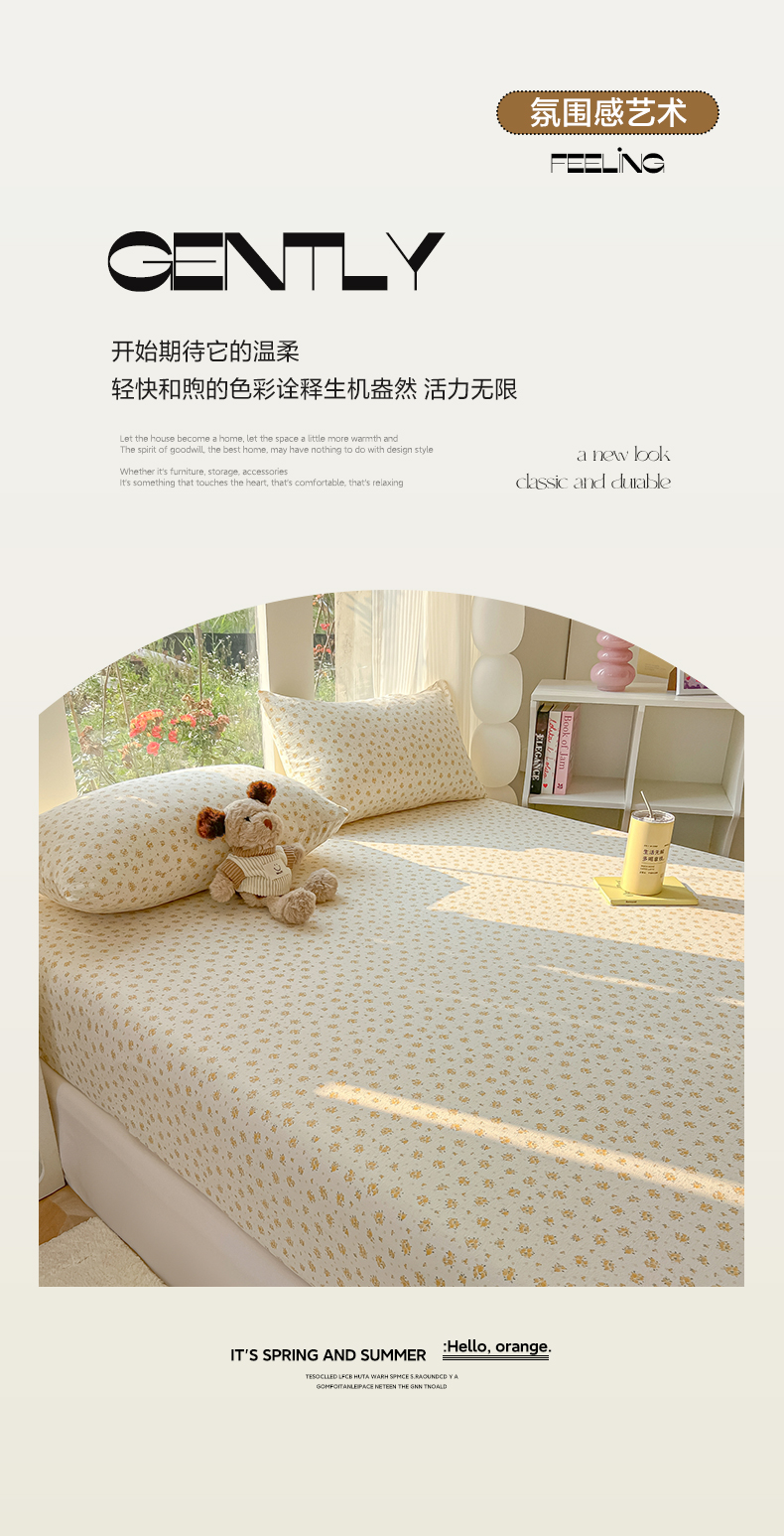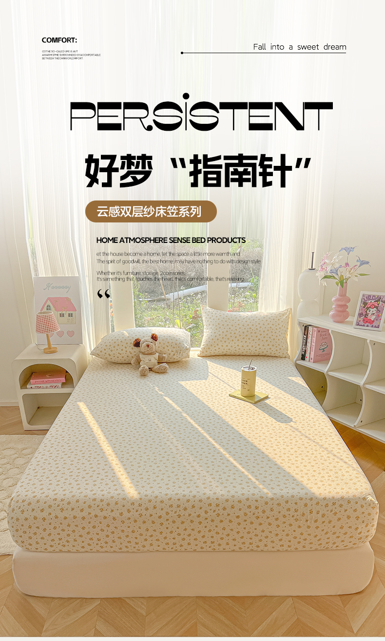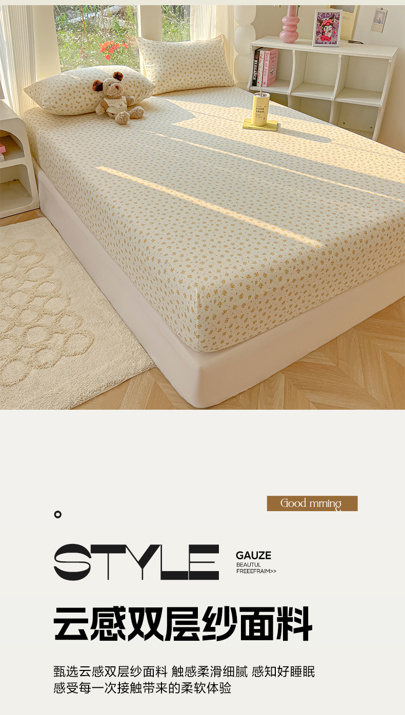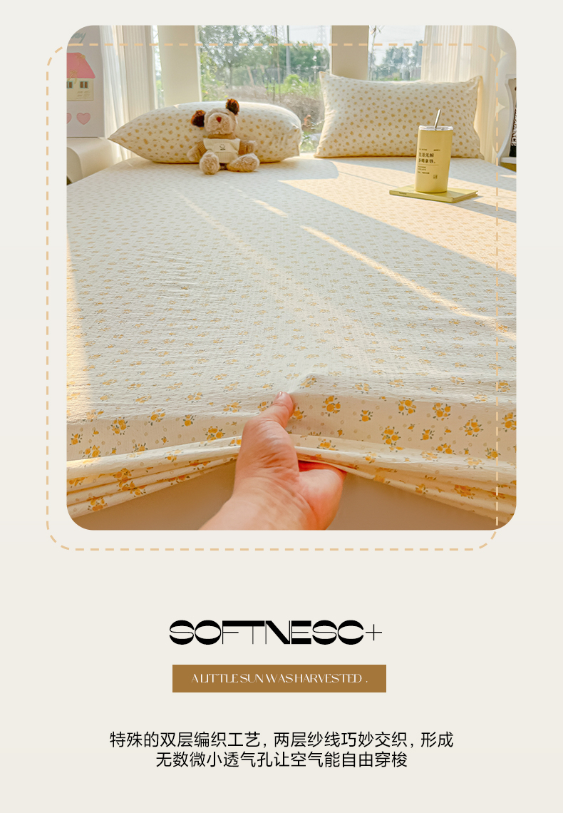 • 91家纺网 家纺一手货源 找家纺 韩巢家纺 2025新款云感提花双层纱单床笠热销款防滑床笠单件 橘子海
