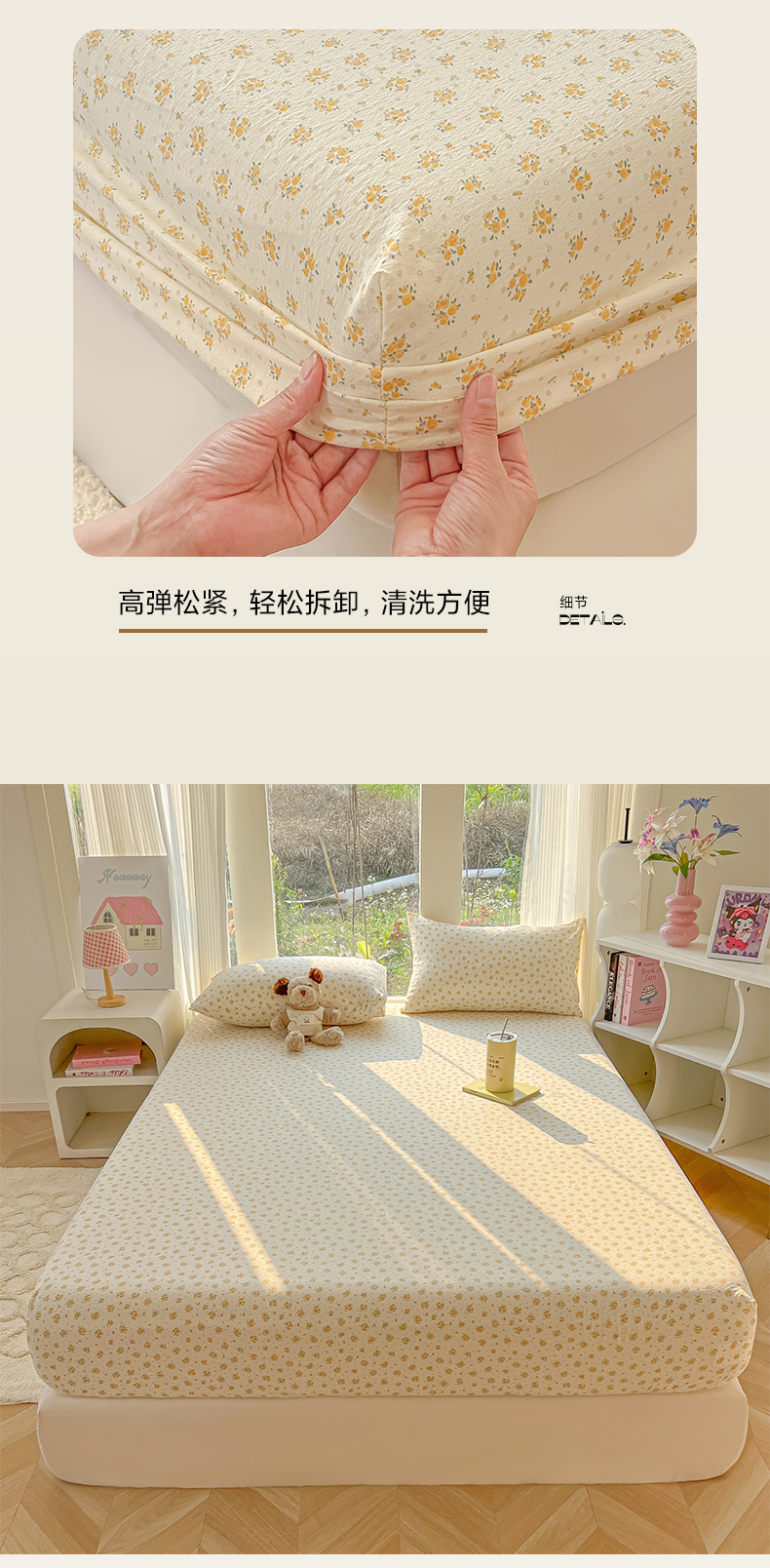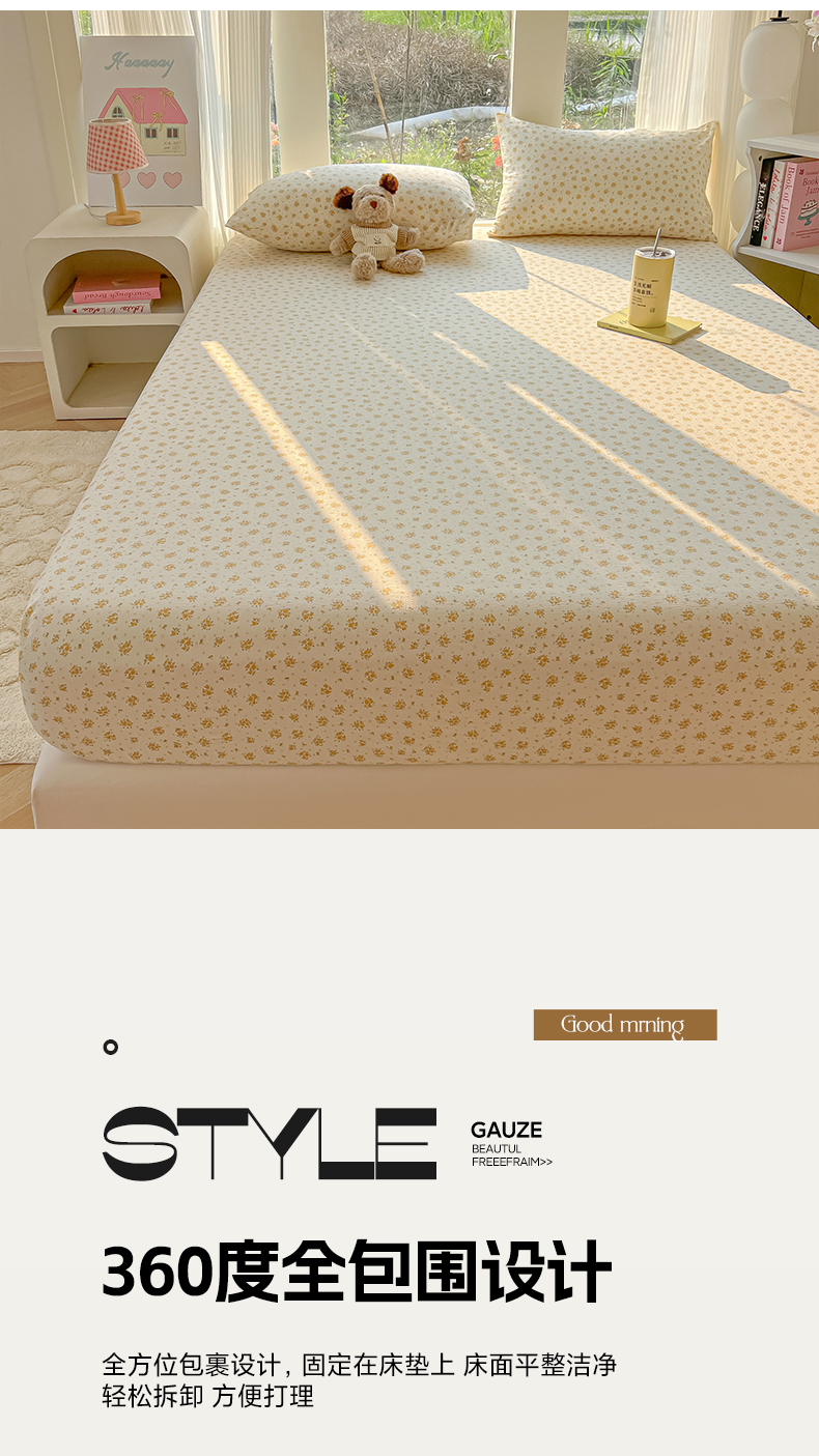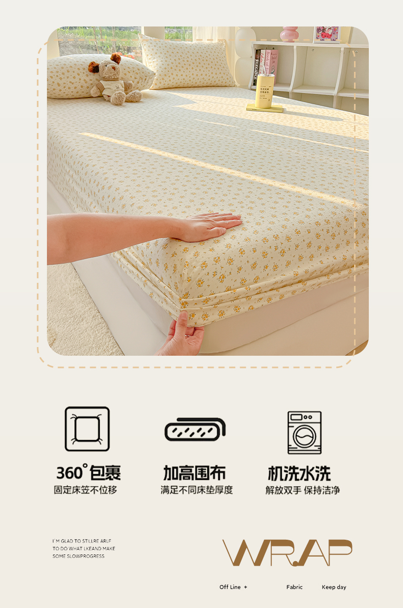 • 91家纺网 家纺一手货源 找家纺 韩巢家纺 2025新款云感提花双层纱单床笠热销款防滑床笠单件 橘子海