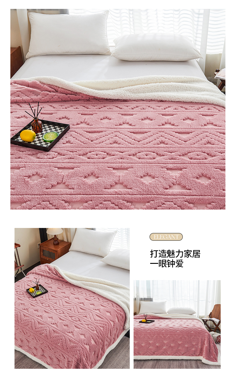 商品名称:枋梢家纺 2025新款提花舒棉绒镂空塔芙绒羊羔绒双层毛毯毯子跨境电商 组合图仅供参考