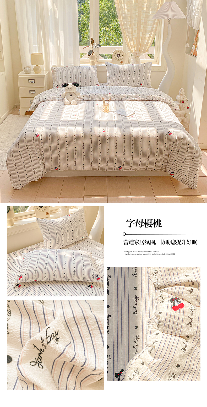 • 91家纺网 家纺一手货源 找家纺 眠势力 2025新款云感双层纱被套三件套ins奶油风云感超柔被罩单件四季款 甜樱蜜语