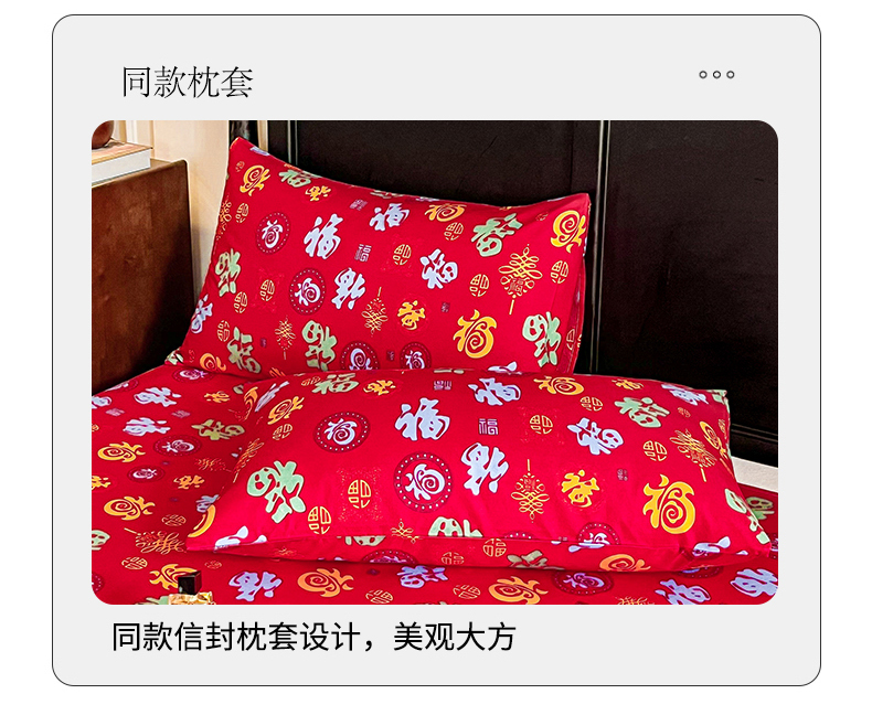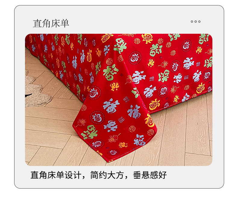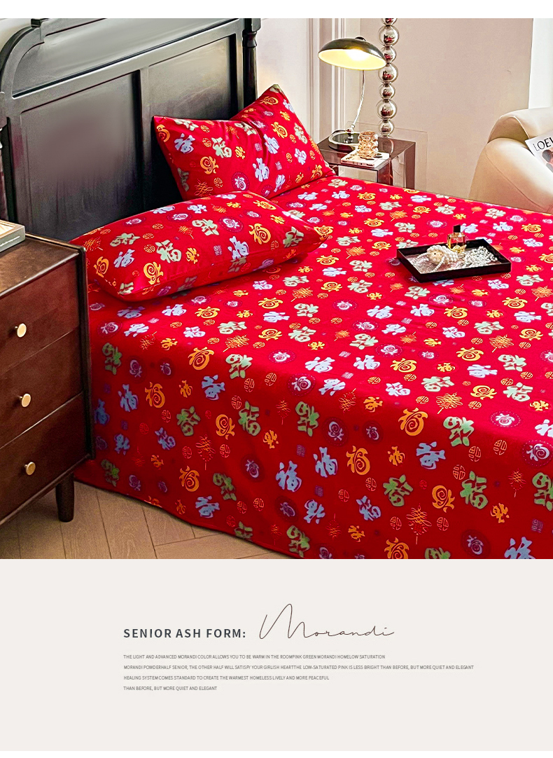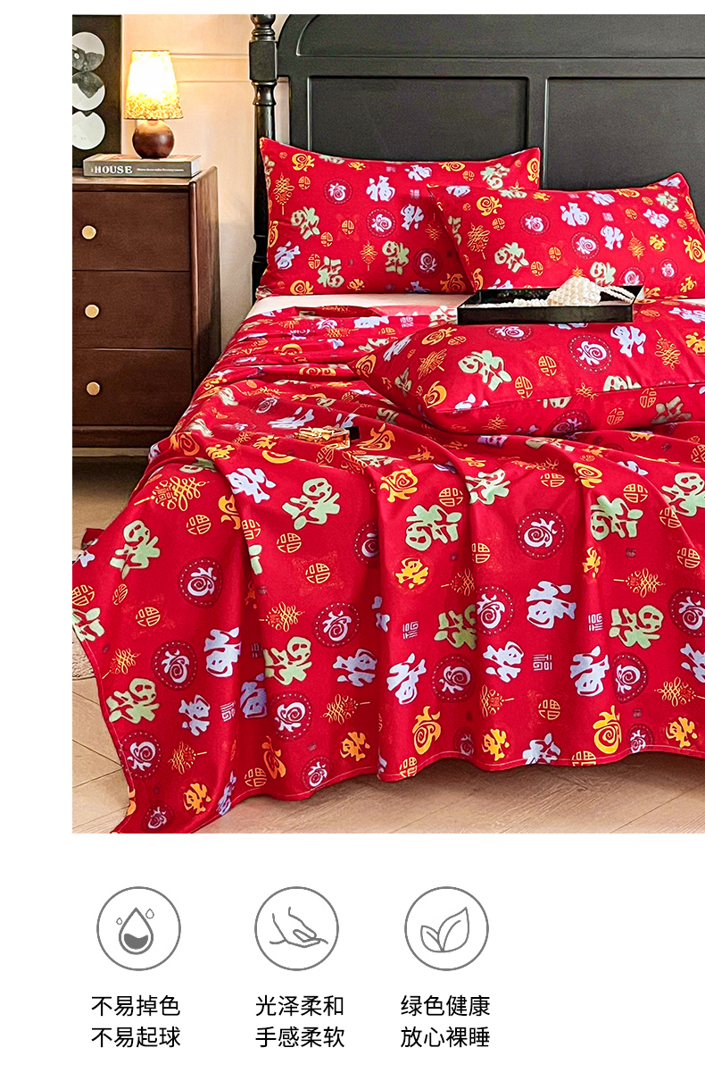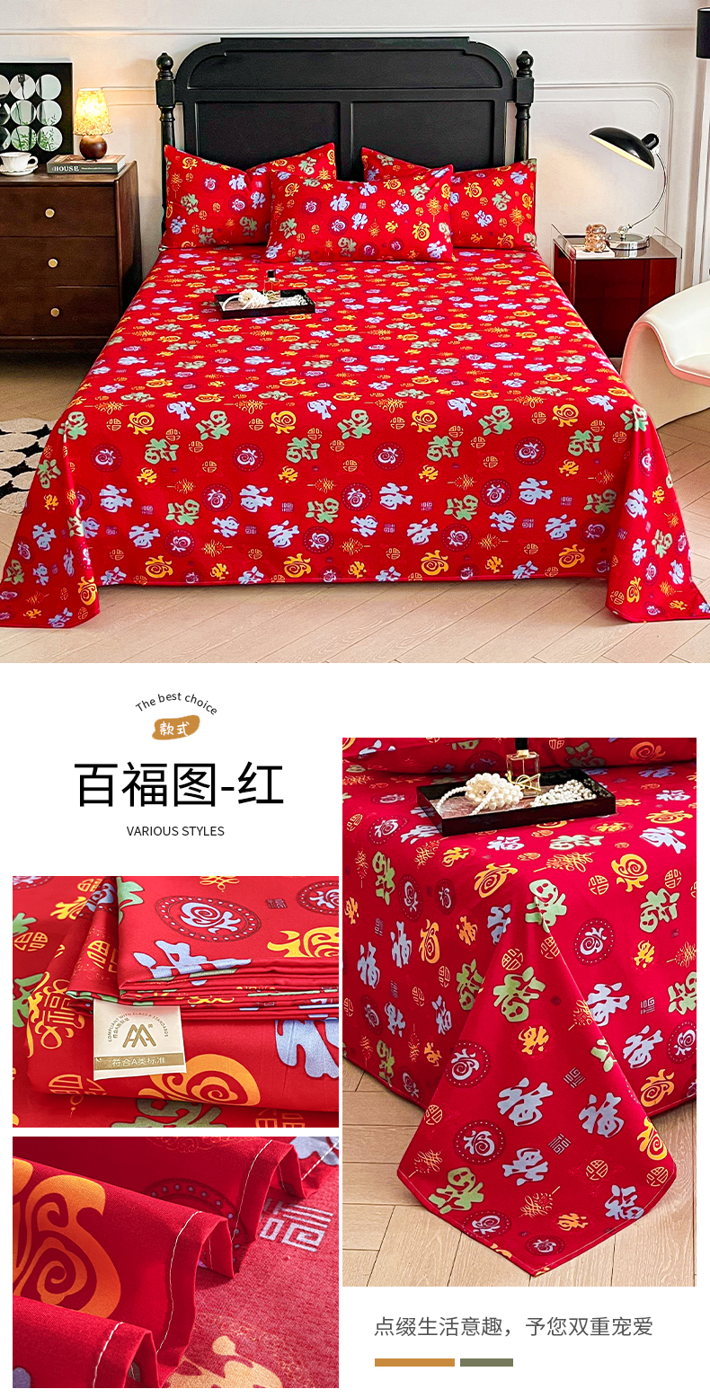 (总)优米家纺 2025新款水洗棉百福印花床单系列,百福图(红),百福图(绿)