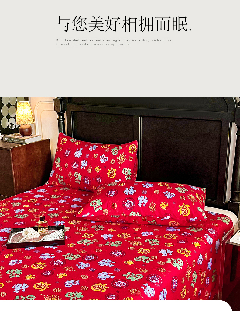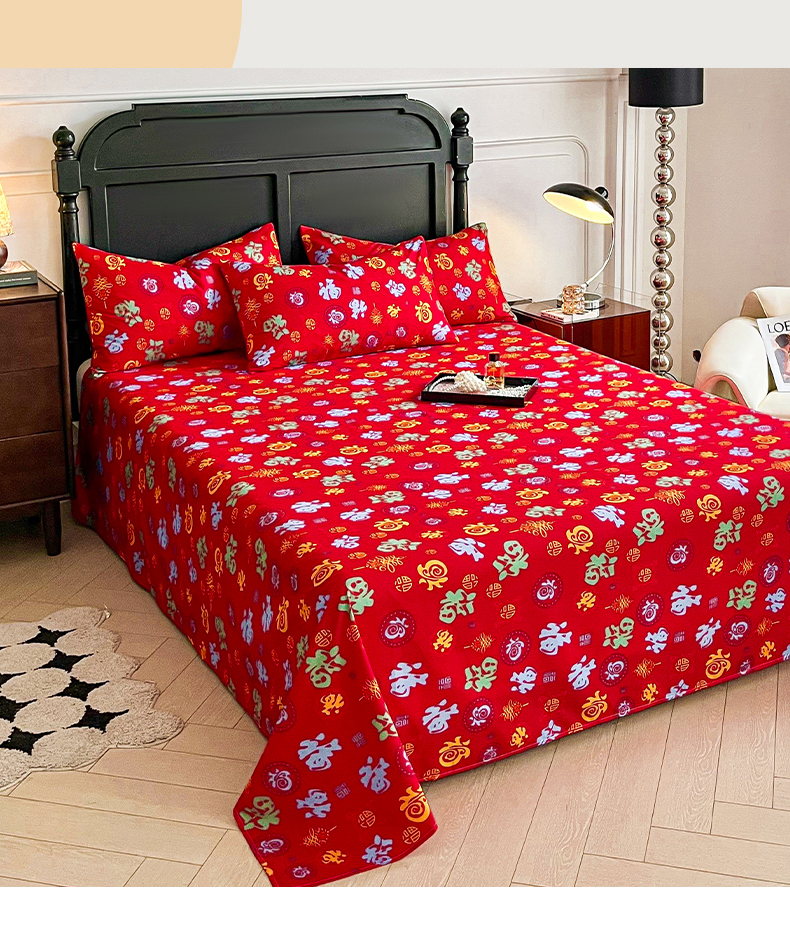 商品名称:优米家纺 2025新款水洗棉百福印花床单系列 百福图(红)