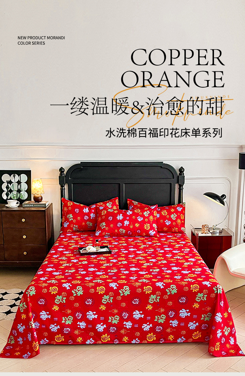 优米家纺 2025新款水洗棉百福印花床单系列 百福图(红)
