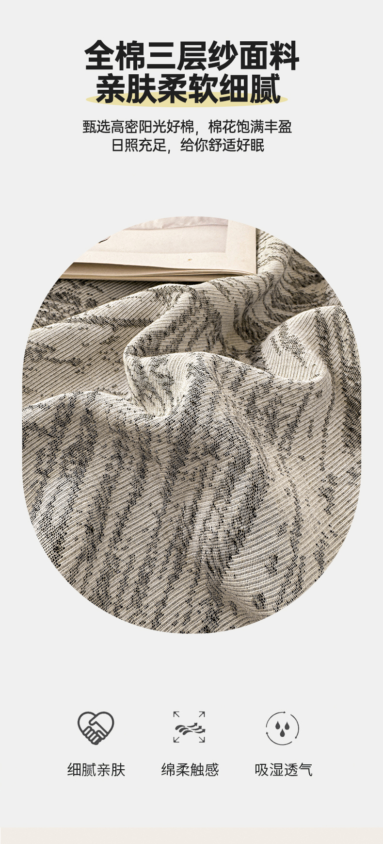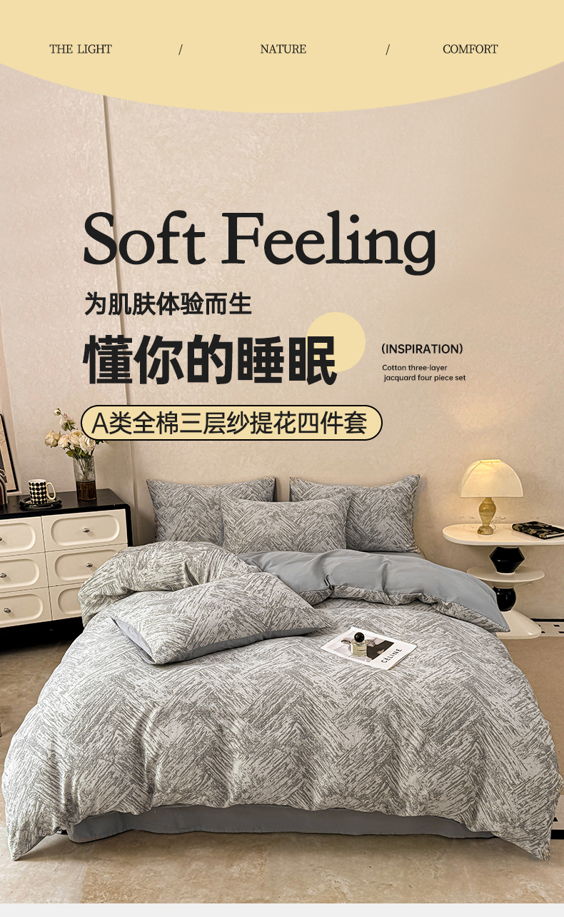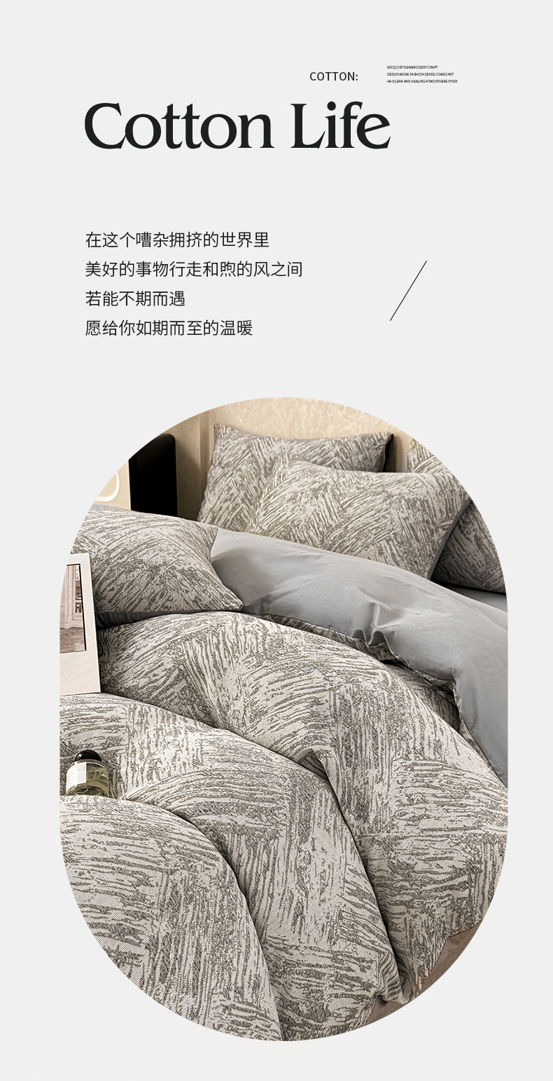 当前位置: 91家纺网 > 商品网购 > 床品套件 > 四件套 > 色织四件套 > 灰鲸2025新款A类全棉三层纱色织提花系列四件套 本色-灰