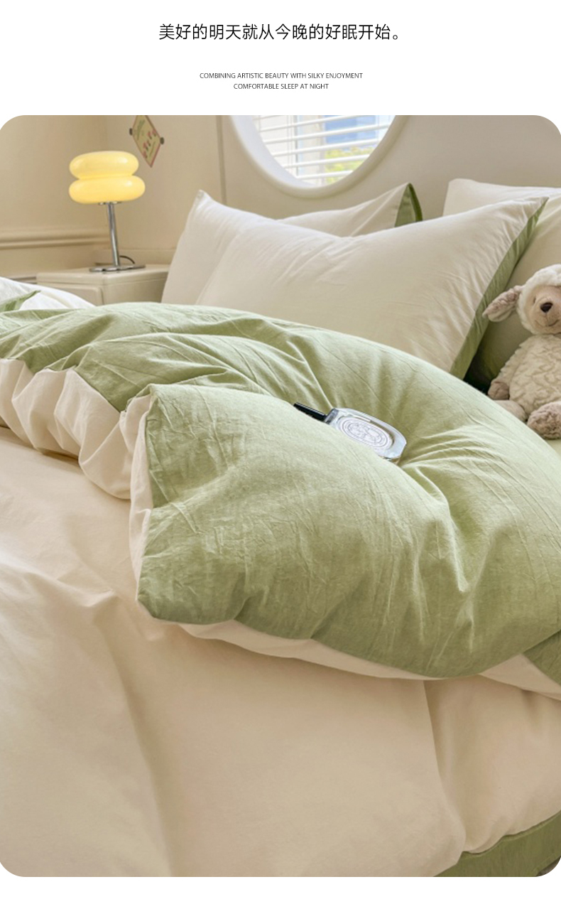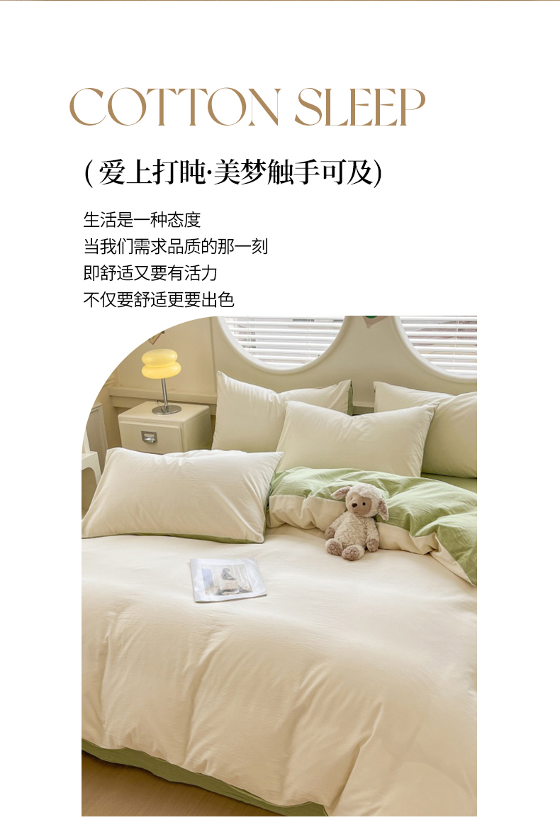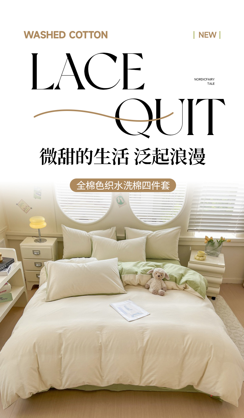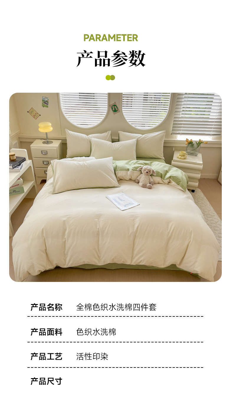 当前位置: 91家纺网 > 商品网购 > 床品套件 > 四件套 > 色织四件套 > 菡宝 【不断货 预留5公分缩水】a类母婴级纯棉全棉色织水洗棉四件套 支持定制定做尺寸 奶昔白可可绿