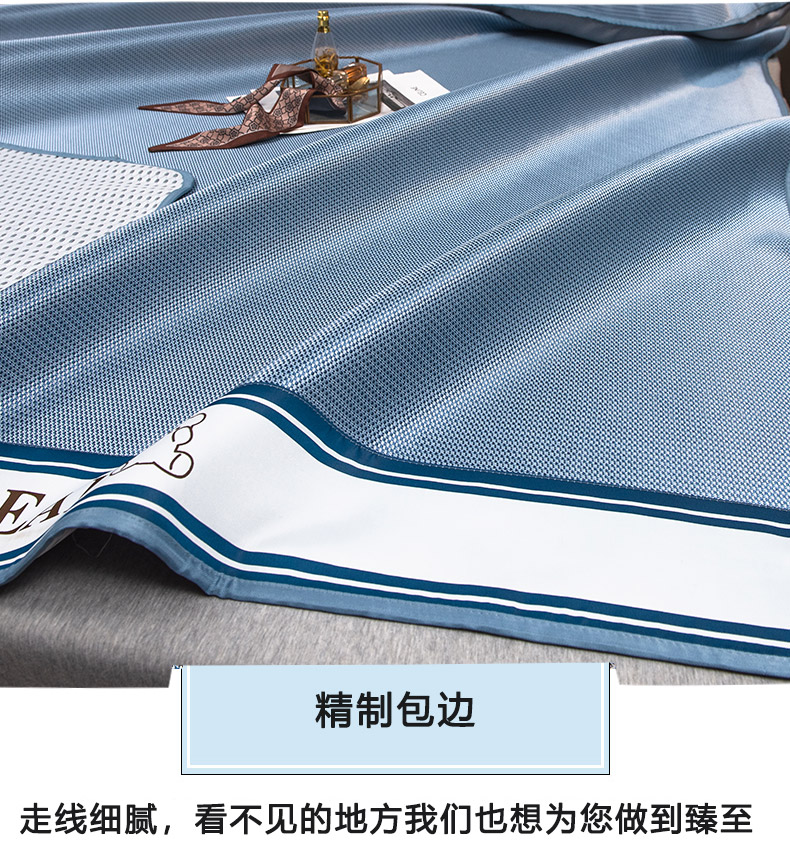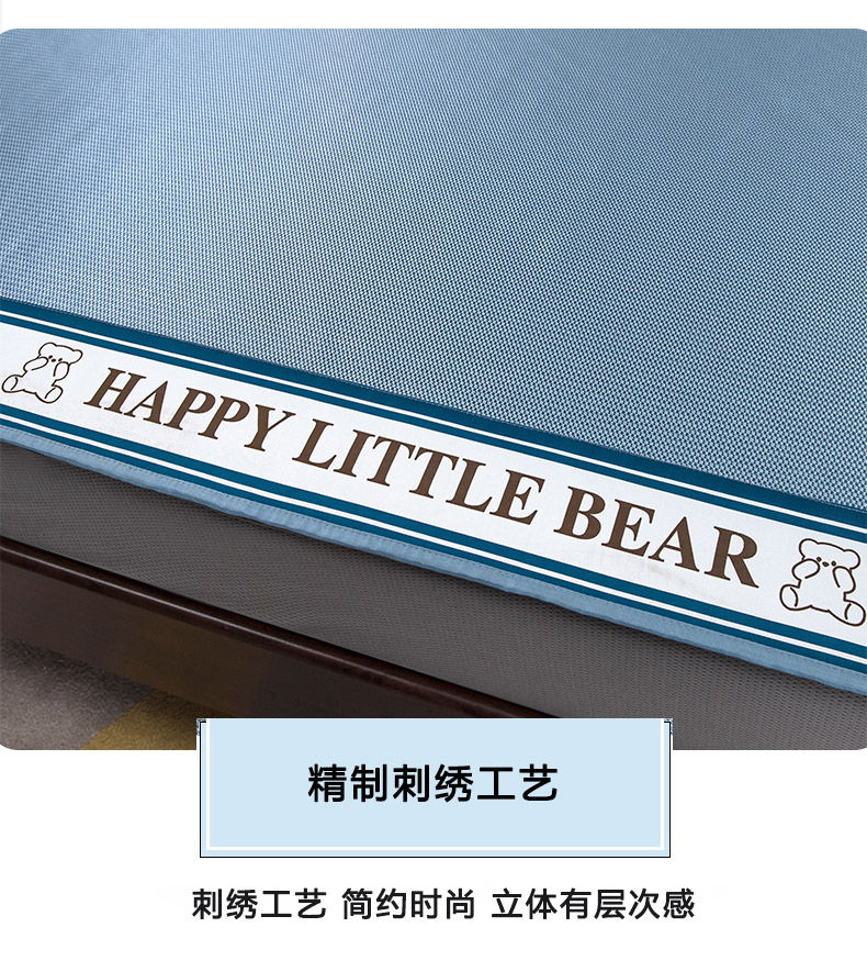 商品名称:莱家富 2025新款碳光席普通款小包边冰丝席 水绿色小熊包边款