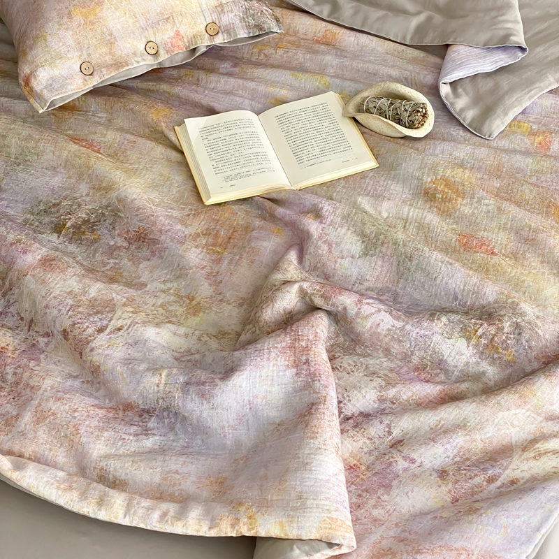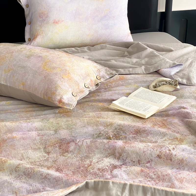 商品名称:(总)赫帛 2025新款60支全棉双层纱夏被-暮霭琉璃