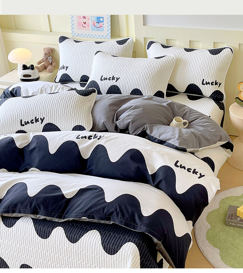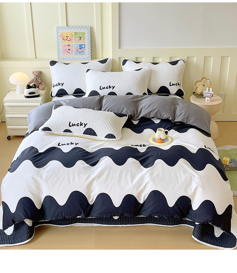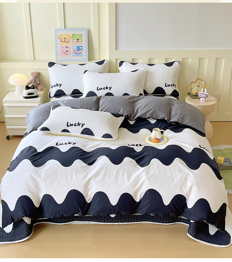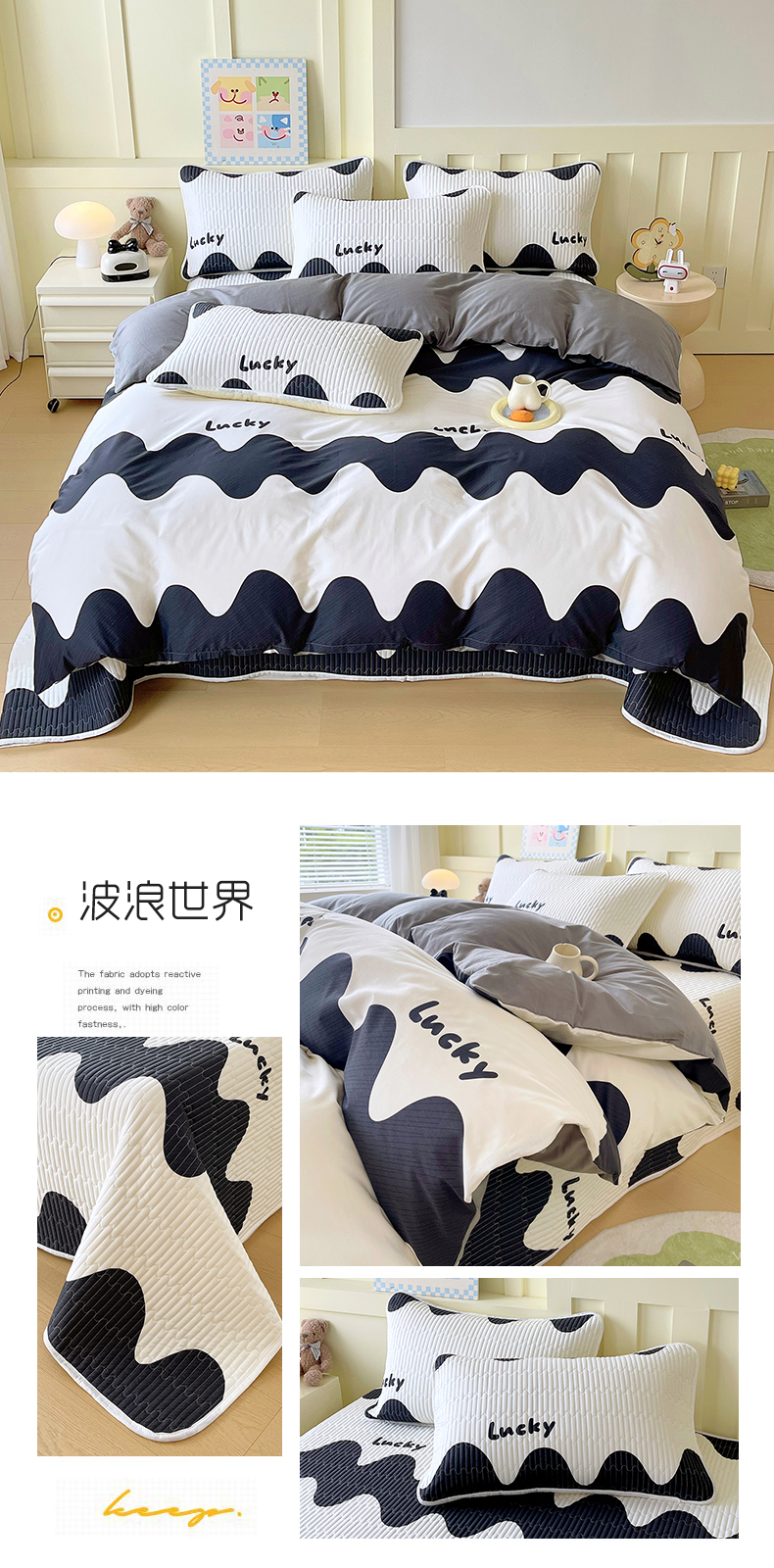 当前位置: 91家纺网 > 商品网购 > 床品套件 > 四件套 > 全棉普通四件套 > 2025新款A类全棉印花床盖四件套 波浪世界