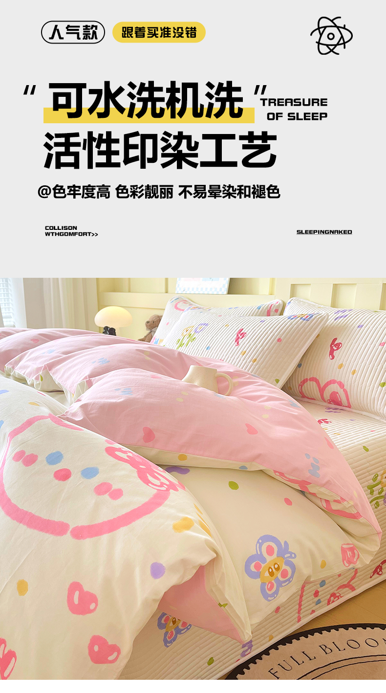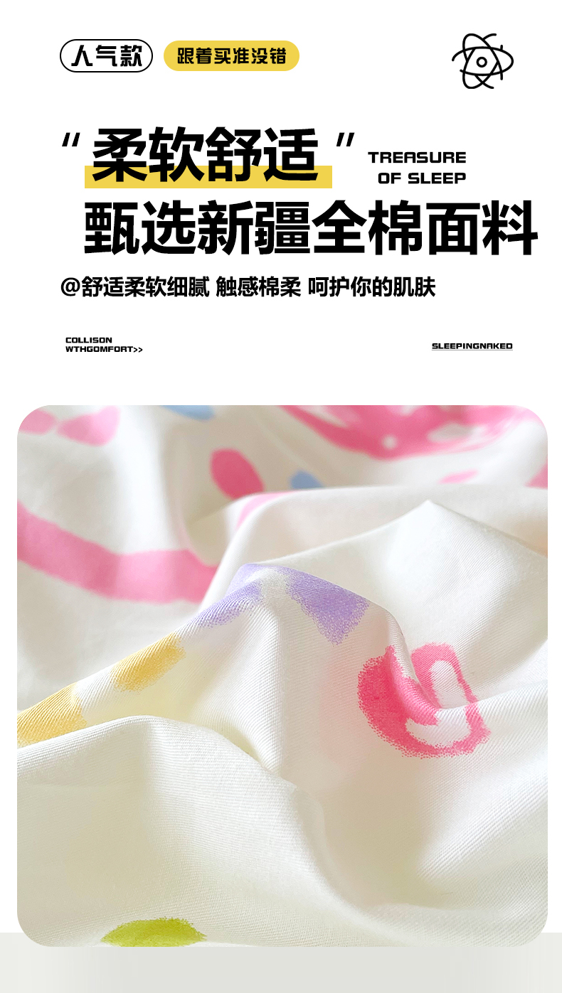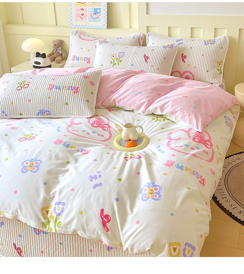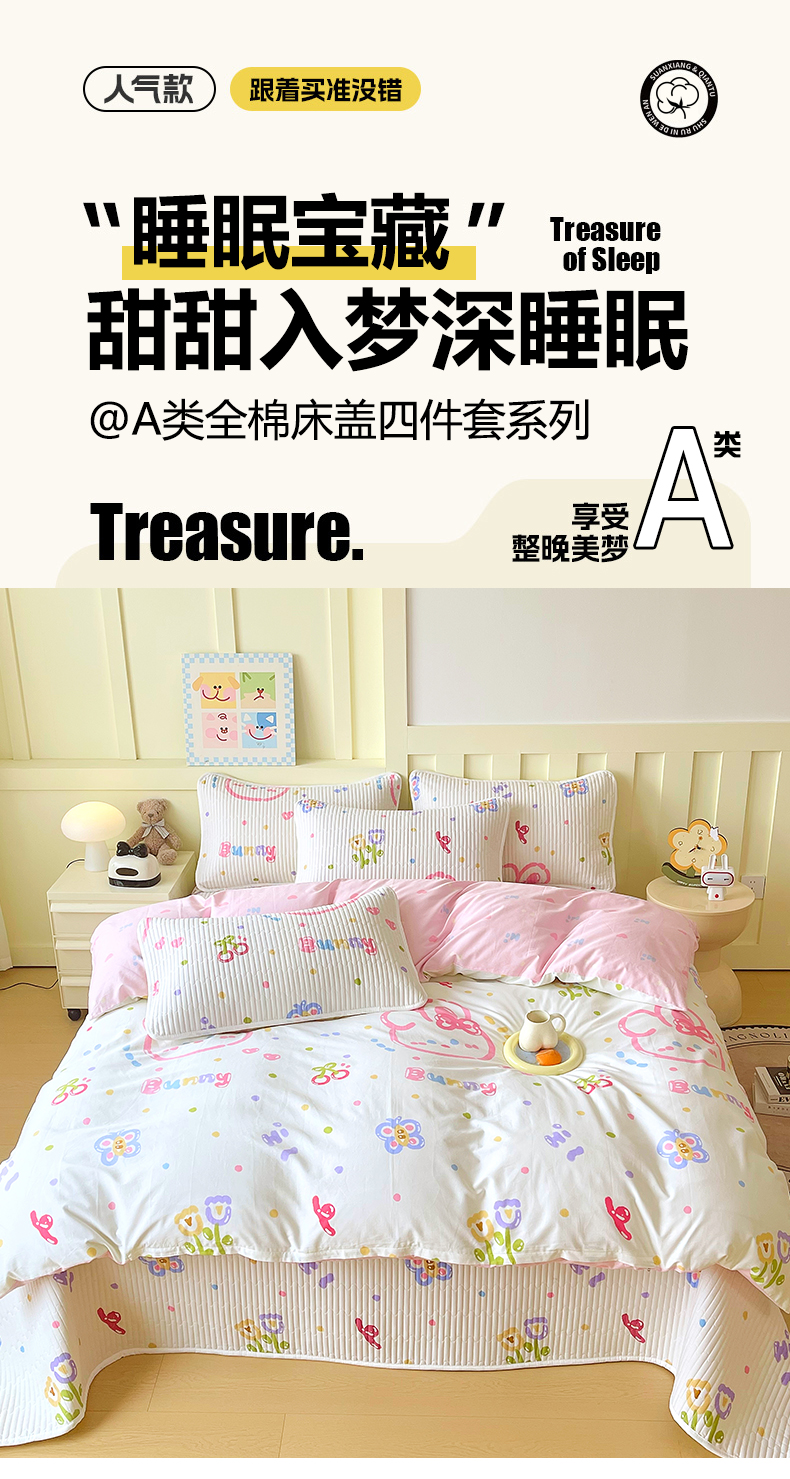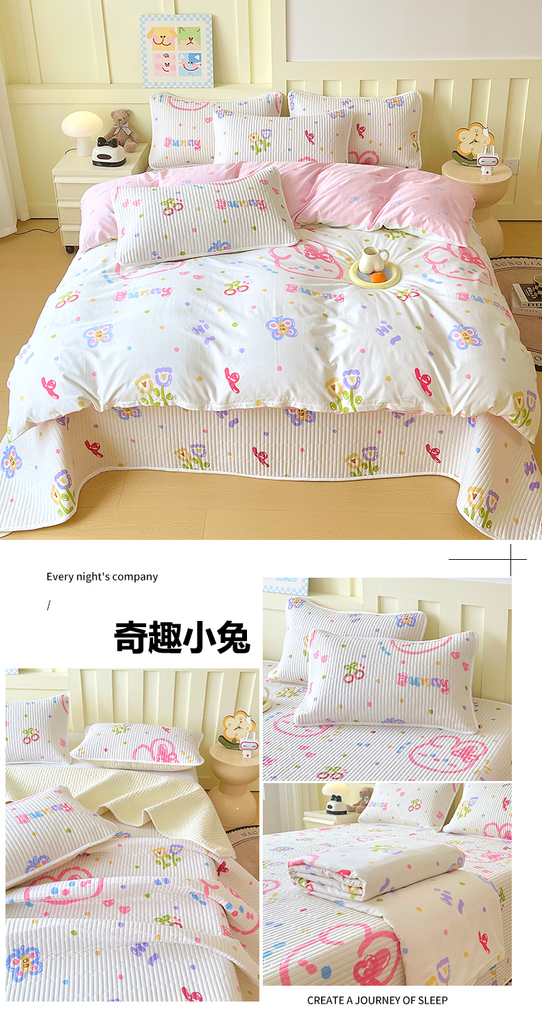 当前位置: 91家纺网 > 商品网购 > 床品套件 > 四件套 > 全棉普通四件套 > 2025新款A类全棉印花床盖四件套 奇趣小兔