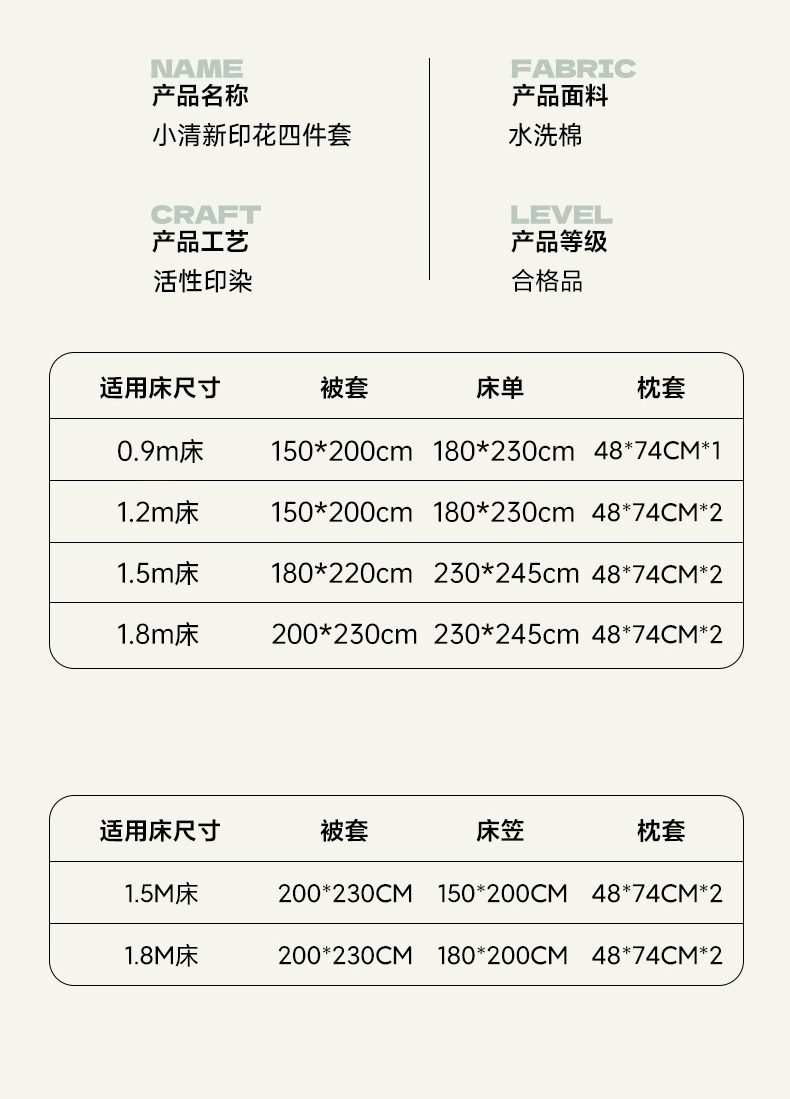 1.5m床笠四件套(被套200x230cm) | ¥49.00 |