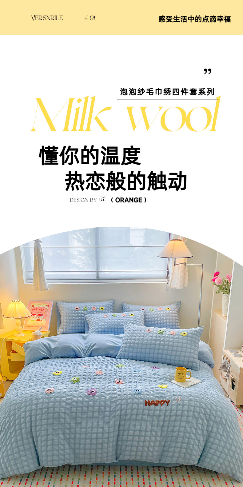 千希家纺 2025新款高克重超柔泡泡纱毛巾绣泡芙精灵系列四件套 泡芙精灵-天空蓝