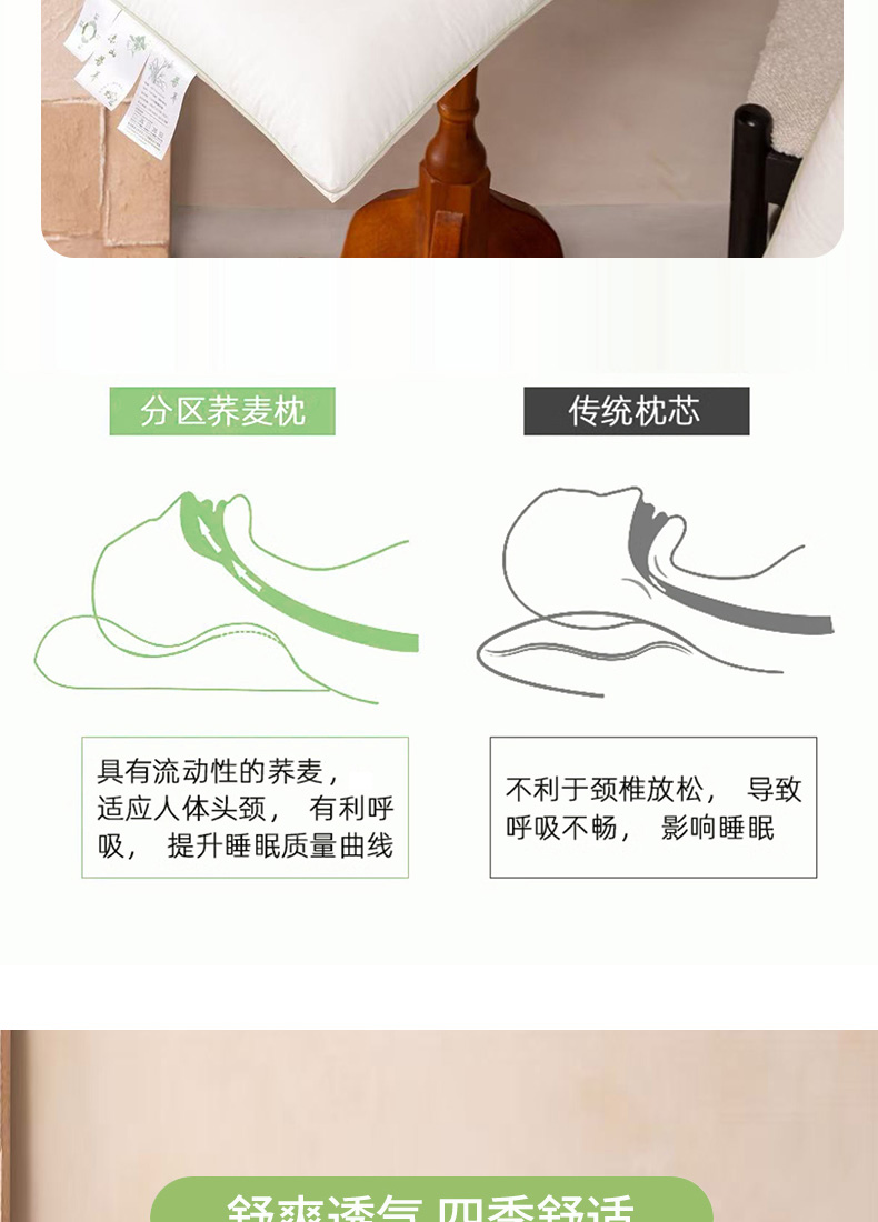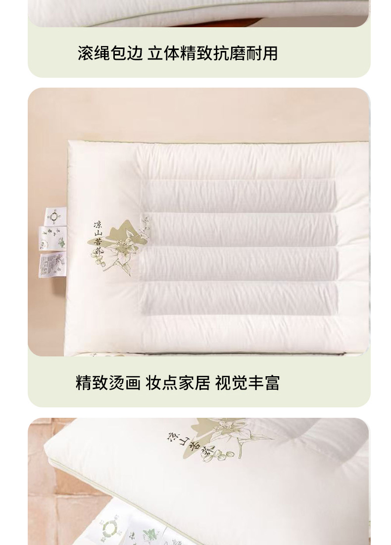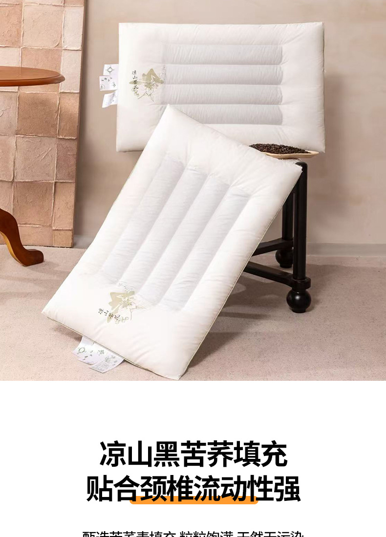 当前位置: 91家纺网 > 商品网购 > 枕头/枕芯/保健枕/颈椎枕 > 普通枕芯 > 爱尚家枕芯 2025新款纯棉凉山苦荞护颈枕枕头枕芯 凉山苦荞护颈枕 48x74cm/只