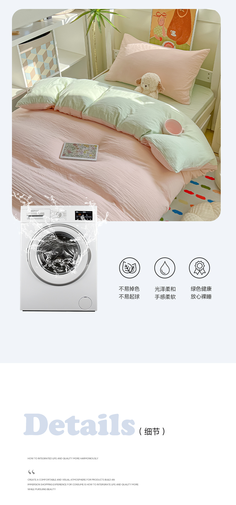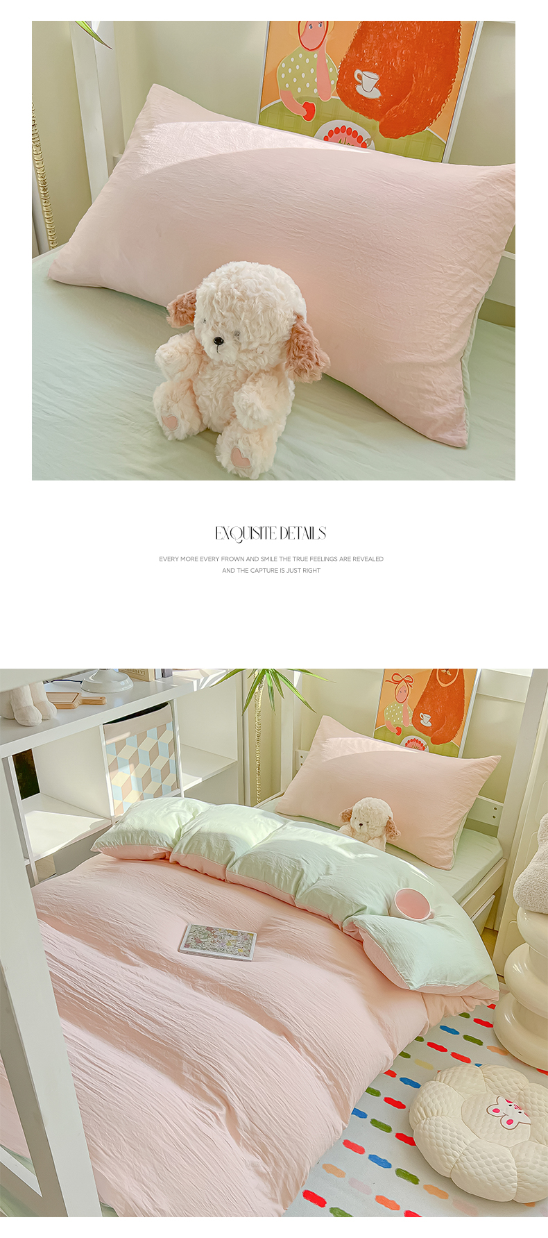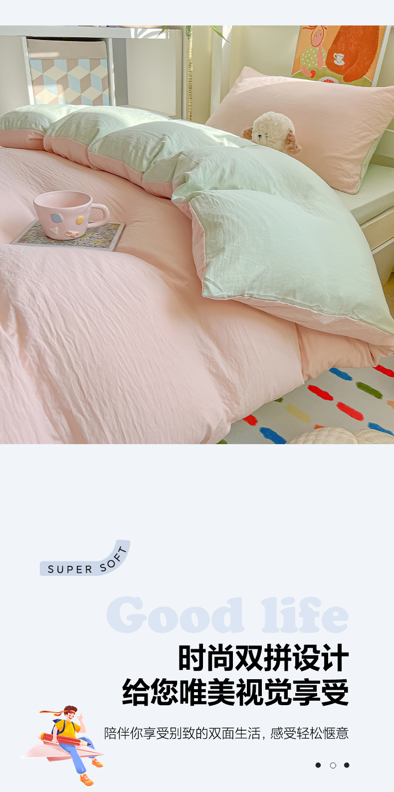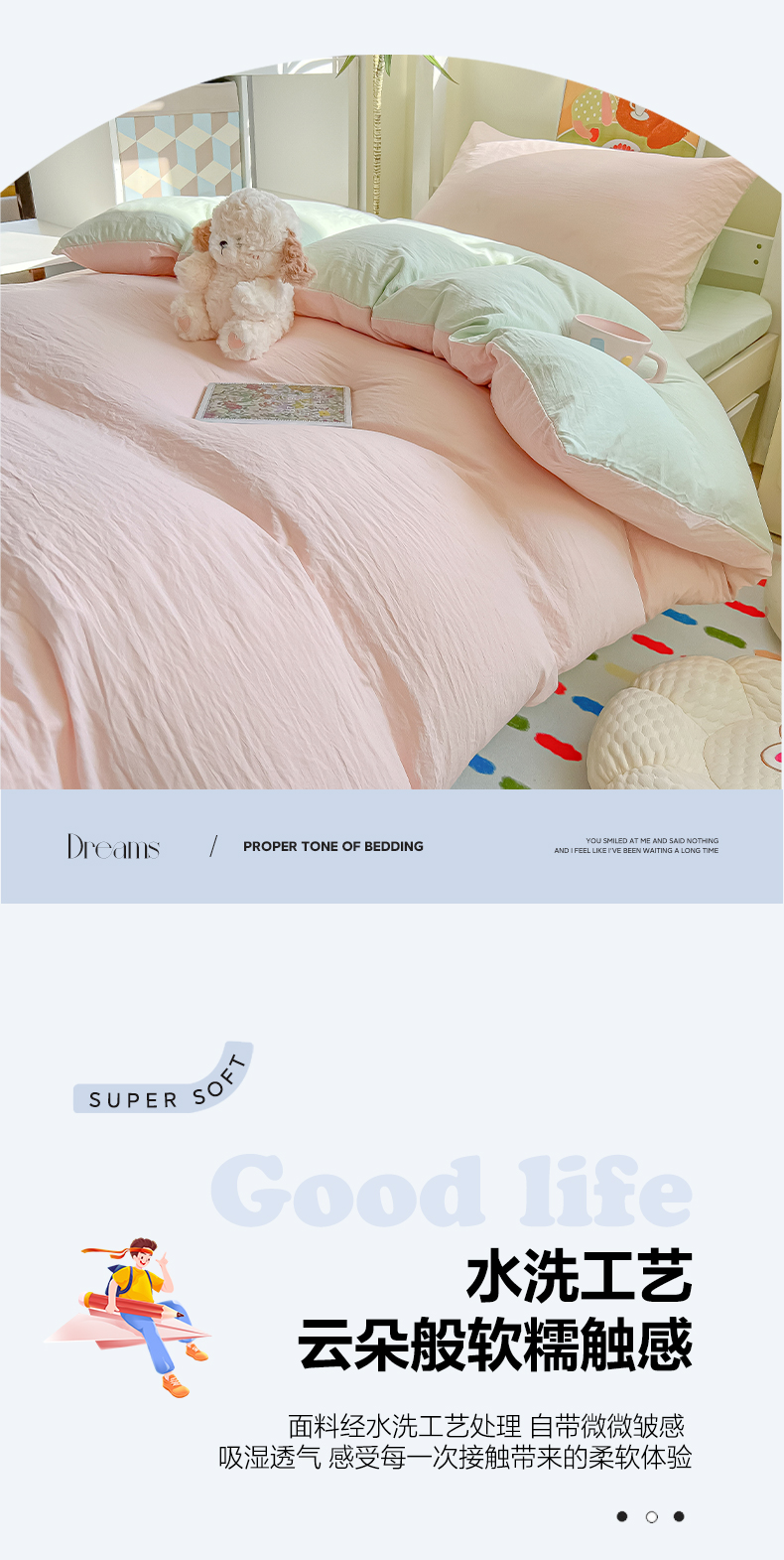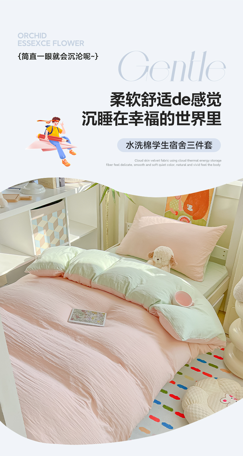 当前位置: 91家纺网 > 商品网购 > 床品套件 > 三件套 > 韩巢家纺 2025新款纯色水洗棉寝室上下铺三件套学生宿舍床上三件套 水洗棉浅粉绿