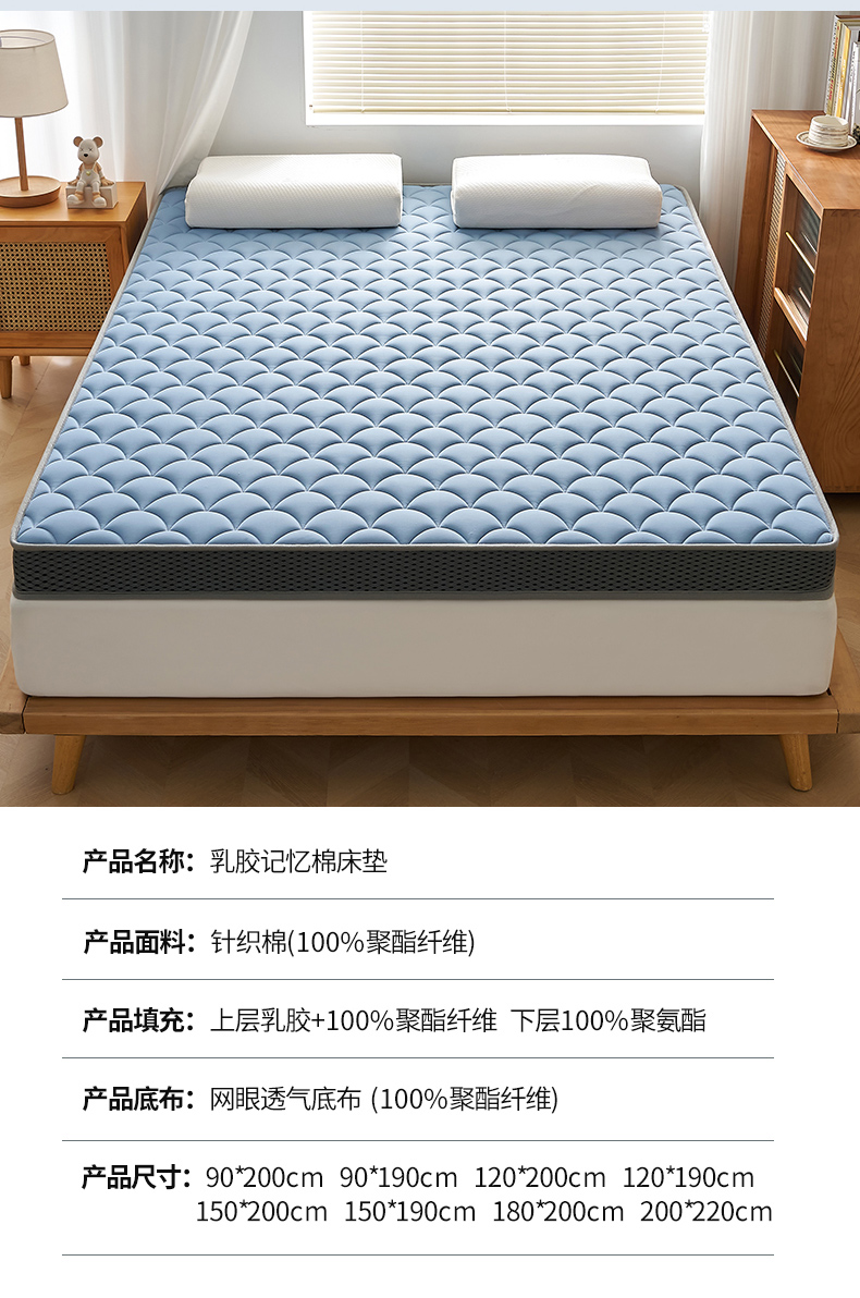 当前位置: 91家纺网 > 商品网购 > 床垫/床褥 > 普通床垫 > 锦丝钰床垫 2025春夏新款乳胶记忆棉床垫-大床 立体-月光蓝