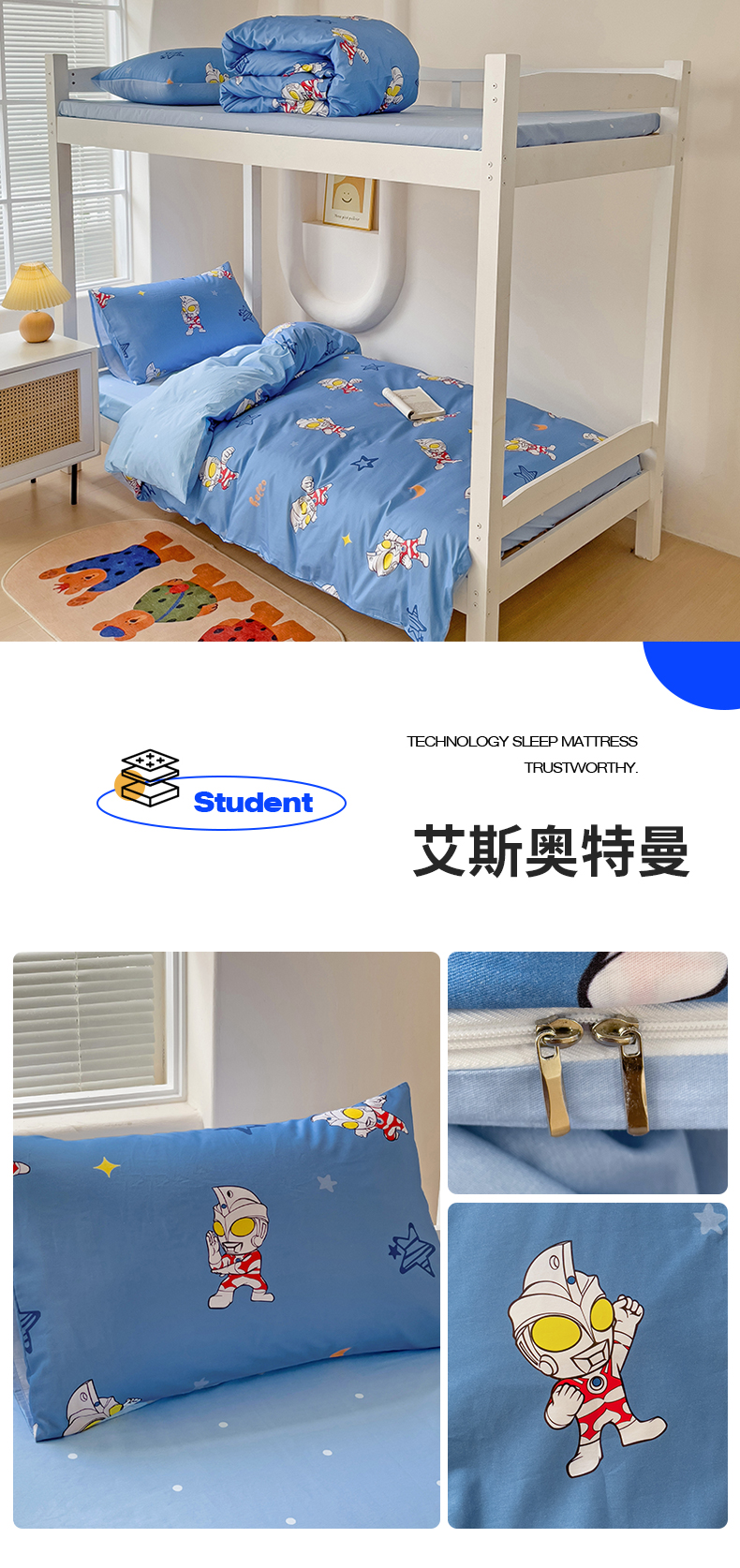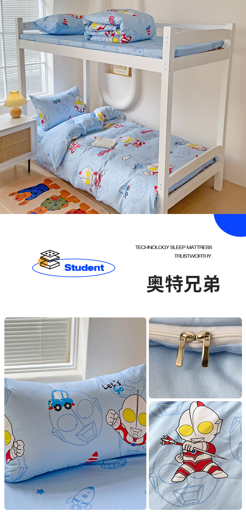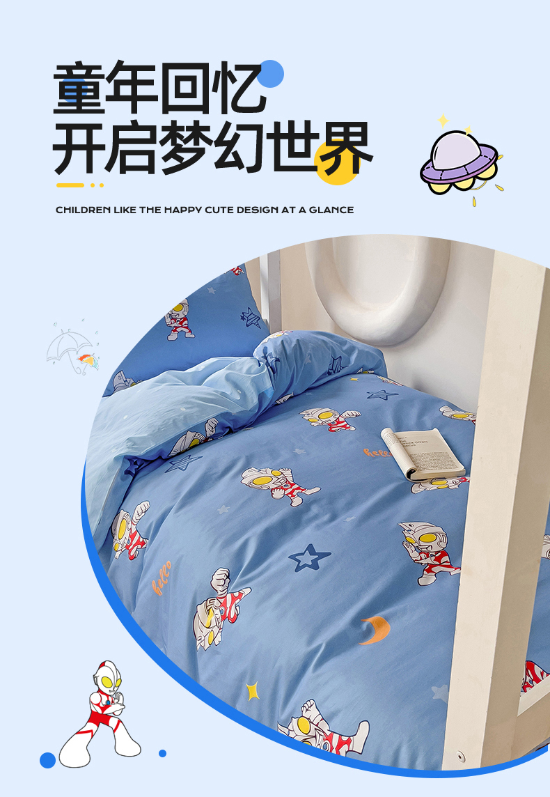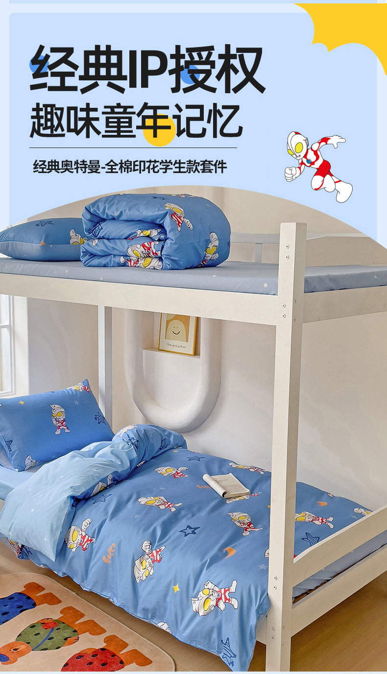 (总)名兮家居 2025-全棉纯棉13372经典奥特曼-三丽鸥学生床多件套【含防伪标】