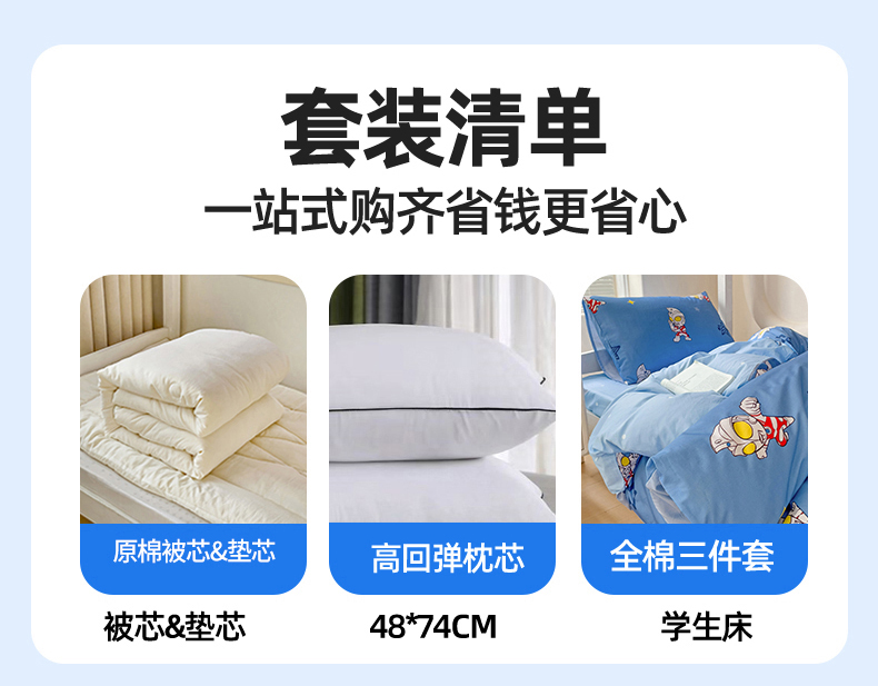0.9m床五件套【床单三件套+春秋被约3斤+枕芯】