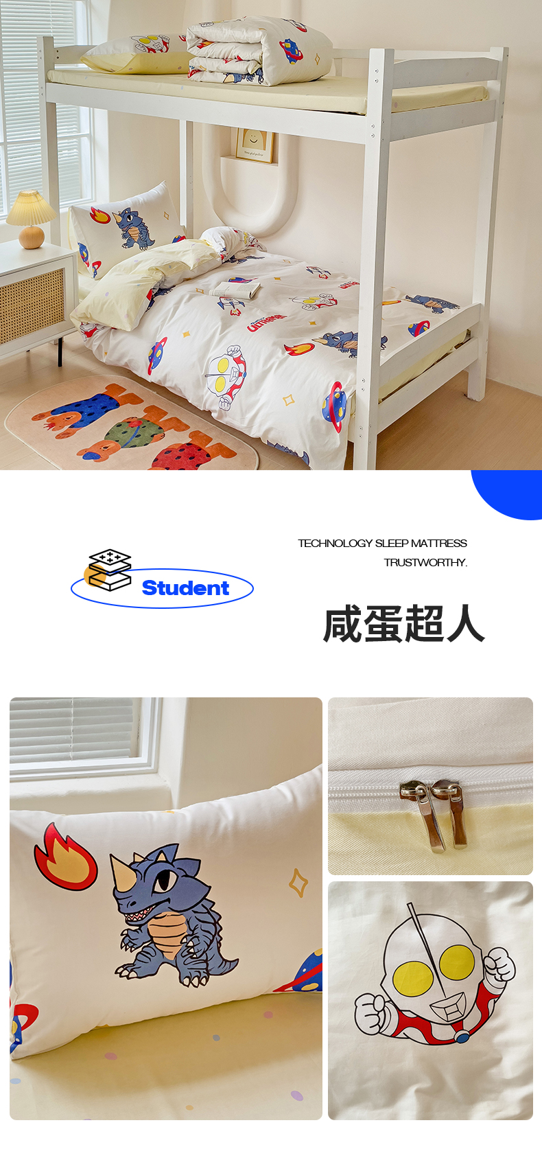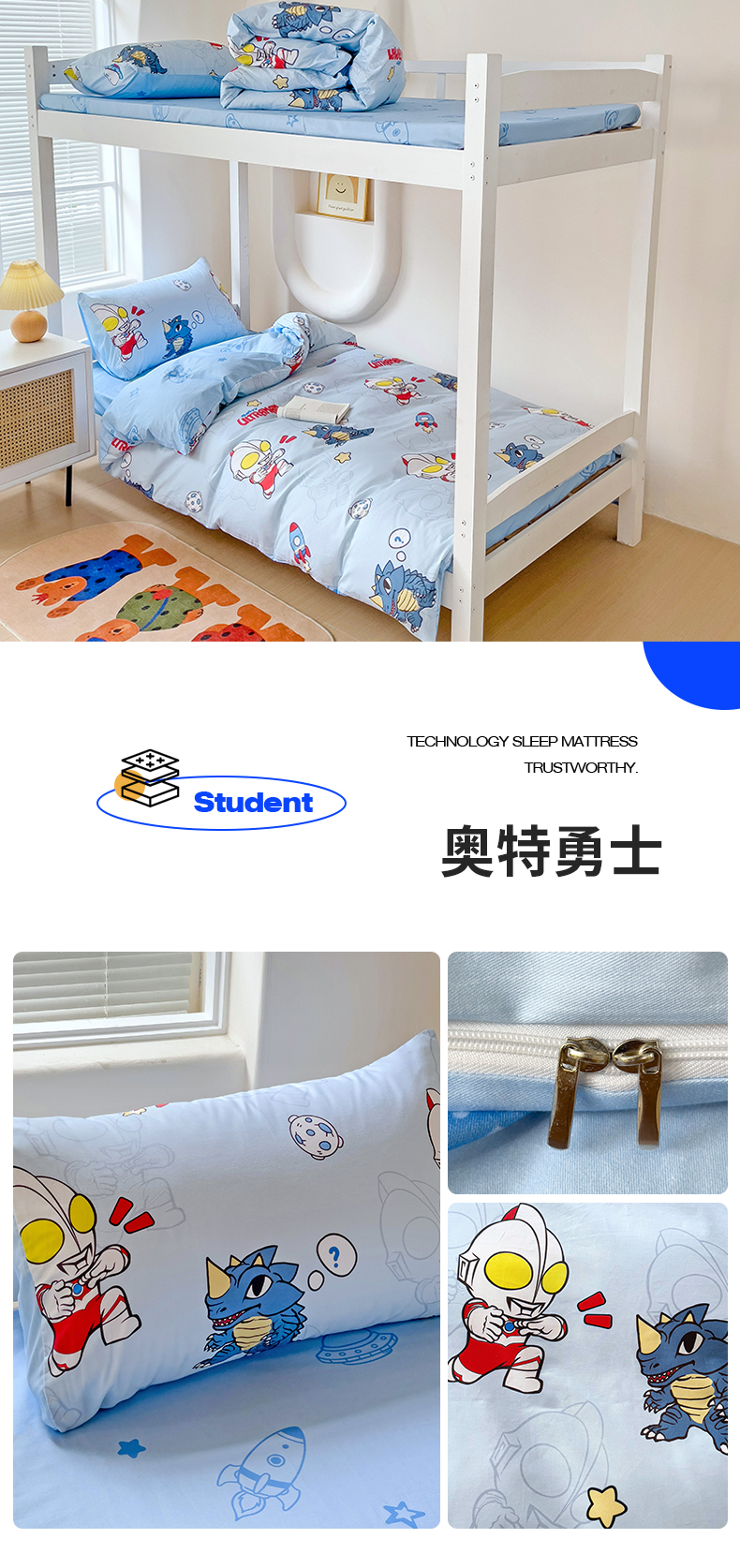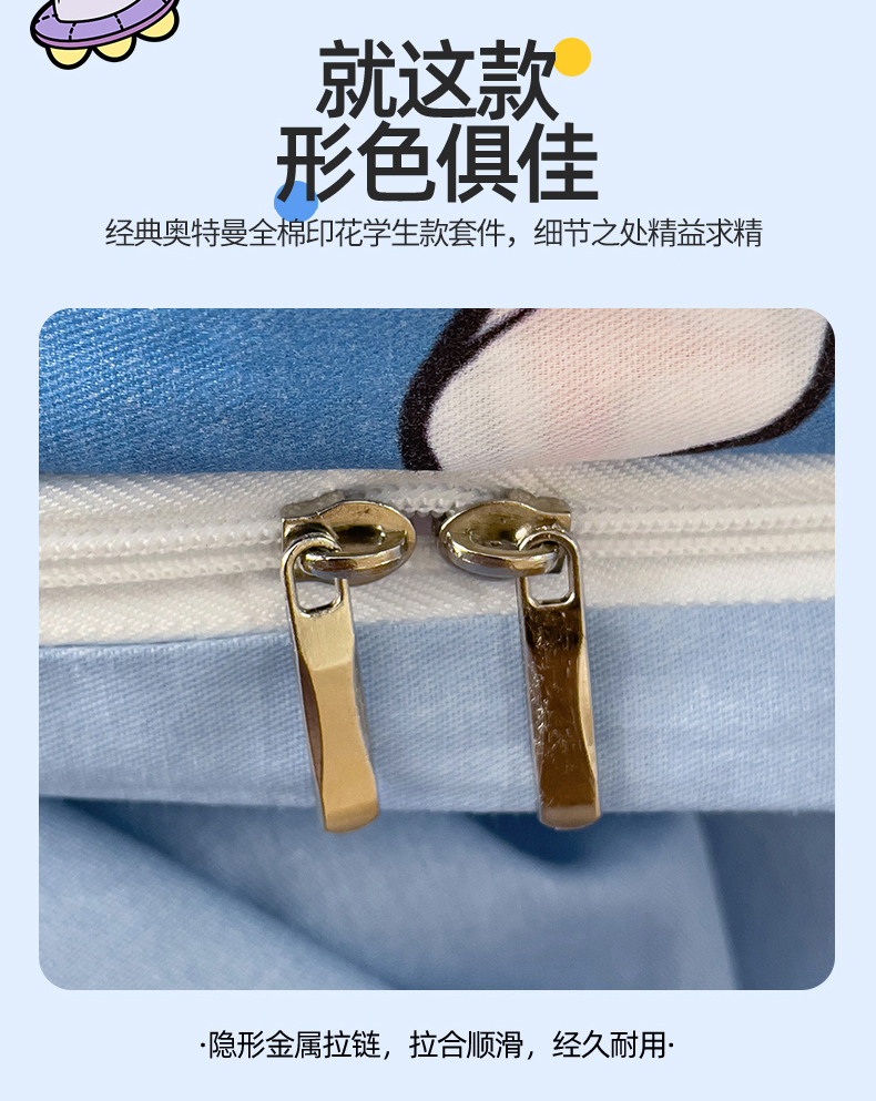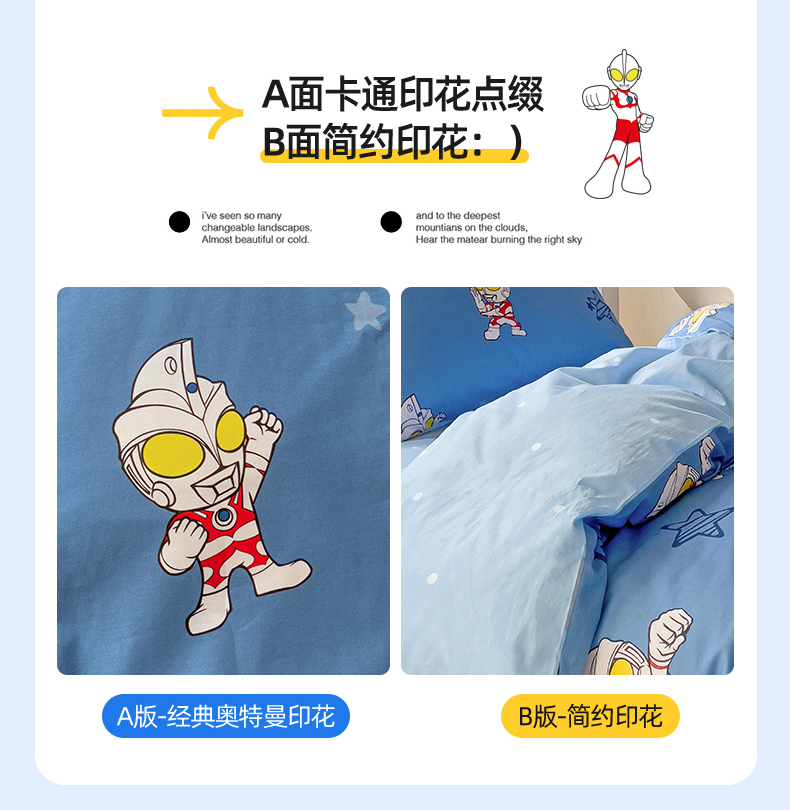 商品名称:(总)名兮家居 2025-全棉纯棉13372经典奥特曼-三丽鸥学生床多件套【含防伪标】