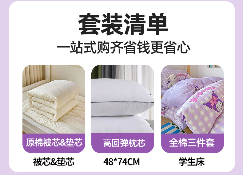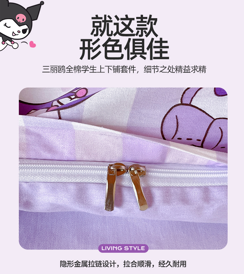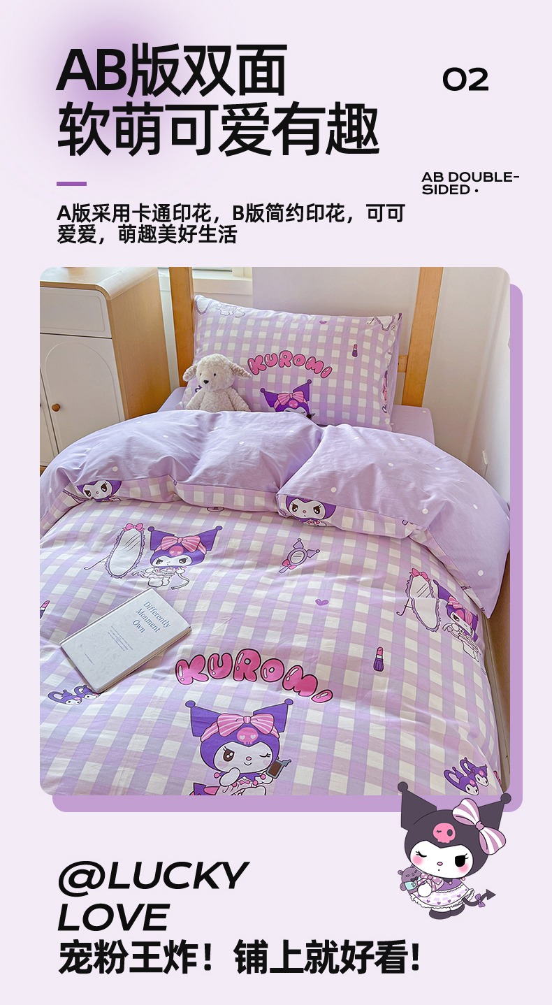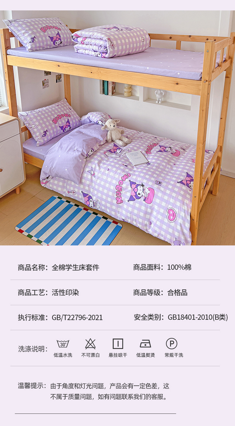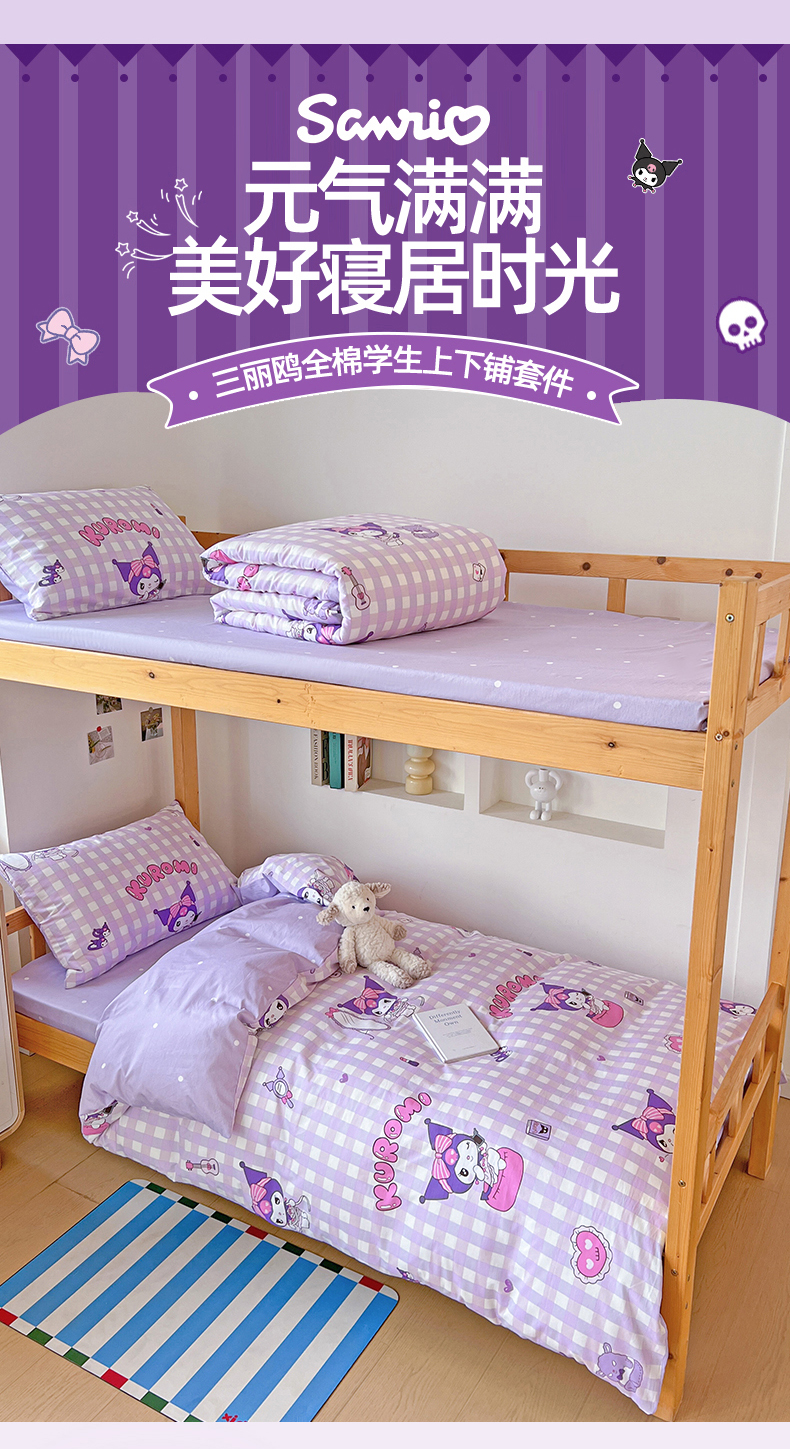 当前位置: 91家纺网 > 商品网购 > 床品套件 > 多件套 > 多件套 > 名兮家居 2025-全棉纯棉13372经典奥特曼-三丽鸥学生床多件套【含防伪标】 格子库洛米