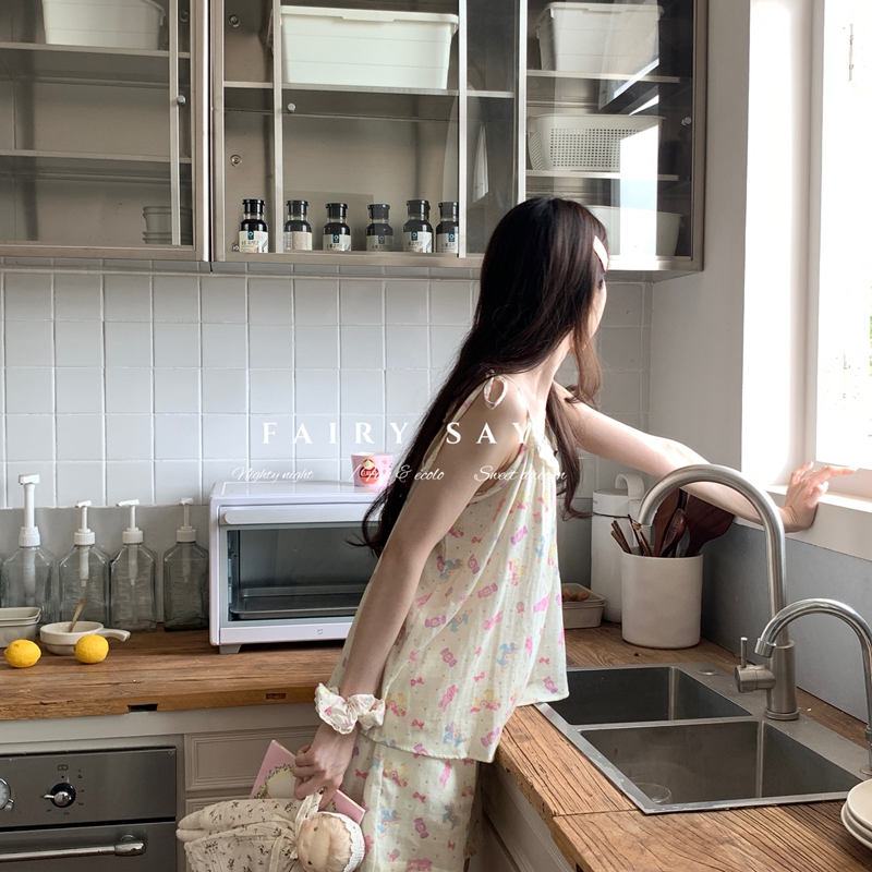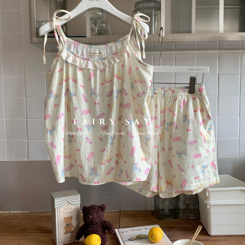 当前位置: 91家纺网 > 商品网购 > 居家日用 > 睡衣/家居服套装 > 妍景家居生活馆 2025新款纱布吊带套装 粉色小马