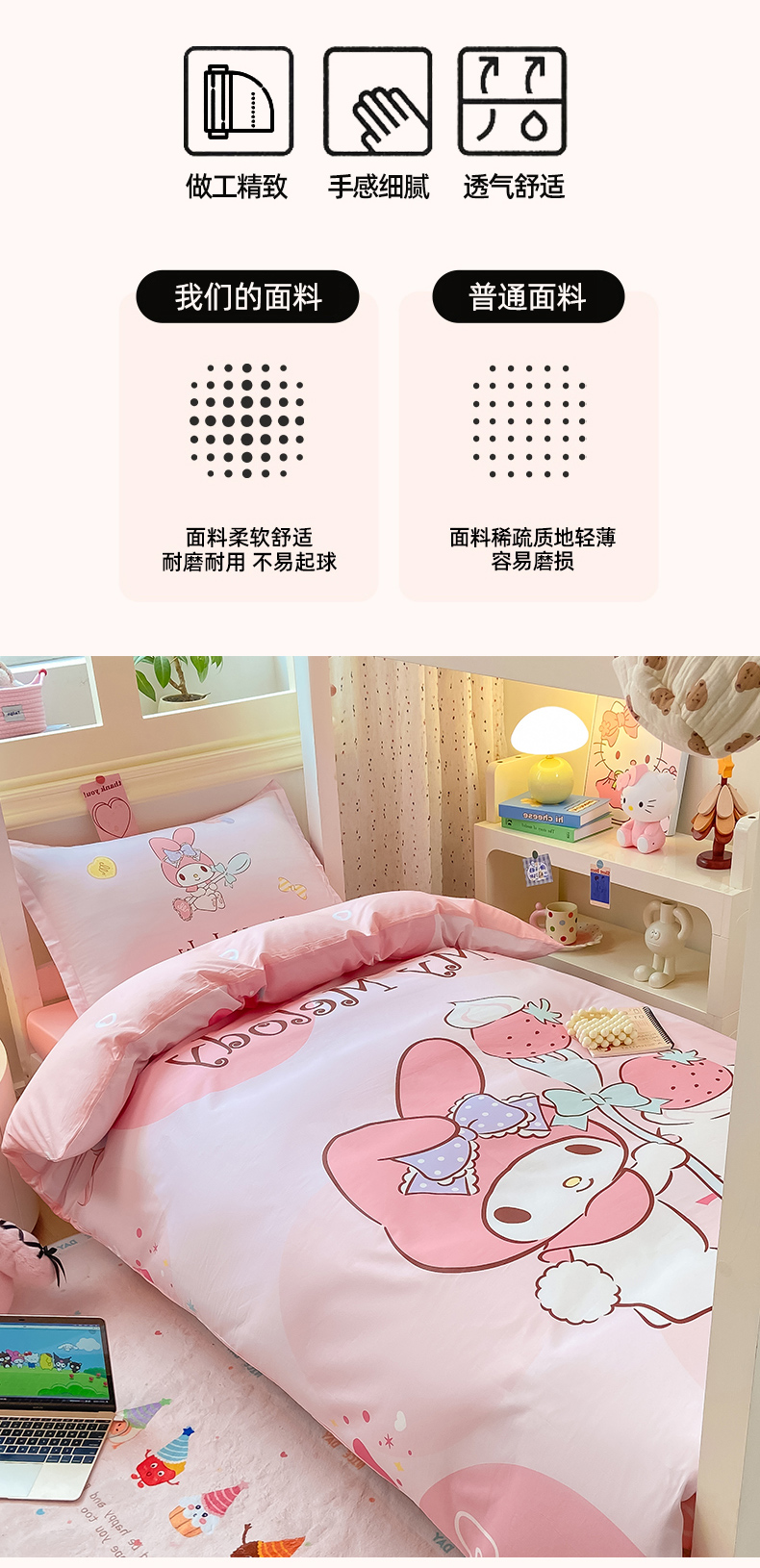 当前位置: 91家纺网 > 商品网购 > 床品套件 > 三件套 > 博雅 2025春夏新款三丽鸥全棉纯棉卡通学生宿舍三件套上下铺三件套-大版【含防伪标】 魔法美乐蒂