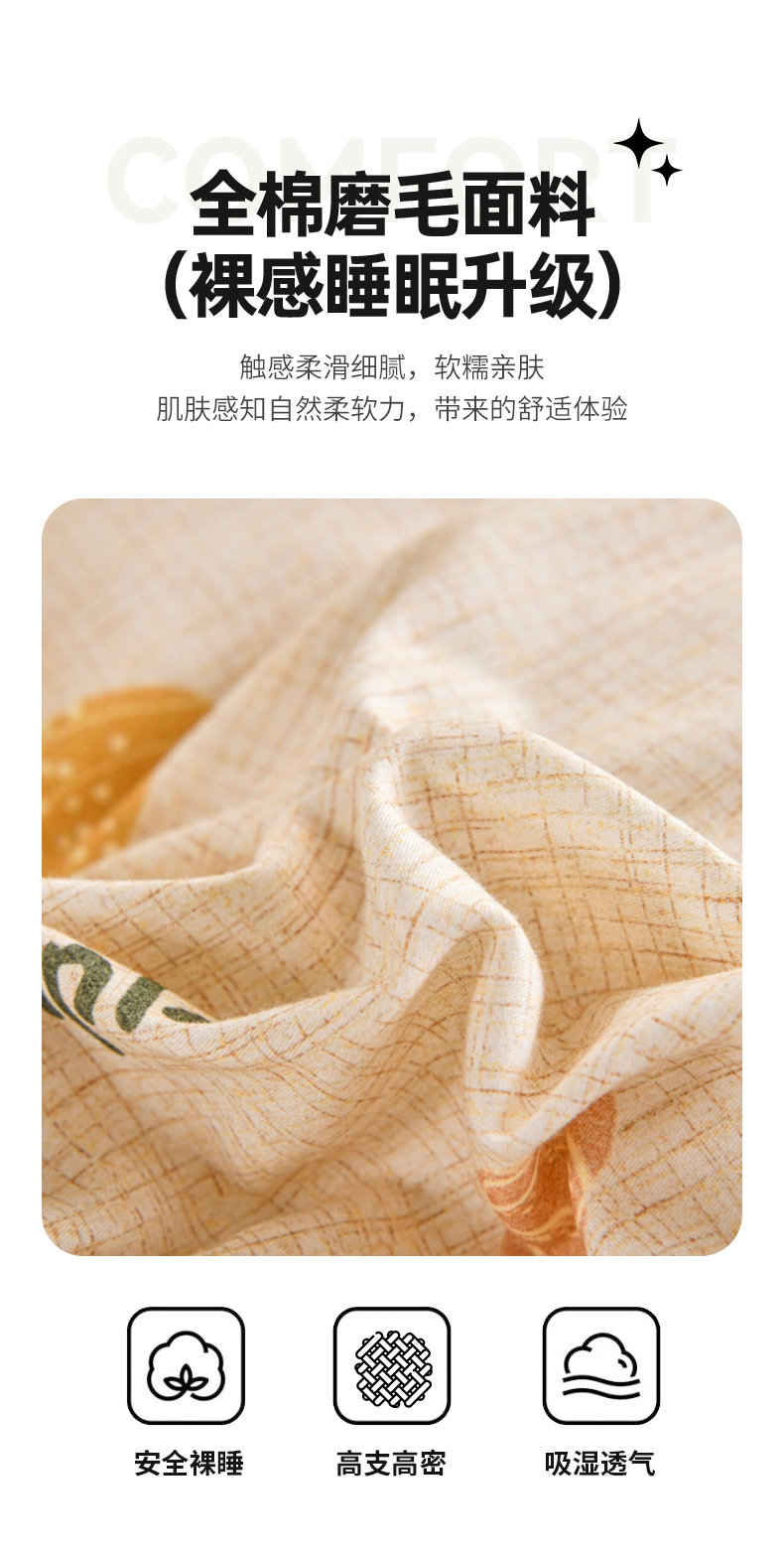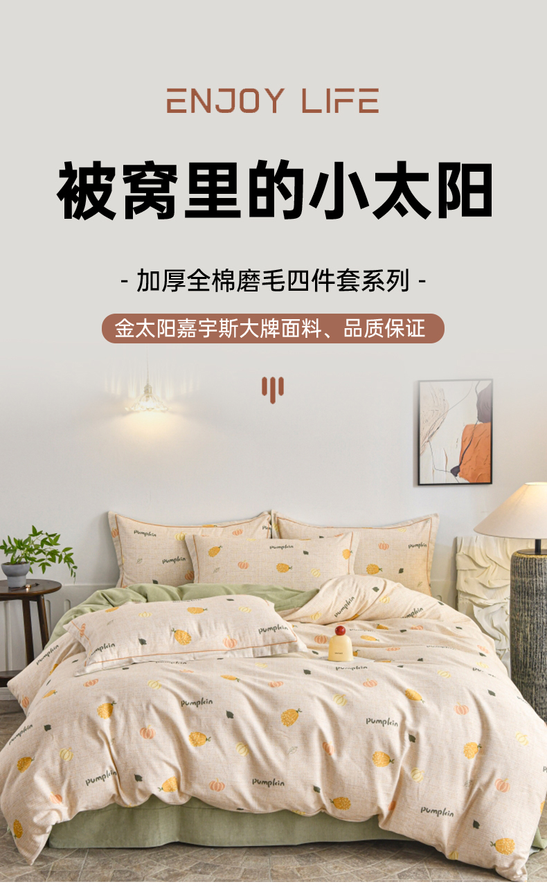 商品名称:磨毛世家家纺2025新款金太阳铂金四件套加厚四件套 囡囡瓜念-米