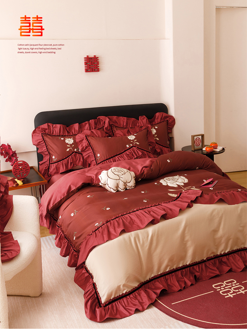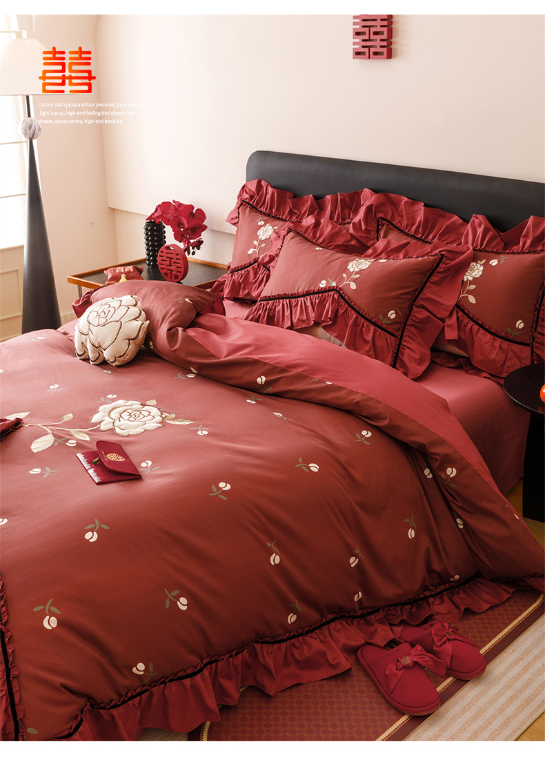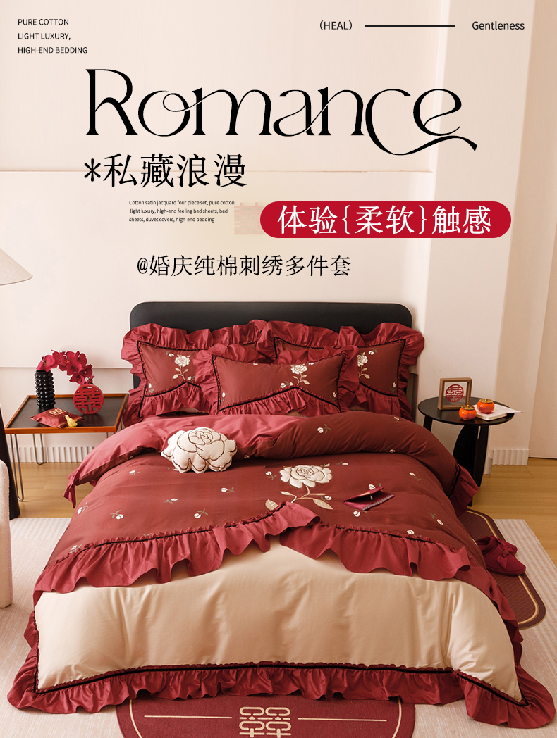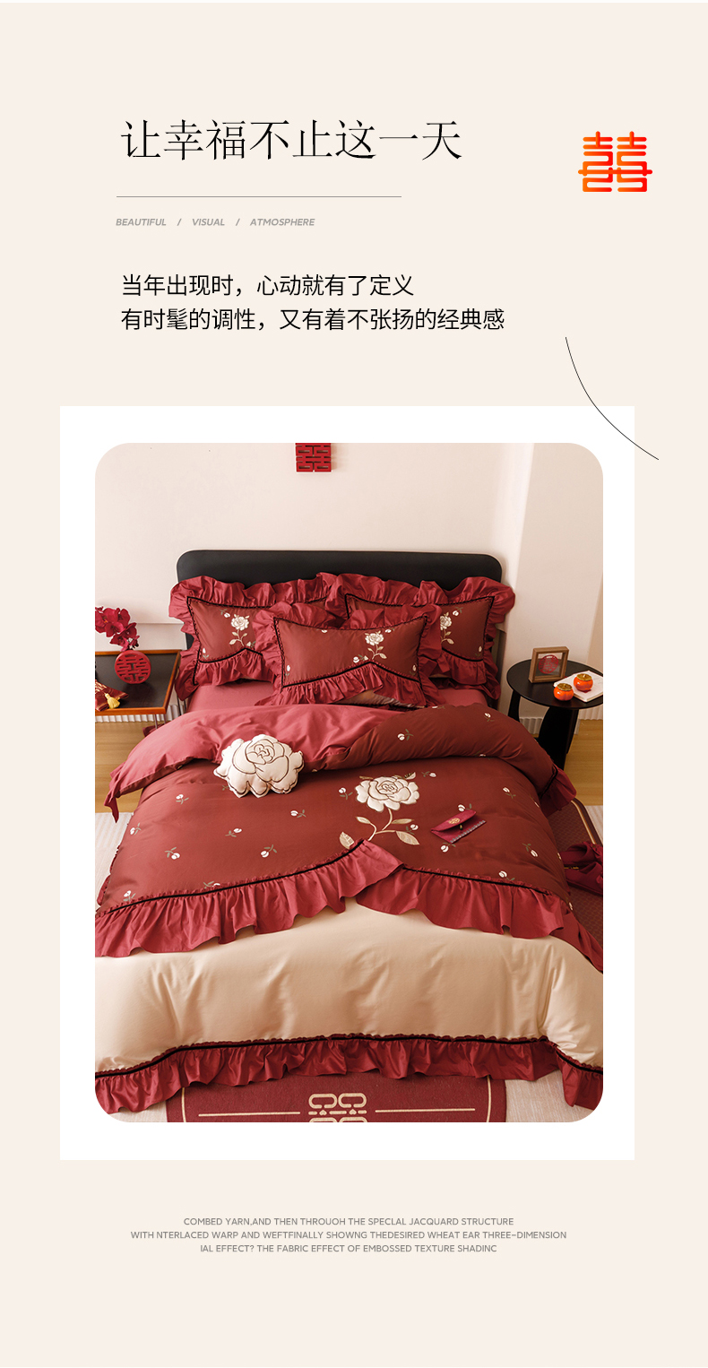 (总)宏羽纺家纺2025新款13372全棉全工艺喷气四件套-最美嫁衣,最美嫁衣