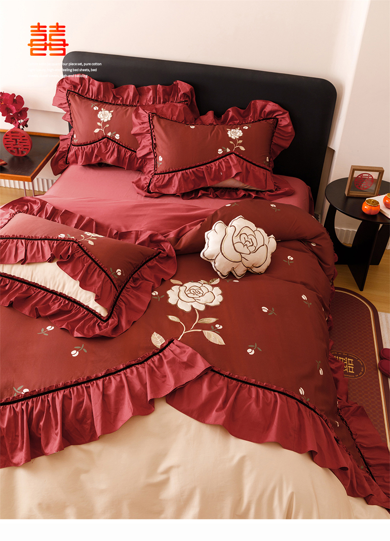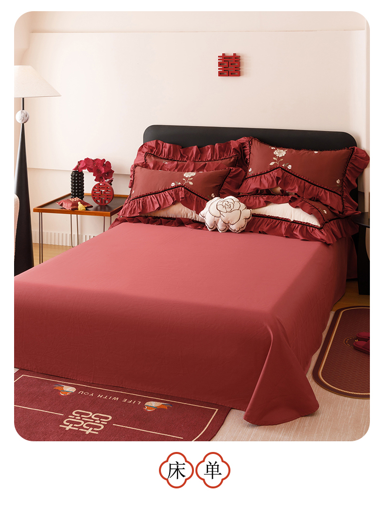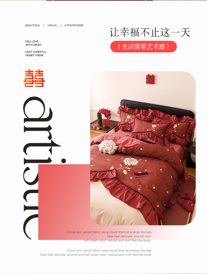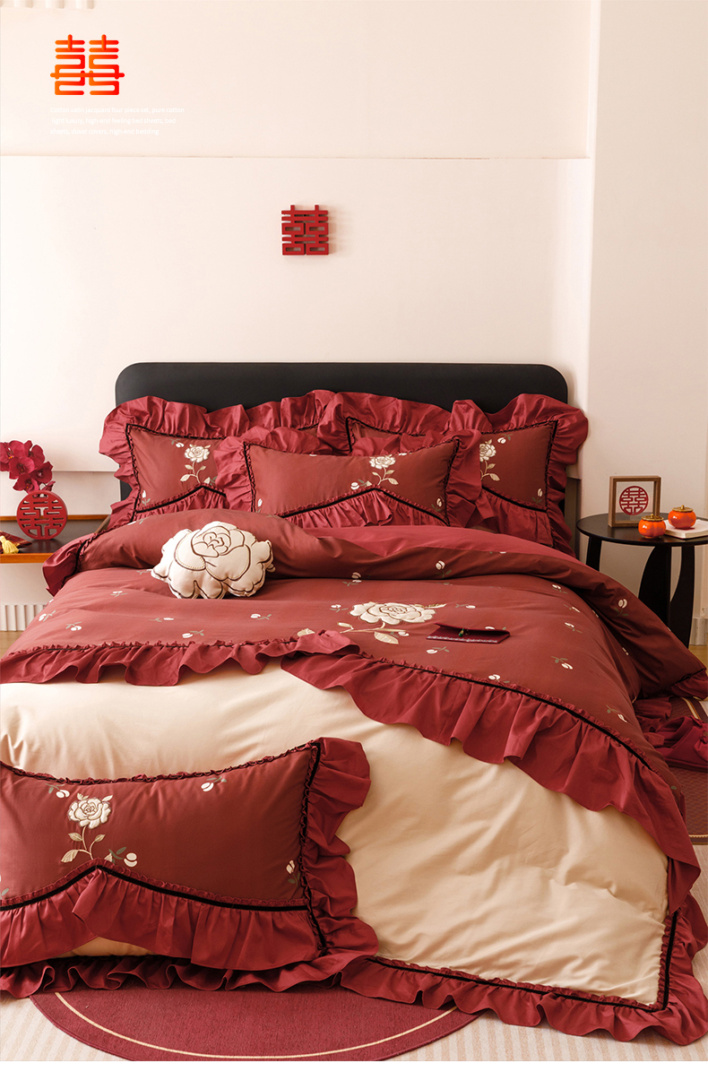 (总)宏羽纺家纺2025新款13372全棉全工艺喷气四件套-最美嫁衣,最美嫁衣
