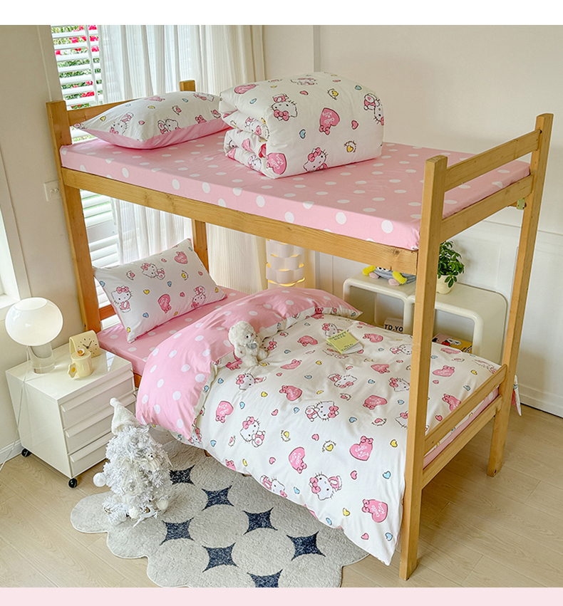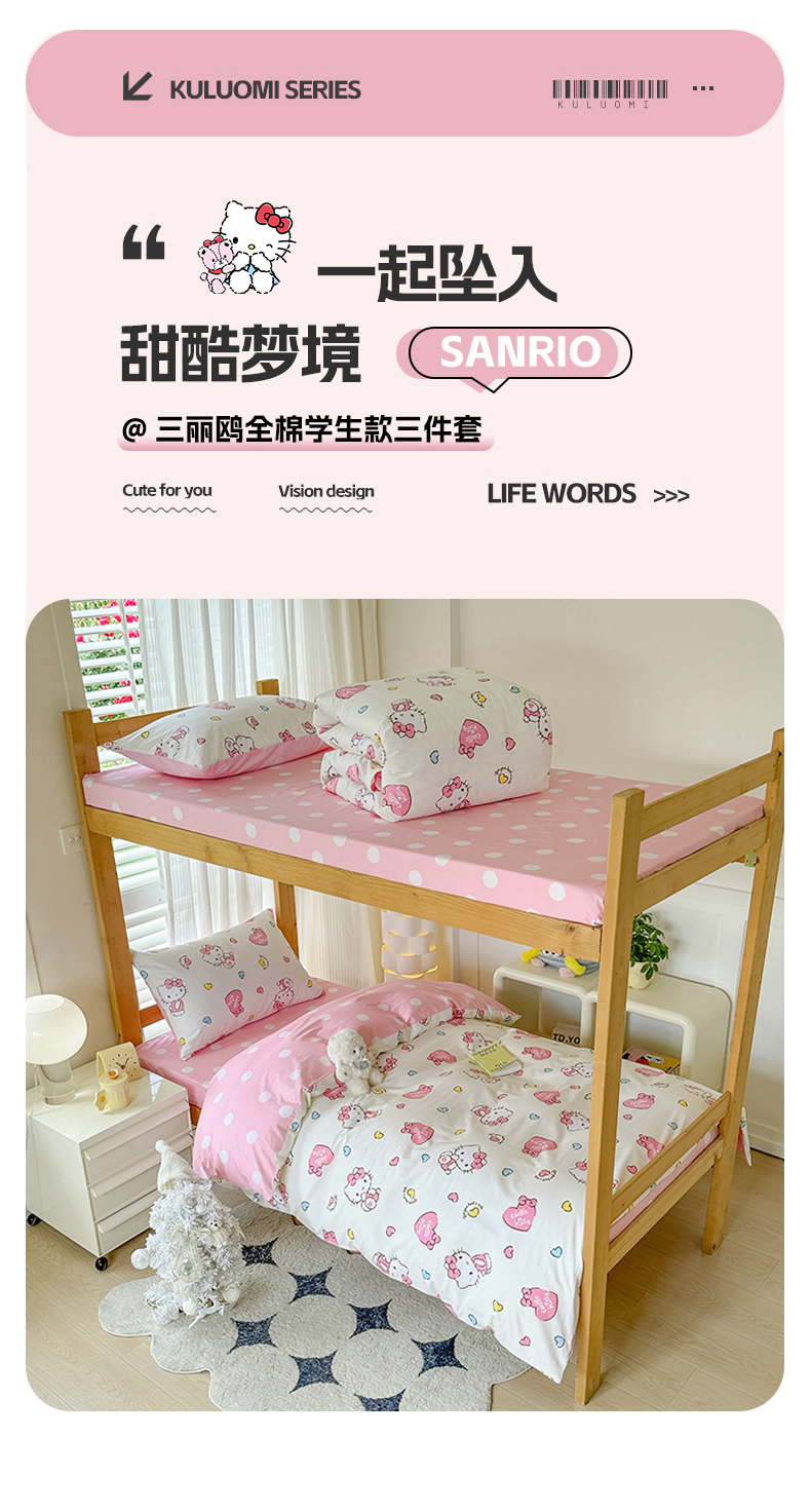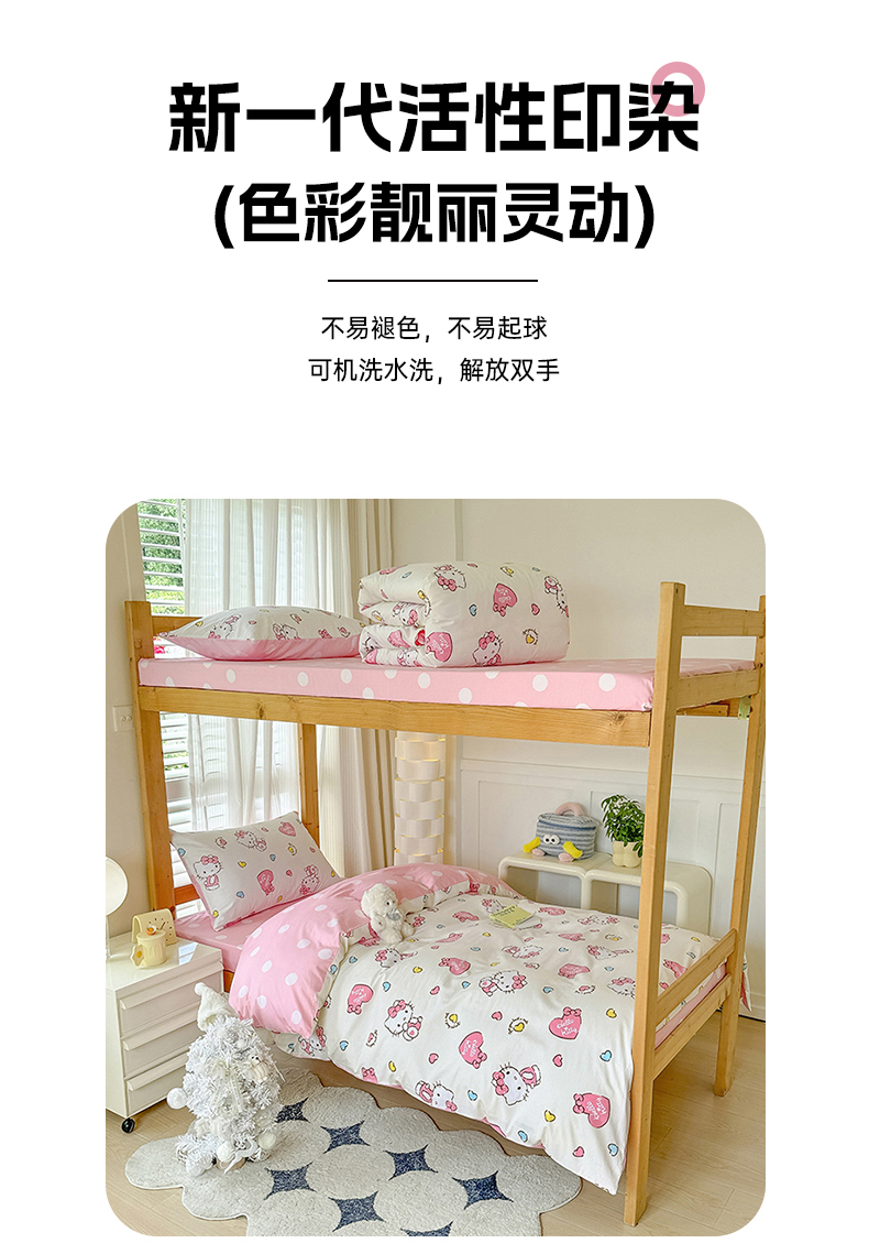 商品名称:玉元坊 2025新款三丽鸥全棉纯棉学生款学生宿舍上下铺三件套 公主kt