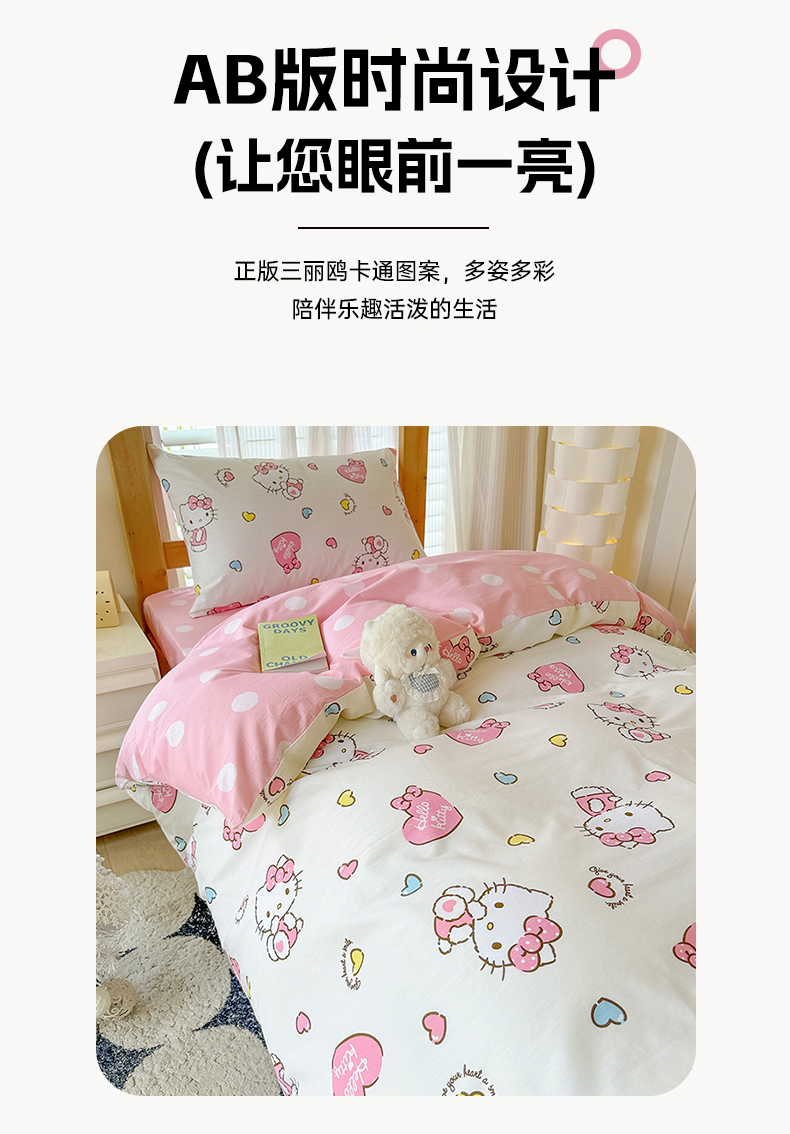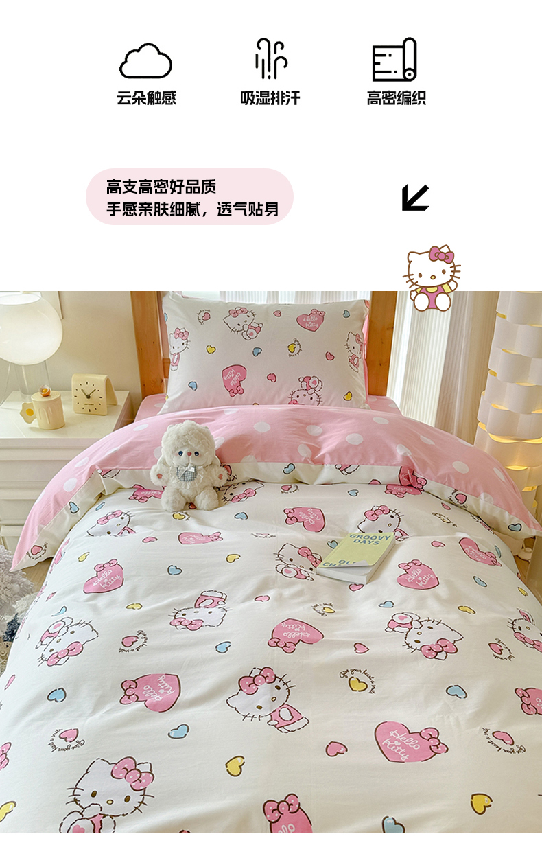 (总)玉元坊 2026新款正版授权三丽鸥系列全棉纯棉床单四件套学生三件套-凯蒂猫系列,雏菊kt【简约款】,告白KT猫【简约款】,公主kt【简约款】,乖巧KT【简约款】,凯蒂小熊【简约款】,美美凯蒂【简约款】,甜心kt【简约款】,babyKT【简约款】,KT和熊粉【简约款】
