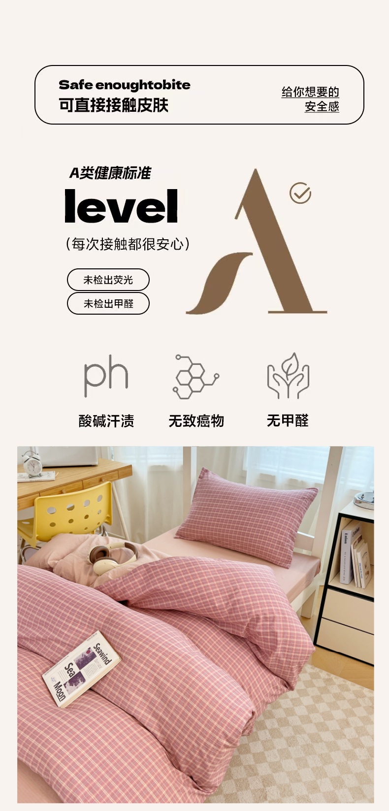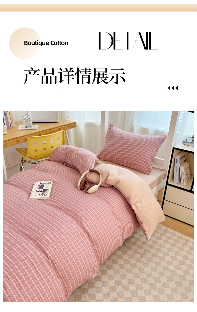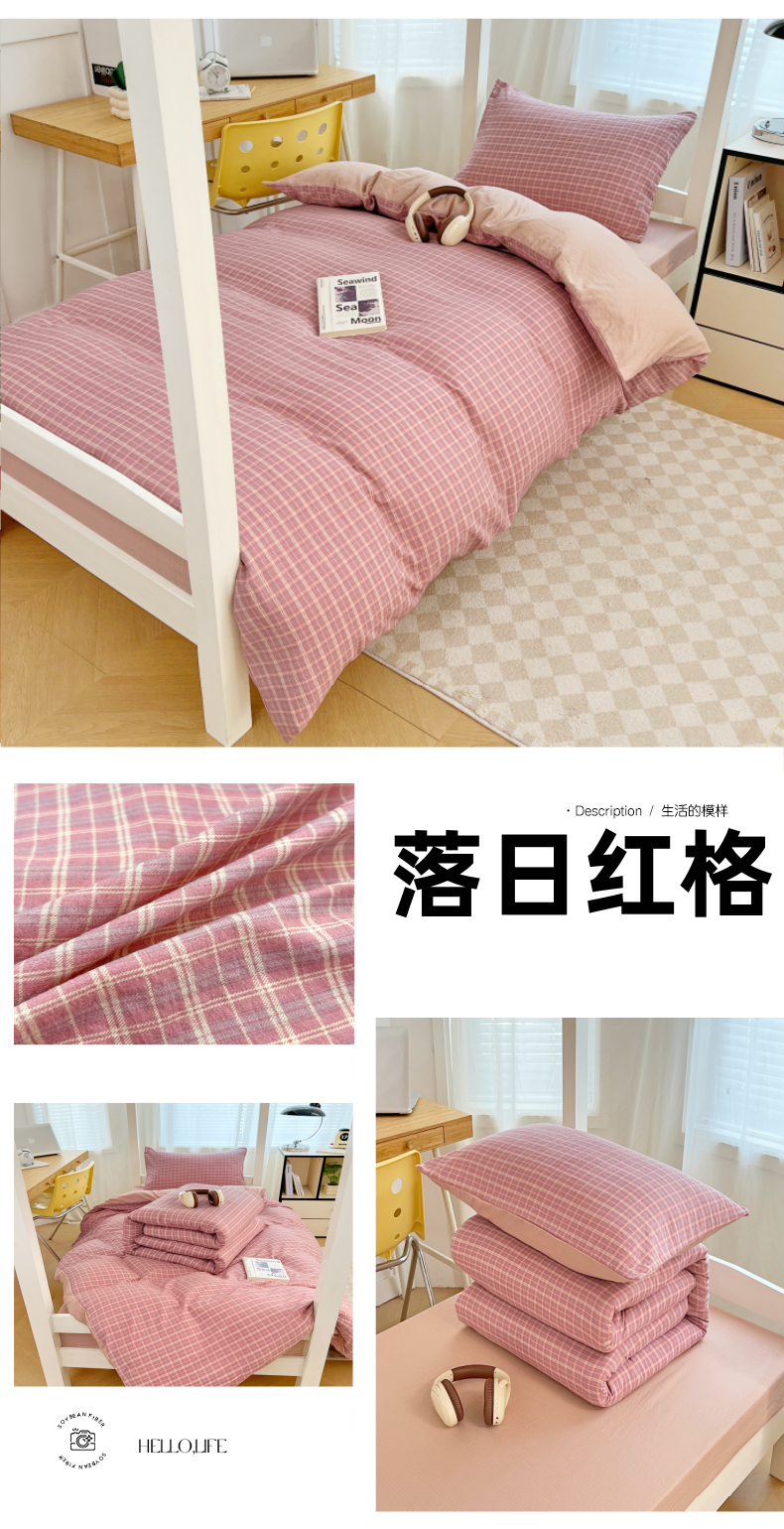 商品名称:梦舒羽 2025新款双层纱格子学生宿舍上下铺套件 常规款-落日红格