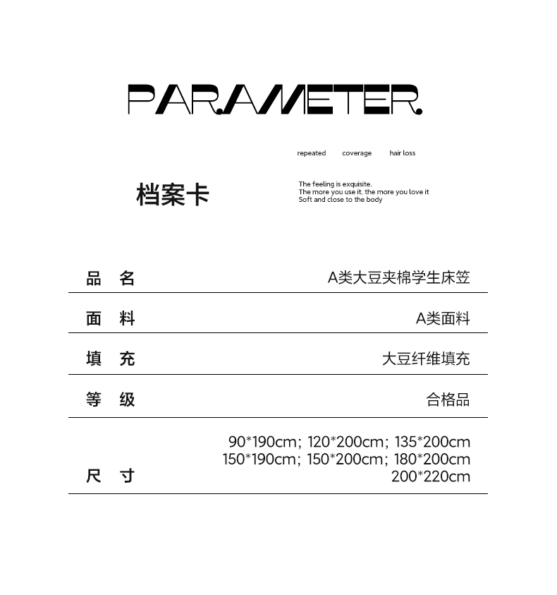 [{"sp_id":11,"sp_name":"\u989c\u8272\u5206\u7c7b","sp_format":2,"sp_list":[{"sp_value_id":70,"sp_value_name":"\u7231\u5fc3-\u96fe\u84dd","sp_value_image":{"id":999,"path":"https:\/\/img3.91jf.com\/ghelp\/2025\/20250713\/20250713094607_355919.jpeg"},"sp_value_video":{"id":0,"img":"","path":"","time":0,"download_num":0,"play_num":0},"price":"20.00","storage":4500,"weight":"0.400","is_check_weight":0,"plus_price":"","sp_sort":8}]},{"sp_id":24,"sp_name":"\u5e8a\u5355\/\u5e8a\u7b20\u5c3a\u5bf8","sp_format":1,"sp_list":[{"sp_value_id":213,"sp_value_name":"48x74cm\u6795\u5957\u4e00\u5bf9","sp_value_image":{"id":0,"path":""},"sp_value_video":{"id":0,"img":"","path":"","time":0,"download_num":0,"play_num":0},"price":"20.00","storage":500,"weight":"0.400","is_check_weight":0,"plus_price":"","sp_sort":5},{"sp_value_id":214,"sp_value_name":"90X190cm\u5355\u5e8a\u7b20","sp_value_image":{"id":0,"path":""},"sp_value_video":{"id":0,"img":"","path":"","time":0,"download_num":0,"play_num":0},"price":"30.00","storage":500,"weight":"0.800","is_check_weight":0,"plus_price":"","sp_sort":6},{"sp_value_id":215,"sp_value_name":"120X200cm\u5355\u5e8a\u7b20","sp_value_image":{"id":0,"path":""},"sp_value_video":{"id":0,"img":"","path":"","time":0,"download_num":0,"play_num":0},"price":"35.00","storage":500,"weight":"0.900","is_check_weight":0,"plus_price":"","sp_sort":7},{"sp_value_id":216,"sp_value_name":"135X200cm\u5355\u5e8a\u7b20","sp_value_image":{"id":0,"path":""},"sp_value_video":{"id":0,"img":"","path":"","time":0,"download_num":0,"play_num":0},"price":"40.00","storage":500,"weight":"1.000","is_check_weight":0,"plus_price":"","sp_sort":8},{"sp_value_id":217,"sp_value_name":"150x190cm\u5355\u5e8a\u7b20","sp_value_image":{"id":0,"path":""},"sp_value_video":{"id":0,"img":"","path":"","time":0,"download_num":0,"play_num":0},"price":"40.00","storage":500,"weight":"1.100","is_check_weight":0,"plus_price":"","sp_sort":9},{"sp_value_id":218,"sp_value_name":"150x200cm\u5355\u5e8a\u7b20","sp_value_image":{"id":0,"path":""},"sp_value_video":{"id":0,"img":"","path":"","time":0,"download_num":0,"play_num":0},"price":"40.00","storage":500,"weight":"1.200","is_check_weight":0,"plus_price":"","sp_sort":10},{"sp_value_id":219,"sp_value_name":"180x200cm\u5355\u5e8a\u7b20","sp_value_image":{"id":0,"path":""},"sp_value_video":{"id":0,"img":"","path":"","time":0,"download_num":0,"play_num":0},"price":"45.00","storage":500,"weight":"1.300","is_check_weight":0,"plus_price":"","sp_sort":11},{"sp_value_id":220,"sp_value_name":"180x220cm\u5355\u5e8a\u7b20","sp_value_image":{"id":0,"path":""},"sp_value_video":{"id":0,"img":"","path":"","time":0,"download_num":0,"play_num":0},"price":"55.00","storage":500,"weight":"1.400","is_check_weight":0,"plus_price":"","sp_sort":12},{"sp_value_id":221,"sp_value_name":"200x220cm\u5355\u5e8a\u7b20","sp_value_image":{"id":0,"path":""},"sp_value_video":{"id":0,"img":"","path":"","time":0,"download_num":0,"play_num":0},"price":"55.00","storage":500,"weight":"1.500","is_check_weight":0,"plus_price":"","sp_sort":13}]}]