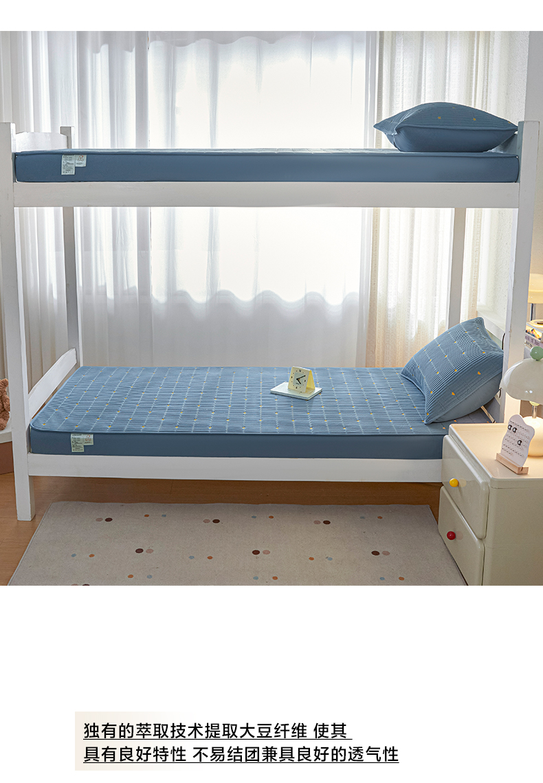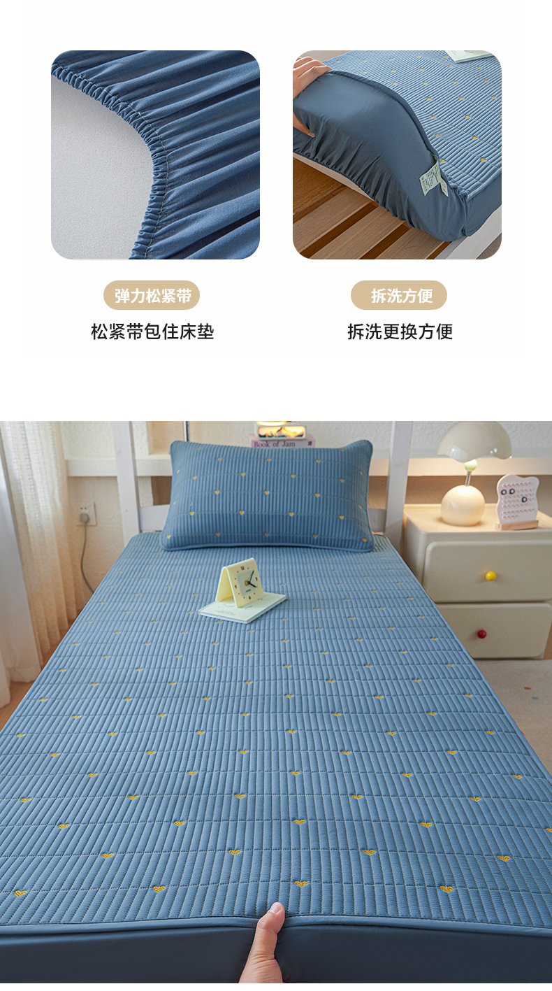 芬晴家纺 2025春夏新款A类大豆夹棉学生床笠单床笠床笠单件-繁星-爱心系列 爱心-雾蓝