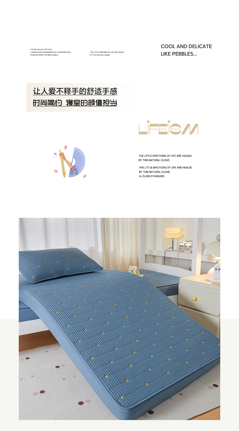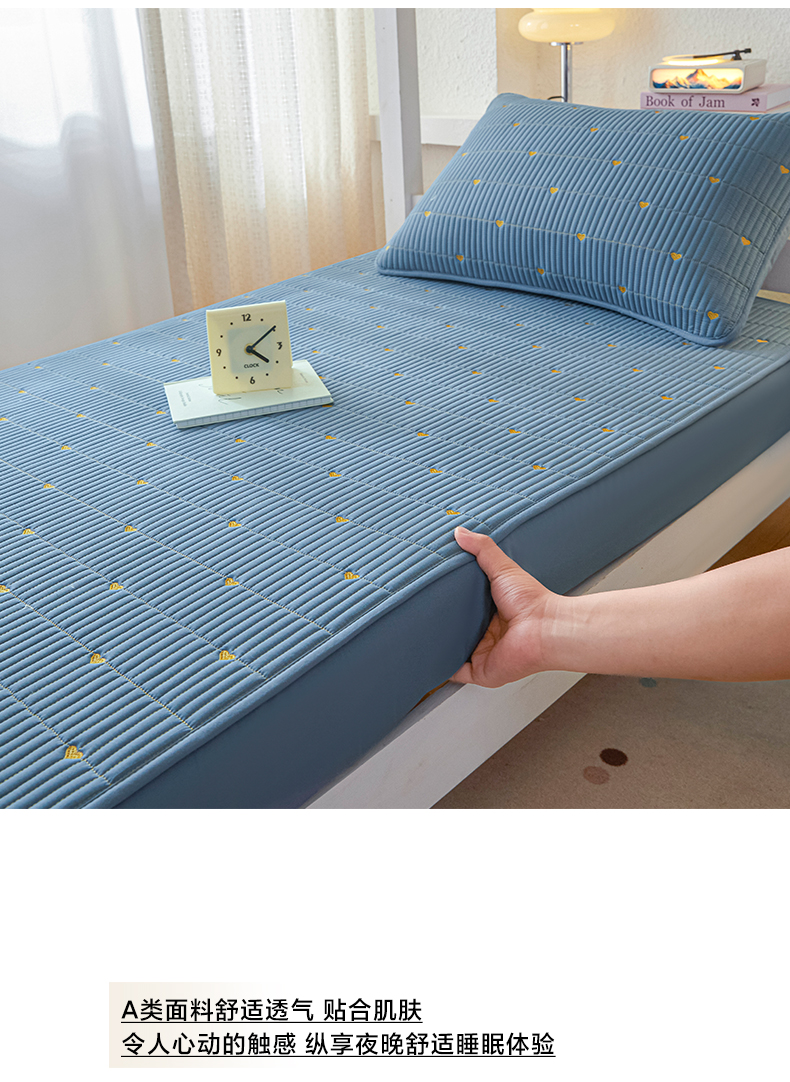 • 91家纺网 家纺一手货源 找家纺 芬晴家纺 2025春夏新款A类大豆夹棉学生床笠单床笠床笠单件-繁星-爱心系列 爱心-雾蓝