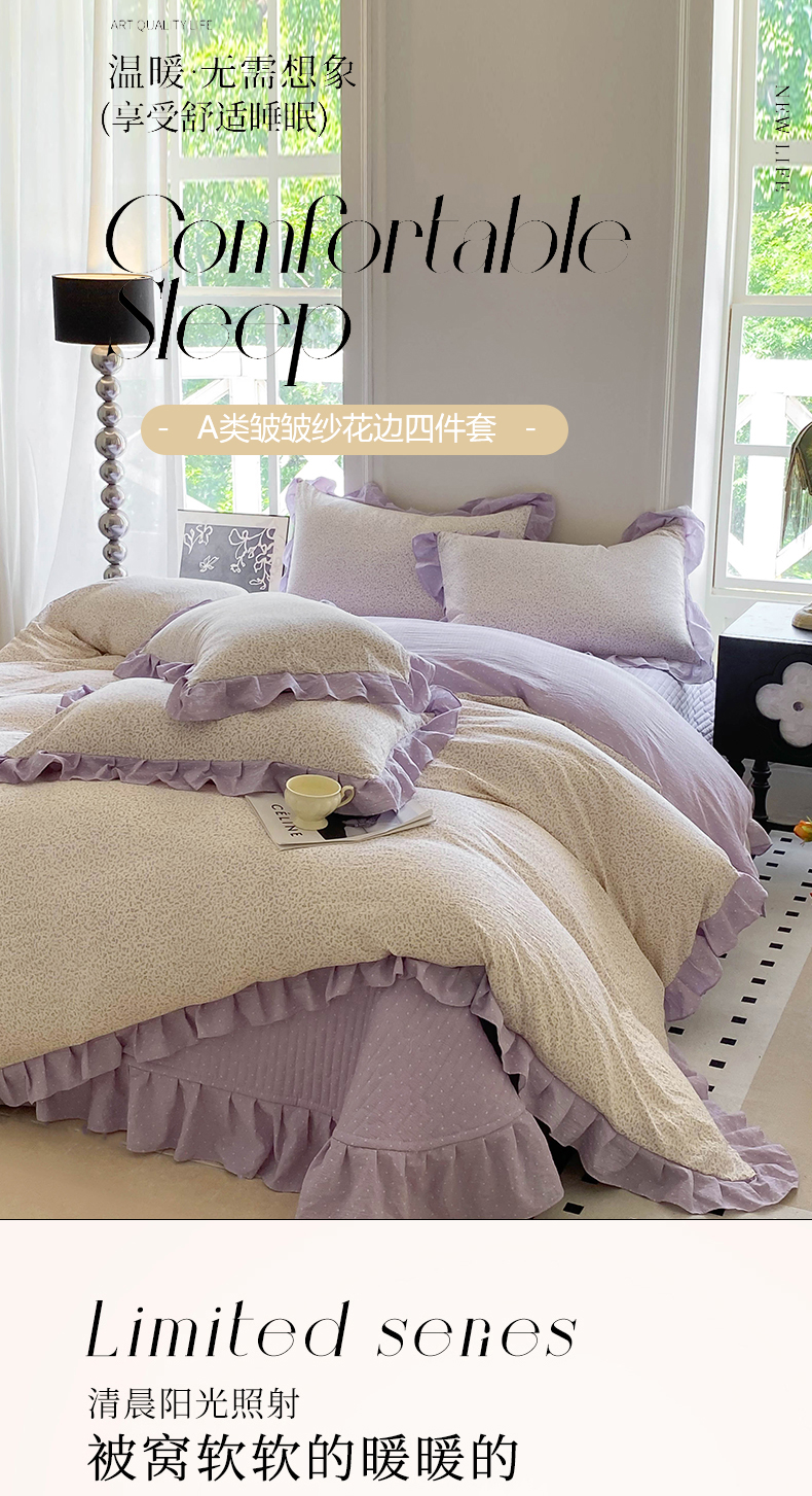 (总)富之航家纺 2025新款小香风赫本风ins风大牌韩版大花边轻奢牛奶绒四件套,蝶恋花,蝶栖,黑糖,楼桃,眠语,慕秋,叶叙,游园-白,游园-绿,紫萝