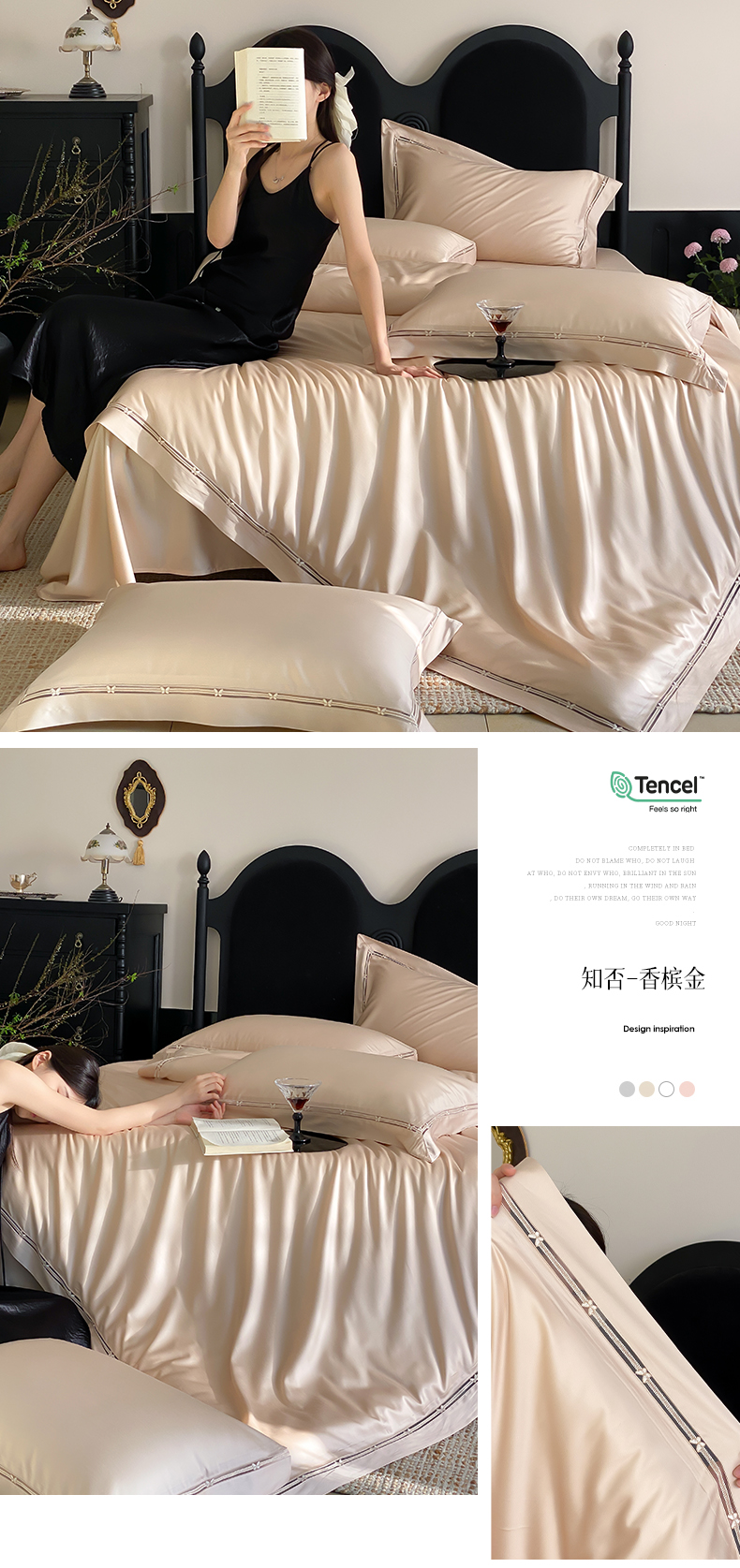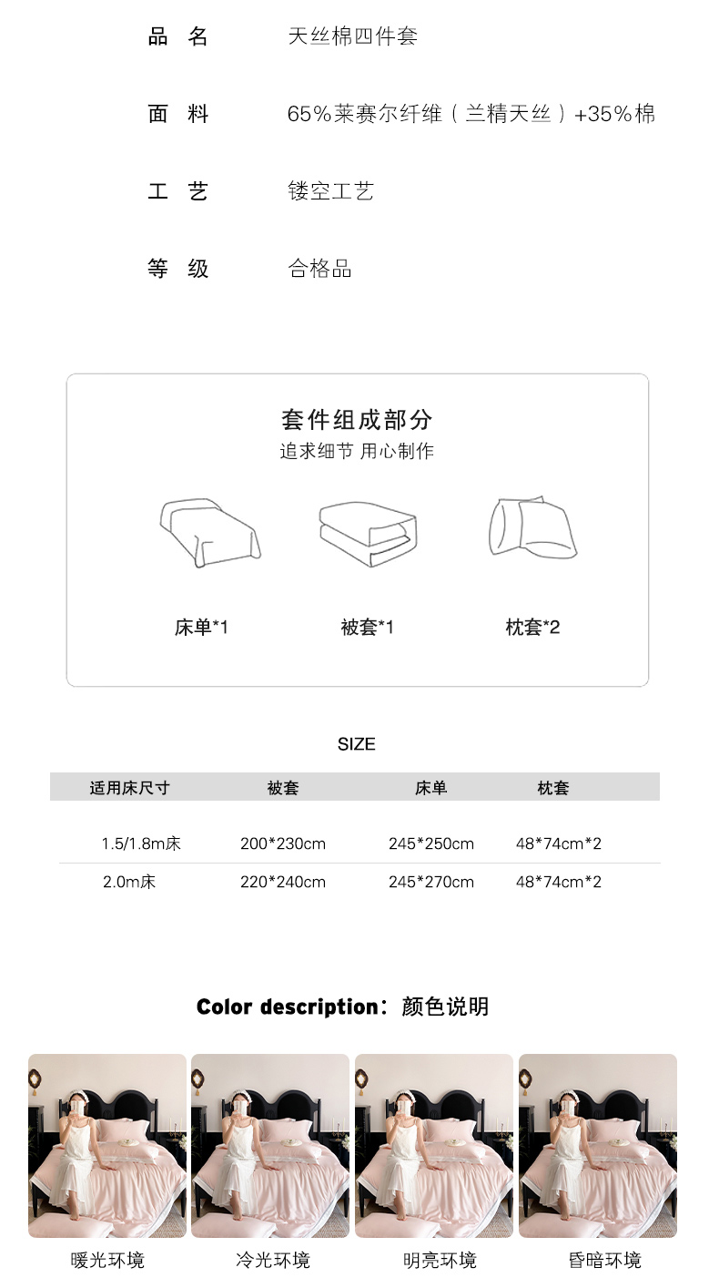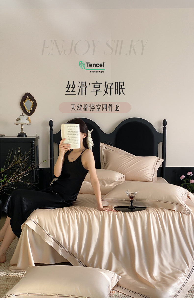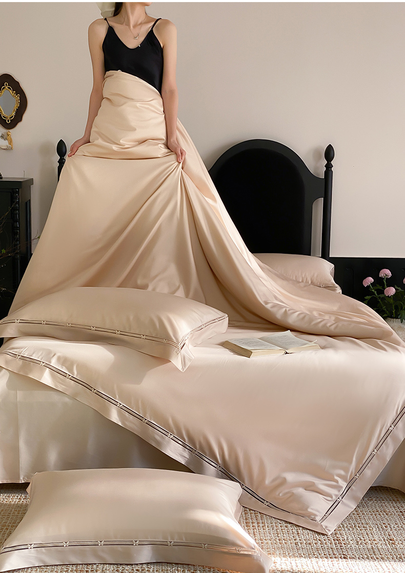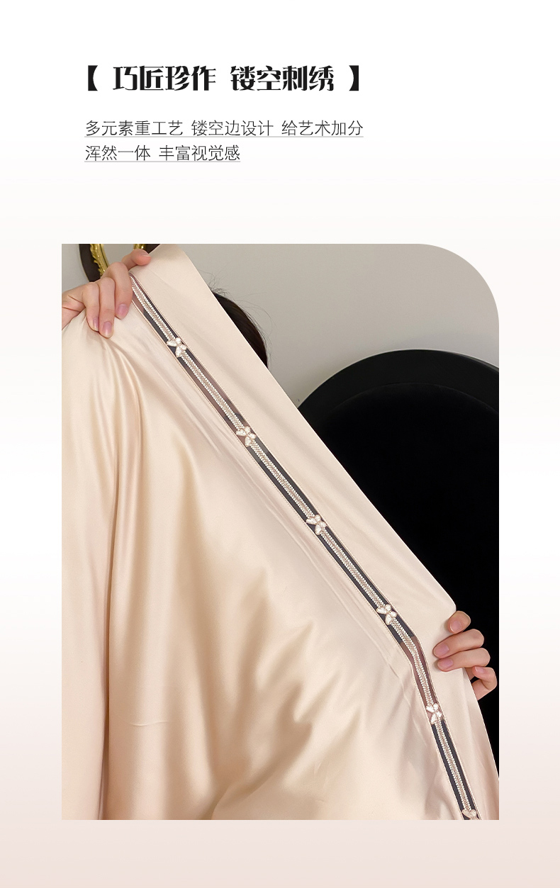 商品名称:云栖家居 2025天丝棉纯色镂空四件套-知否 知否-香槟金