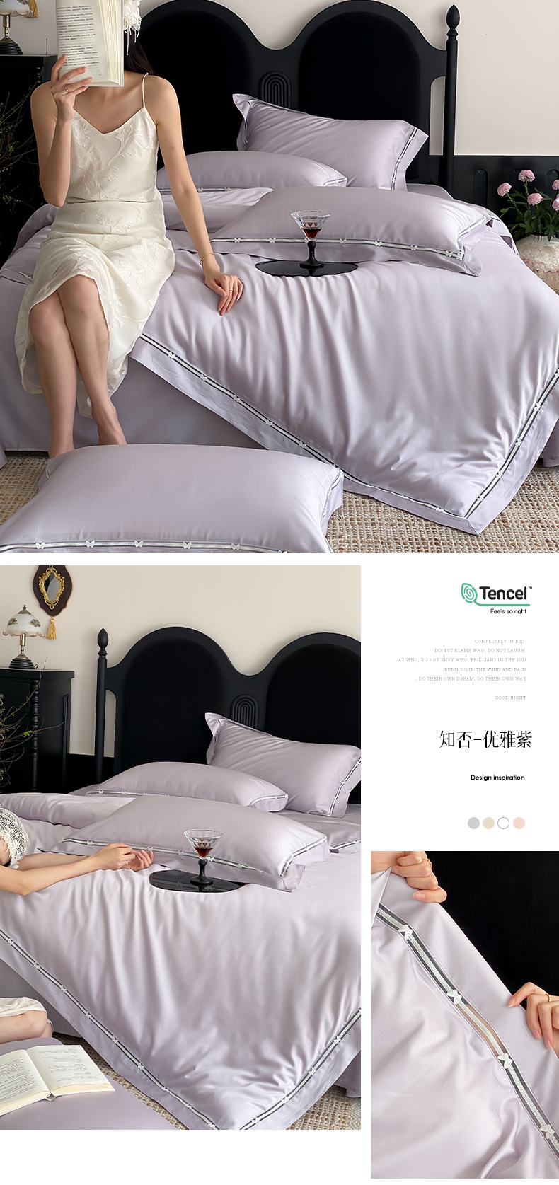 (总)云栖家居 2025秋冬新款50支纯色双拼加厚全棉磨毛被套刺绣100S纯棉四件套-小蝴蝶系列,粉灰,粉紫,蓝灰,米玉,月光黄