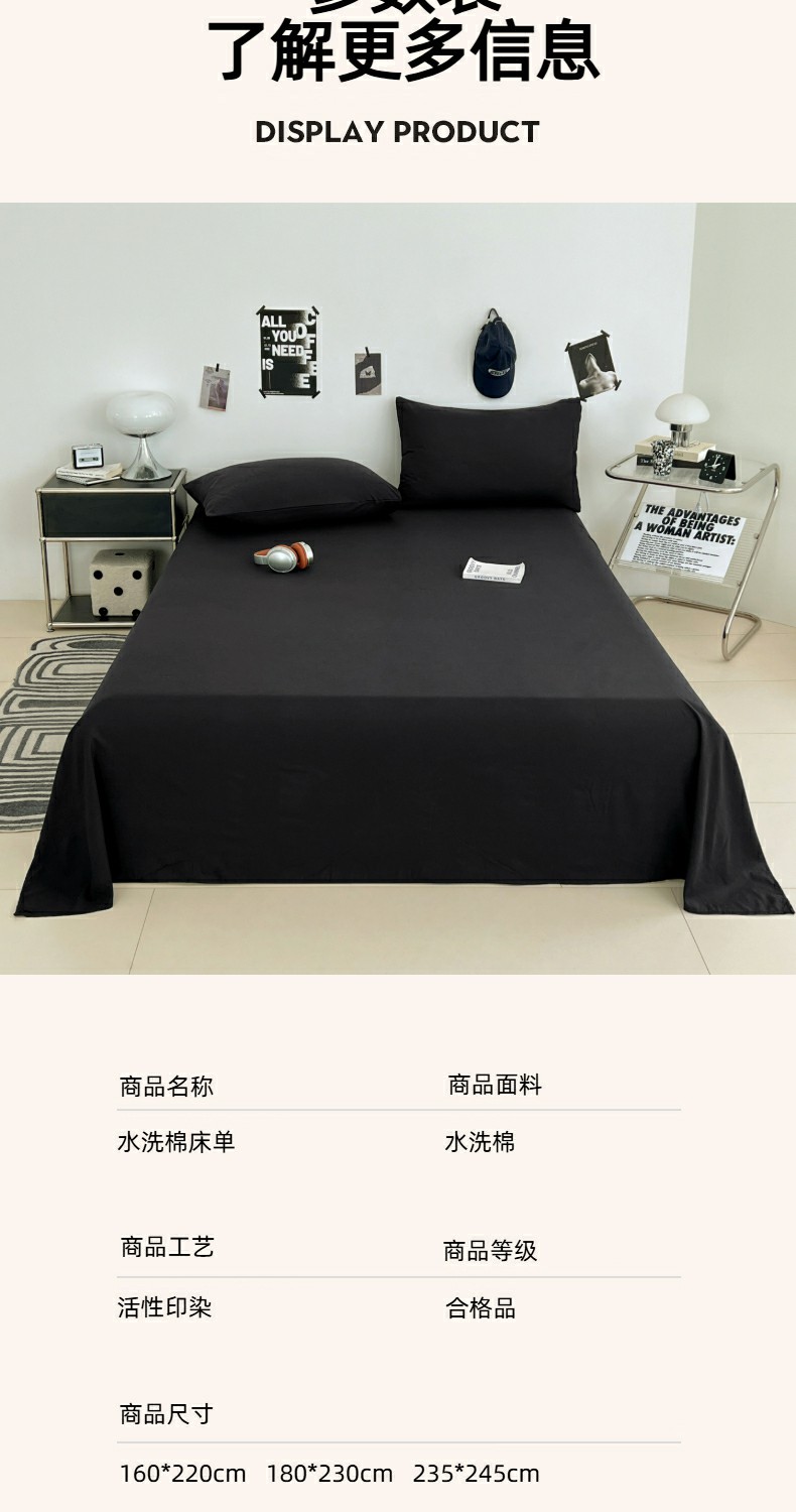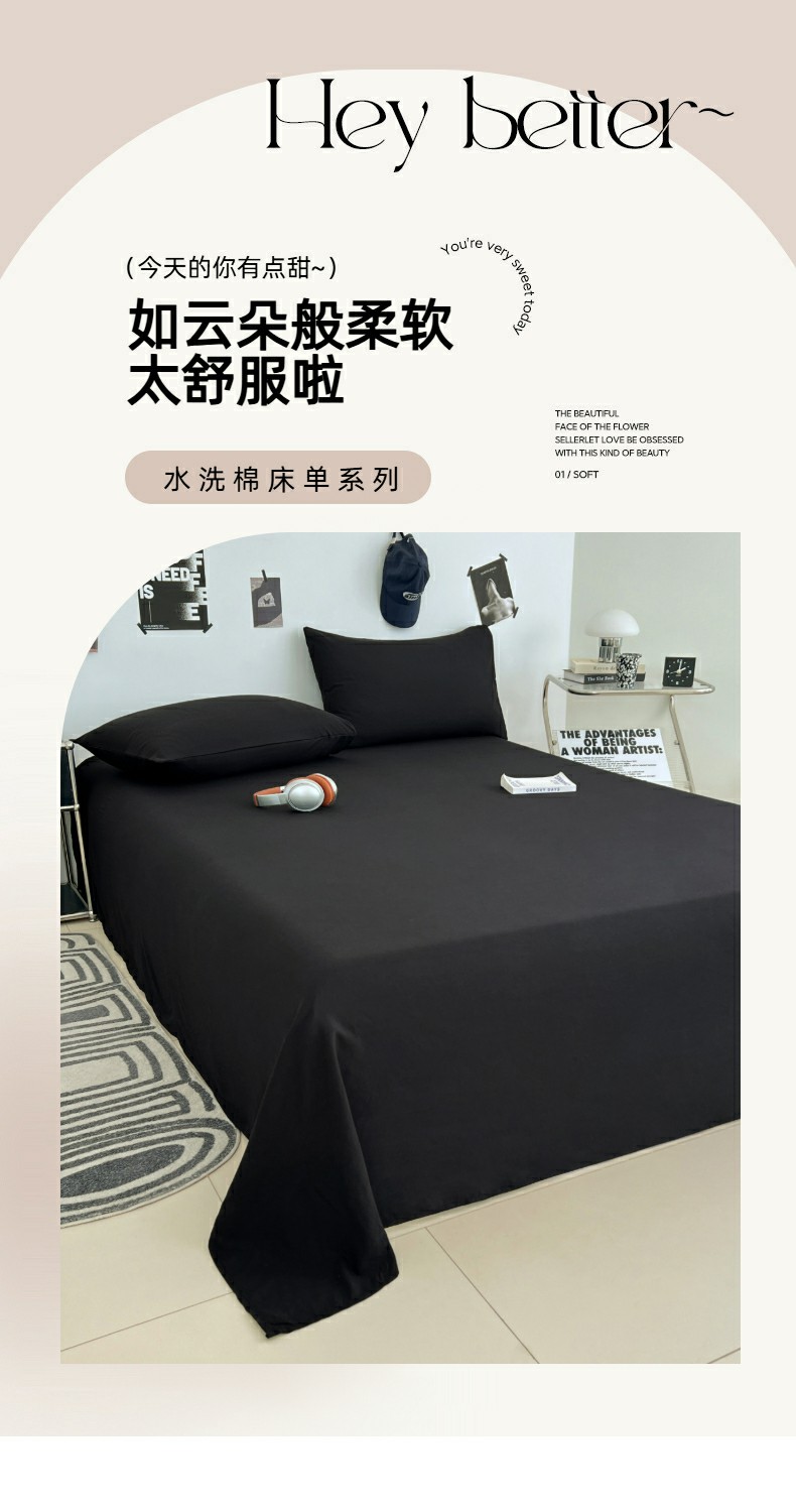 优尚佳生活馆 2025新款亲肤水洗棉纯色单品床单 静夜