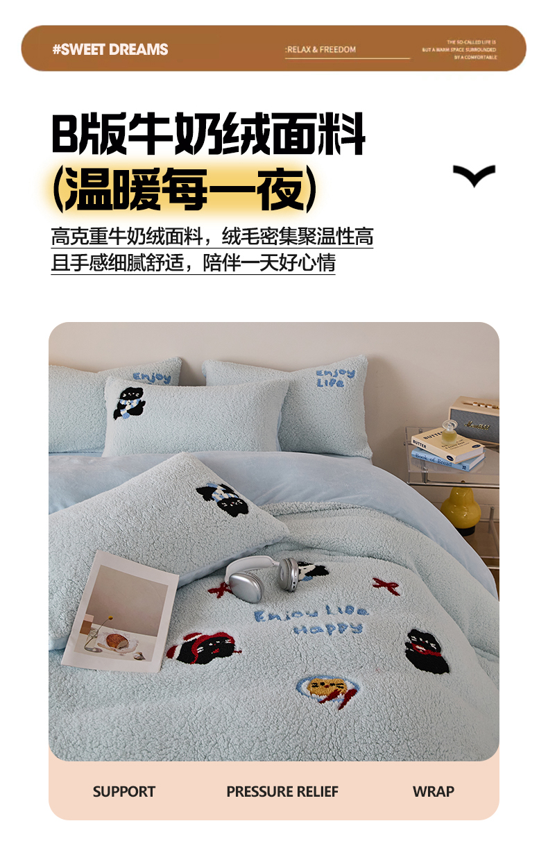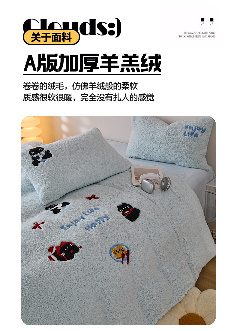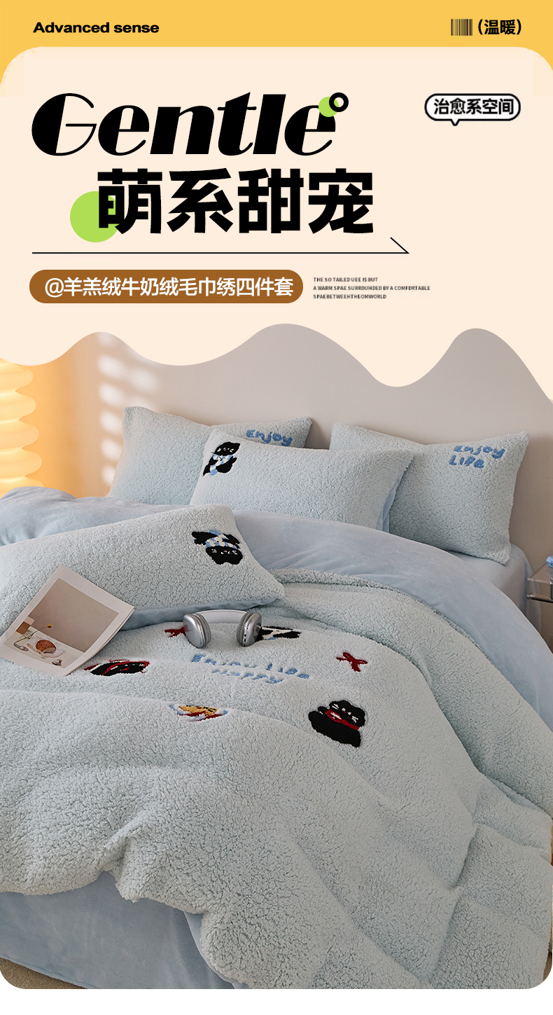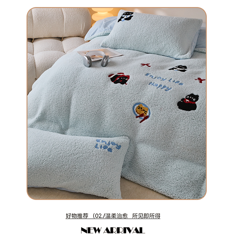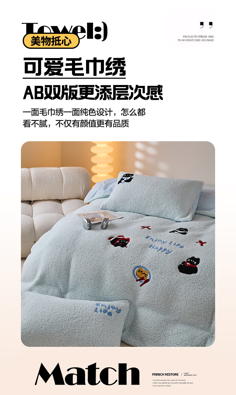 当前位置: 91家纺网 > 商品网购 > 床品套件 > 四件套 > 牛奶绒四件套 > 曼町家居 2025新款羊羔绒牛奶绒毛巾绣四件套 猫咪早餐·蓝