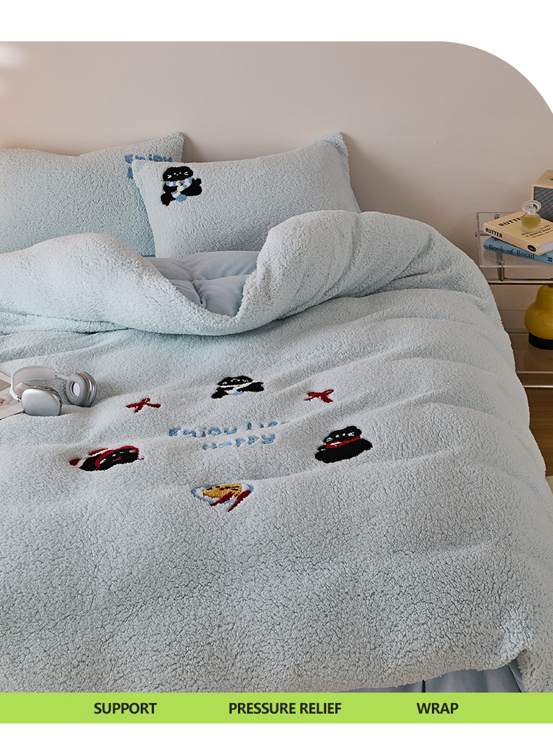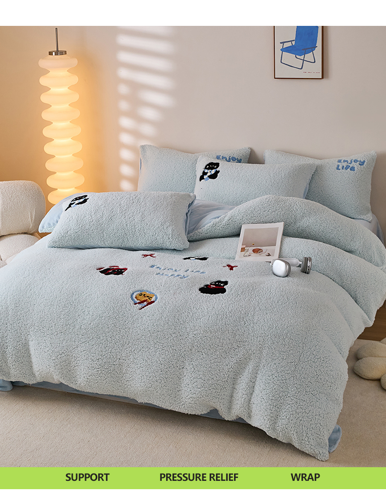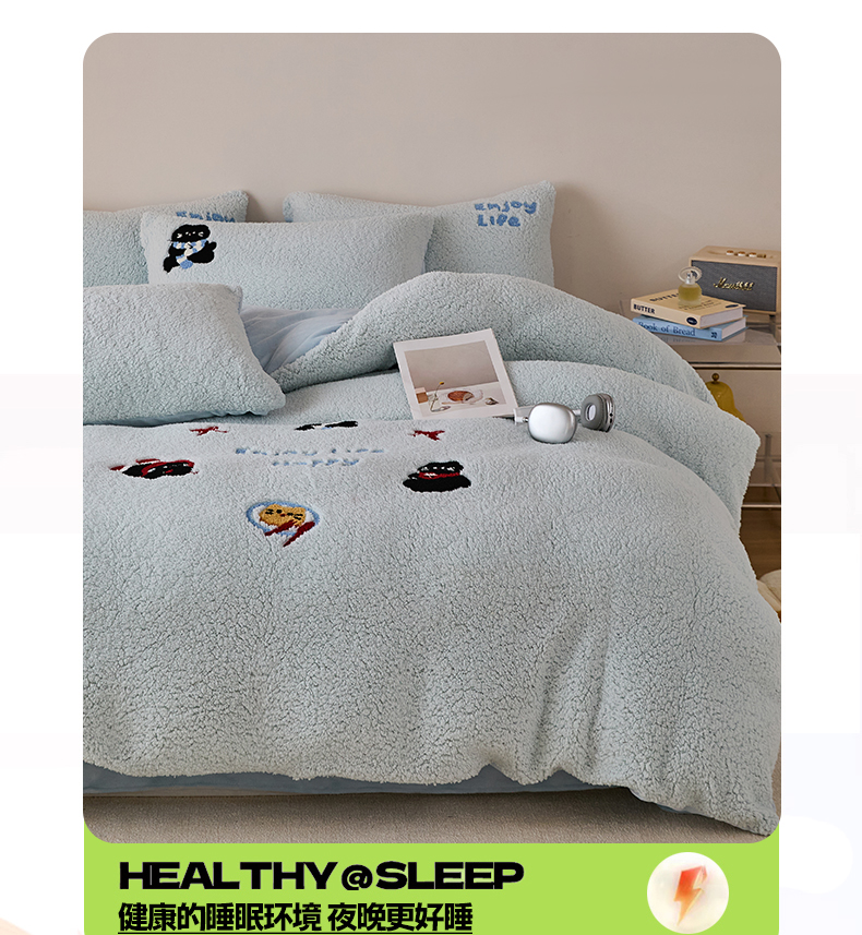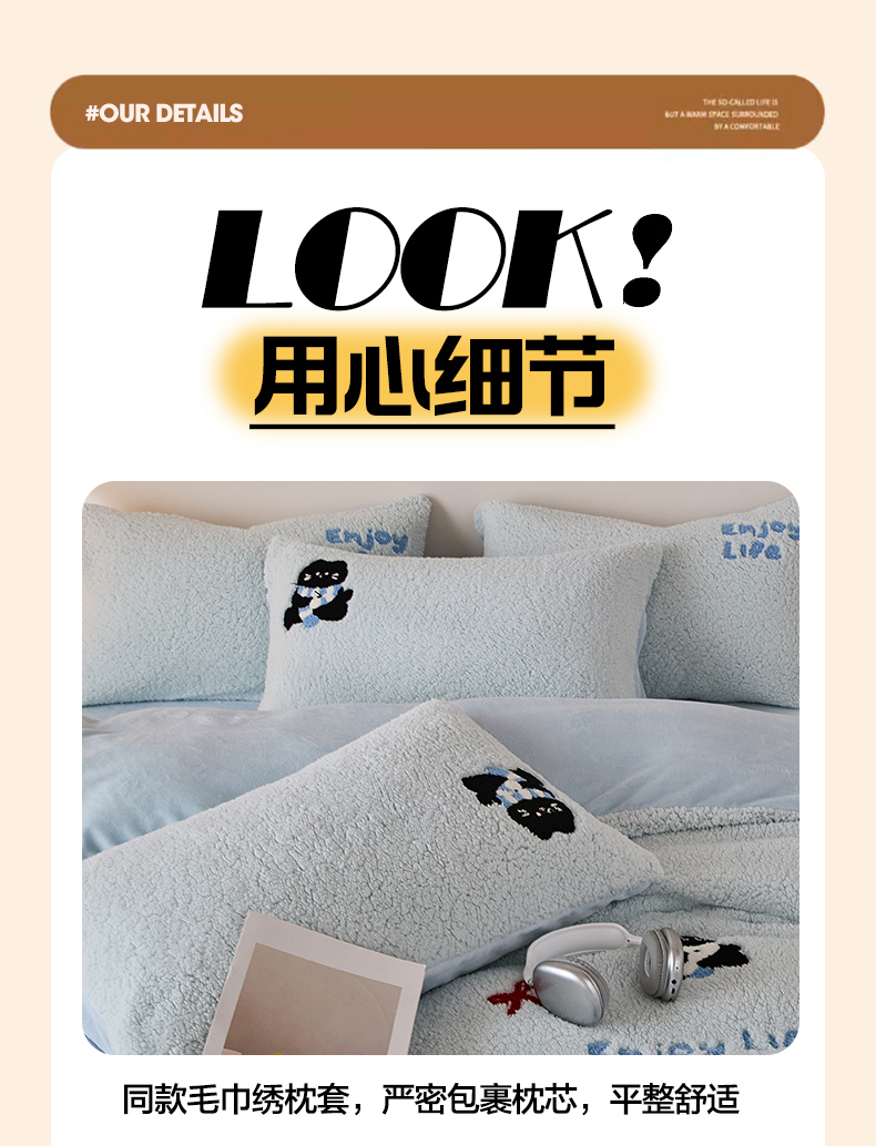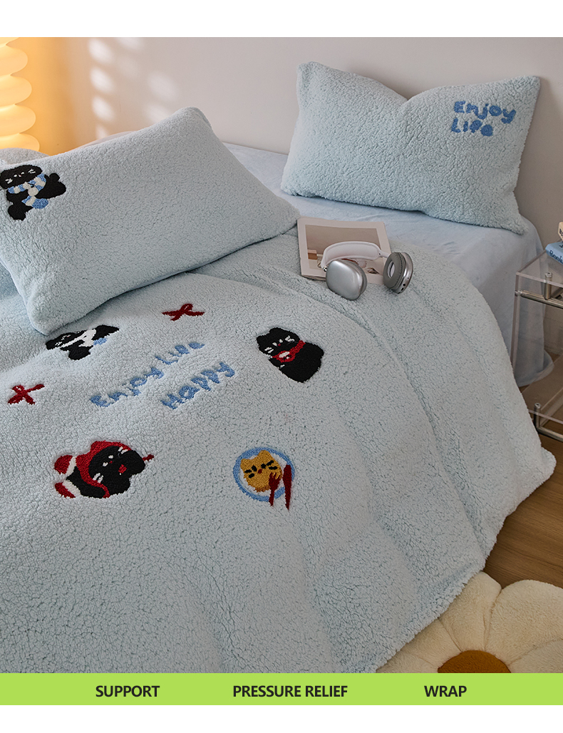 当前位置: 91家纺网 > 商品网购 > 床品套件 > 四件套 > 牛奶绒四件套 > 曼町家居 2025新款羊羔绒牛奶绒毛巾绣四件套 猫咪早餐·蓝