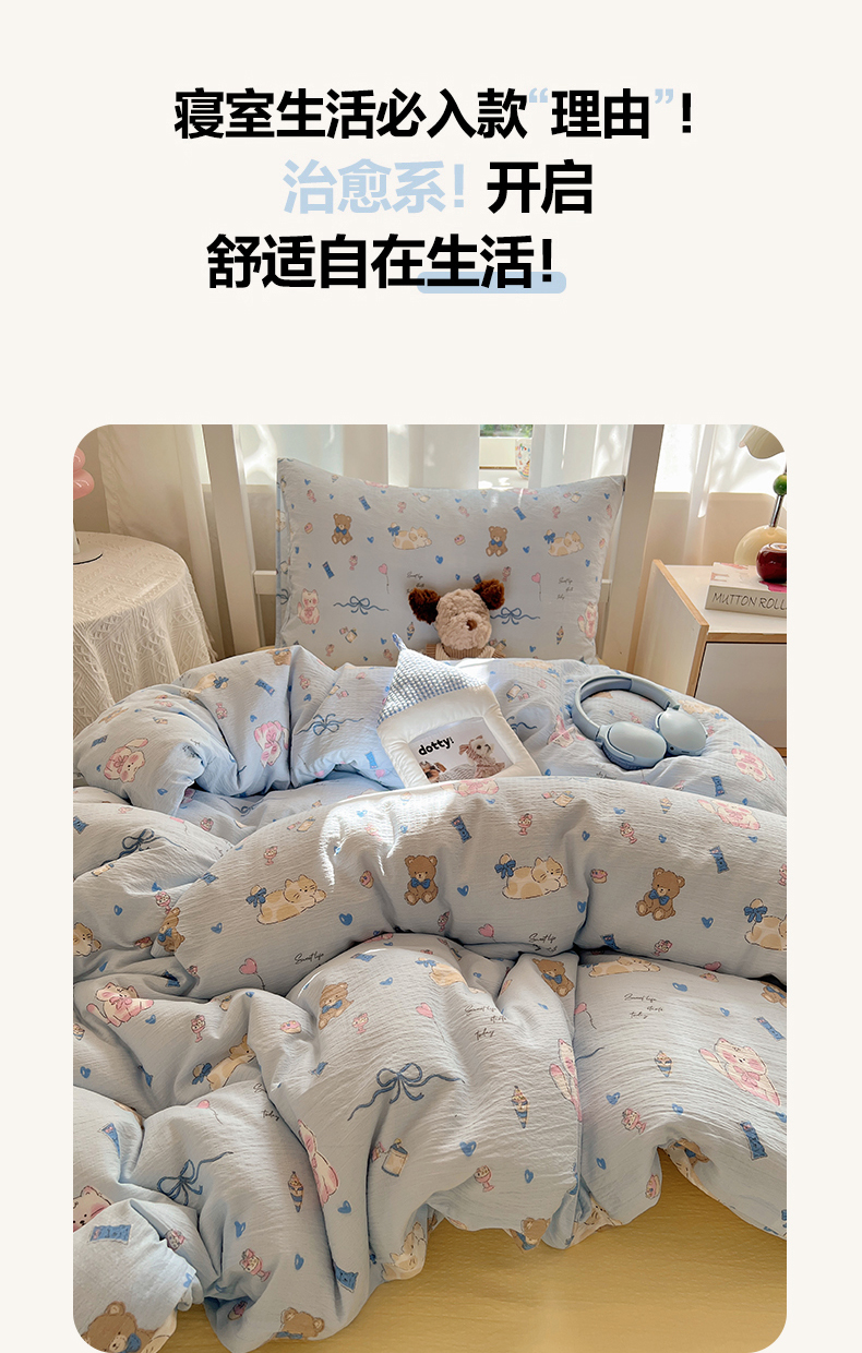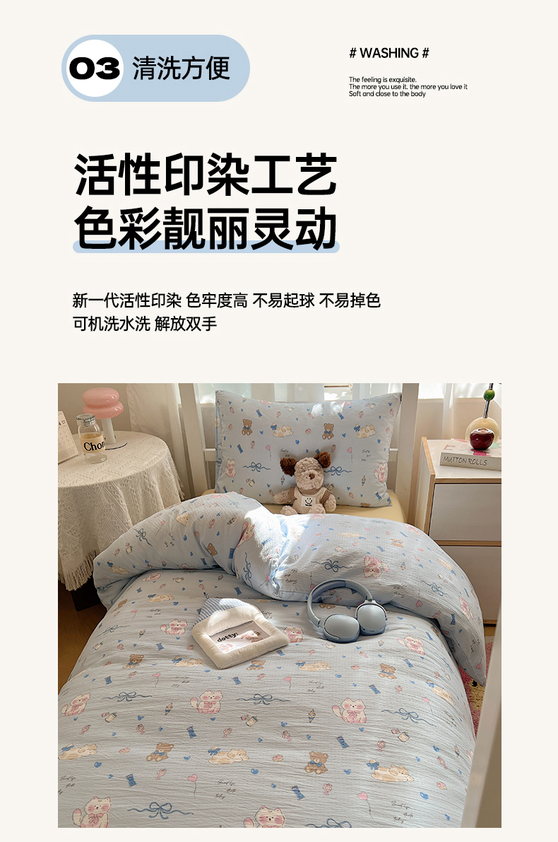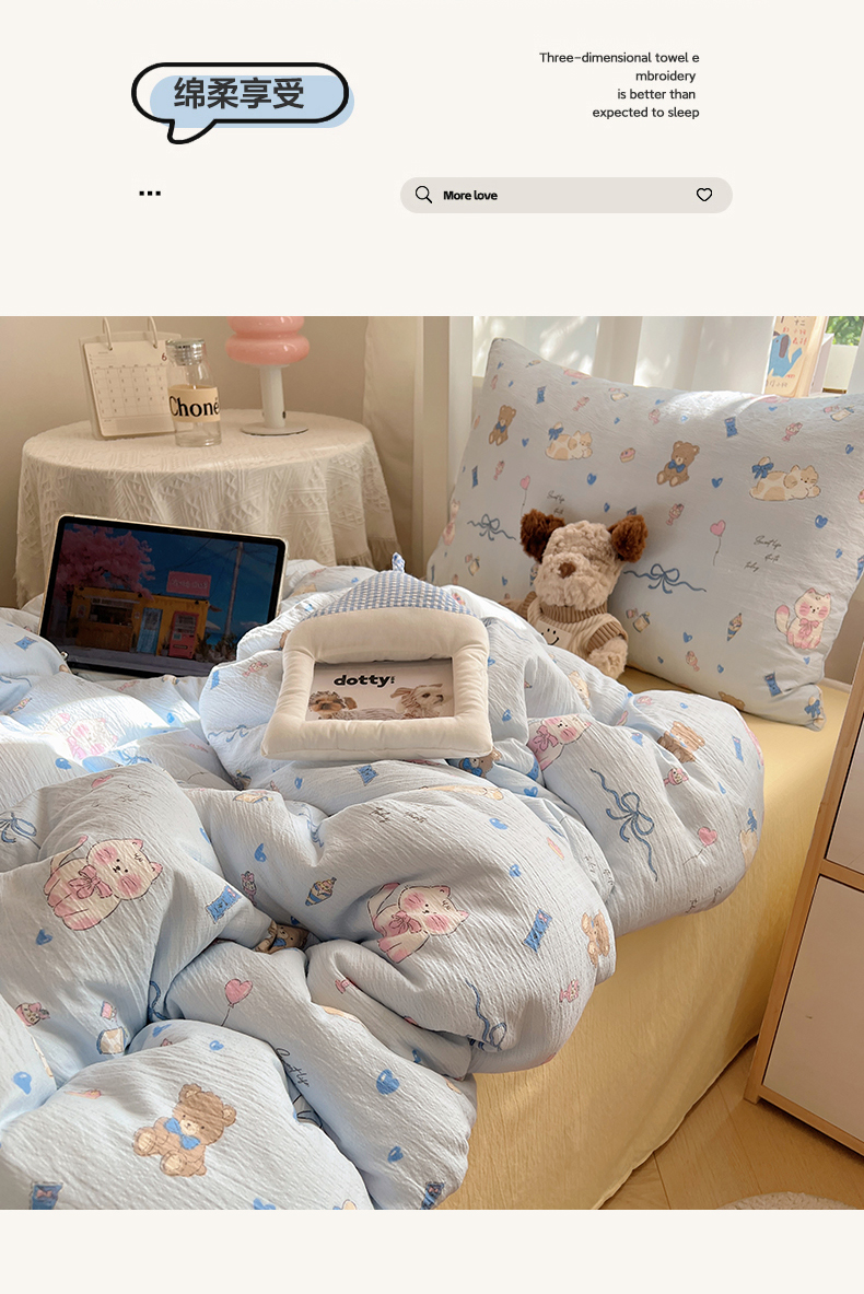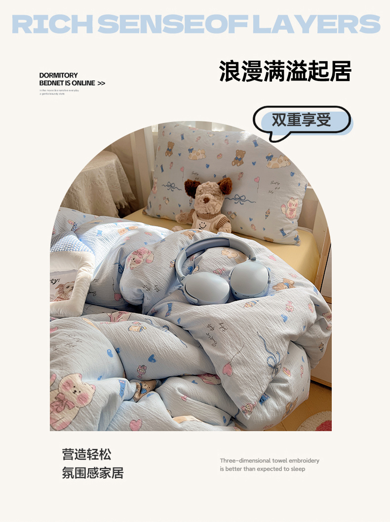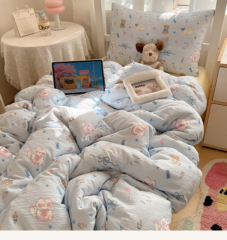 当前位置: 91家纺网 > 商品网购 > 床品套件 > 四件套 > 双层纱四件套 > 韩巢家纺 2025新款双层纱学生季床铺单件被套宿舍寝室上下铺三件套 小猫时光篮