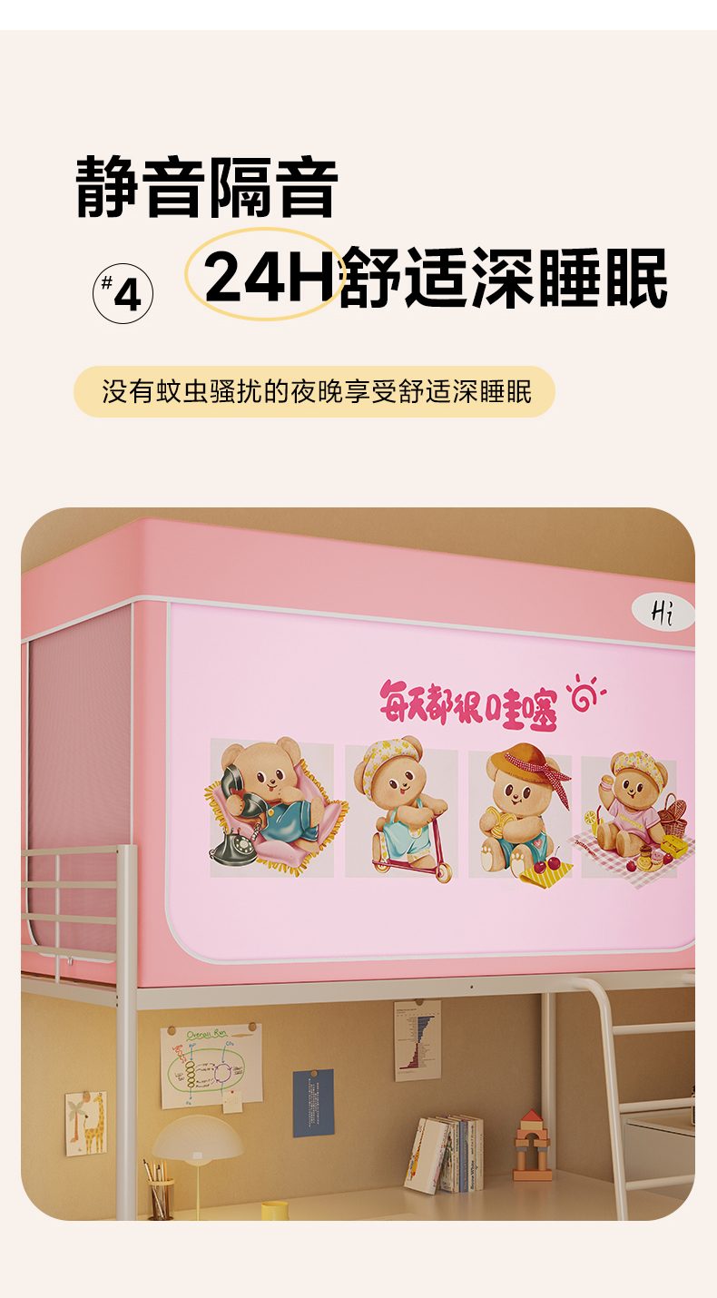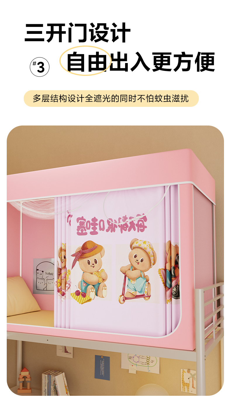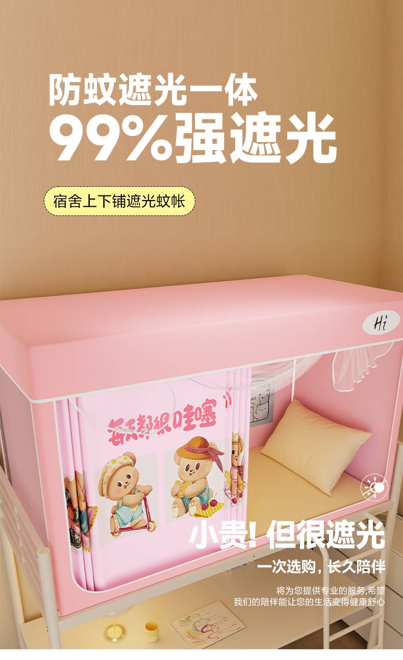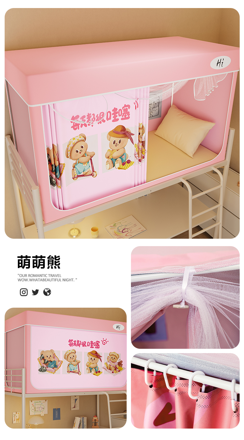 当前位置: 91家纺网 > 商品网购 > 床上用品 > 蚊帐 > 学生蚊帐 > 安金蚊帐2025新款防蚊遮光一体99%强遮光学生宿舍上下铺遮光学生蚊帐-粉色系列 萌萌熊