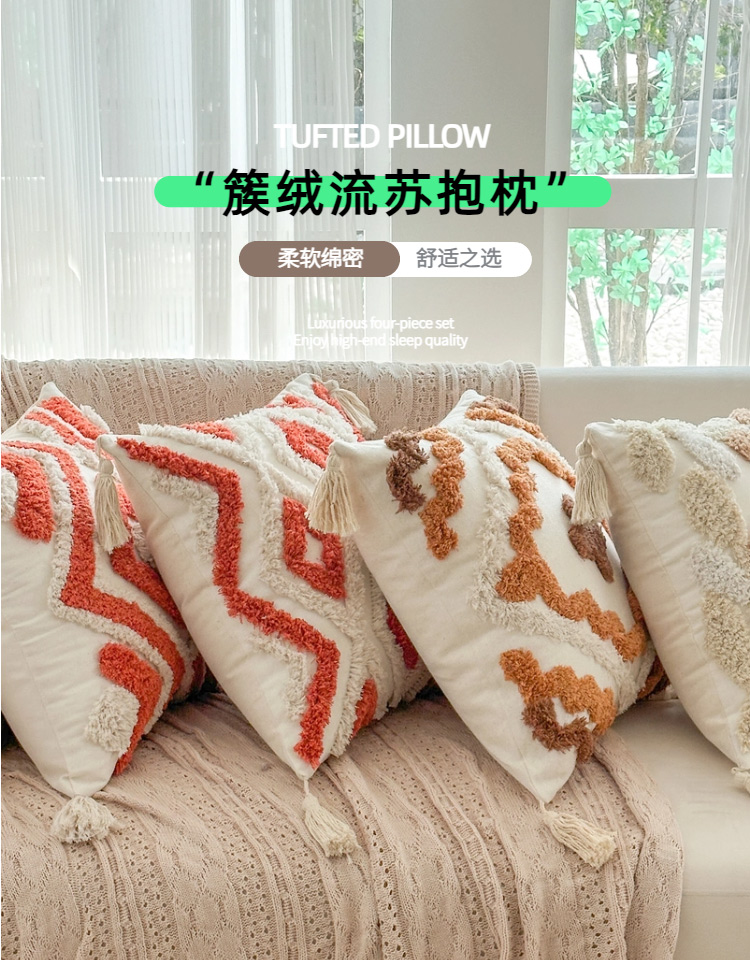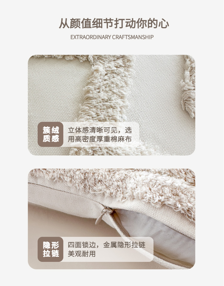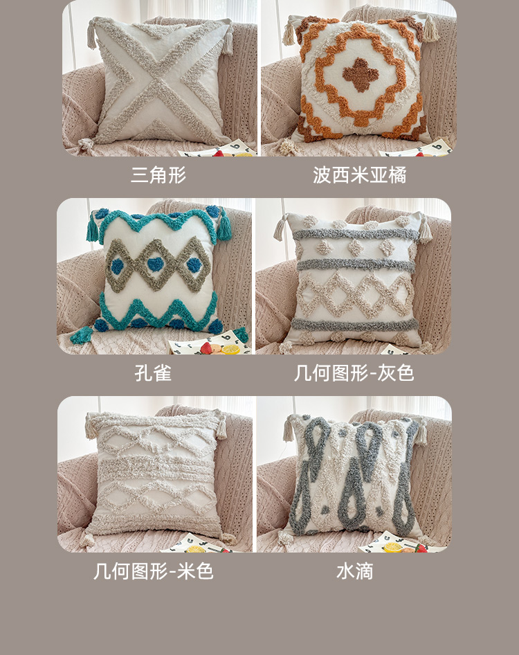 商品名称:新奇异 2025新款簇绒流苏抱枕 几何图形-灰色