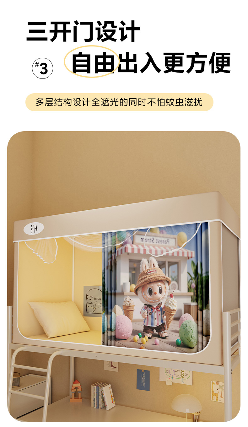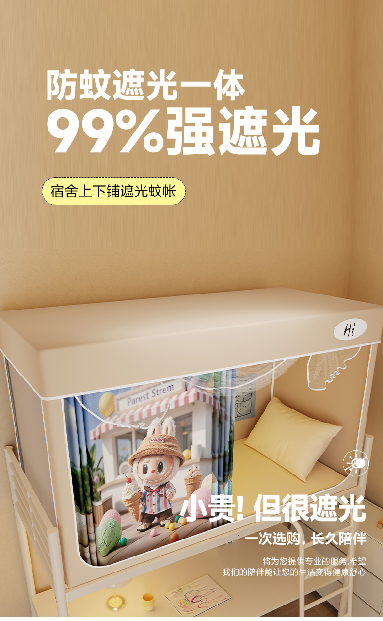 当前位置: 91家纺网 > 商品网购 > 床上用品 > 蚊帐 > 学生蚊帐 > 安金蚊帐2025新款防蚊遮光一体99%强遮光学生宿舍上下铺遮光学生蚊帐-卡其系列 甜筒布布