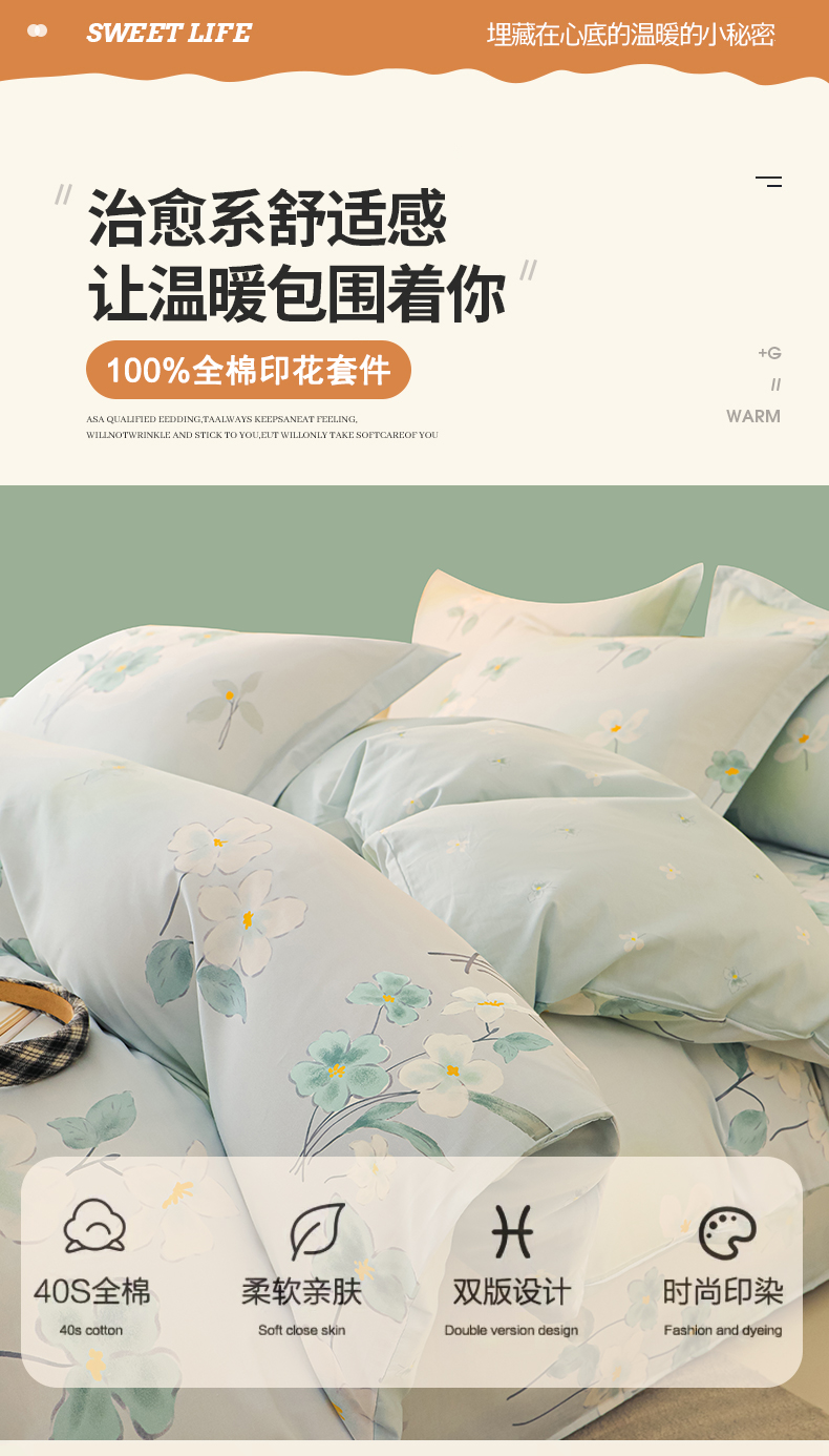 当前位置: 91家纺网 > 商品网购 > 床品套件 > 四件套 > 全棉普通四件套 > 金鑫汇家纺 2025新款13372全棉纯棉高端数码印花四件套 喜鹊