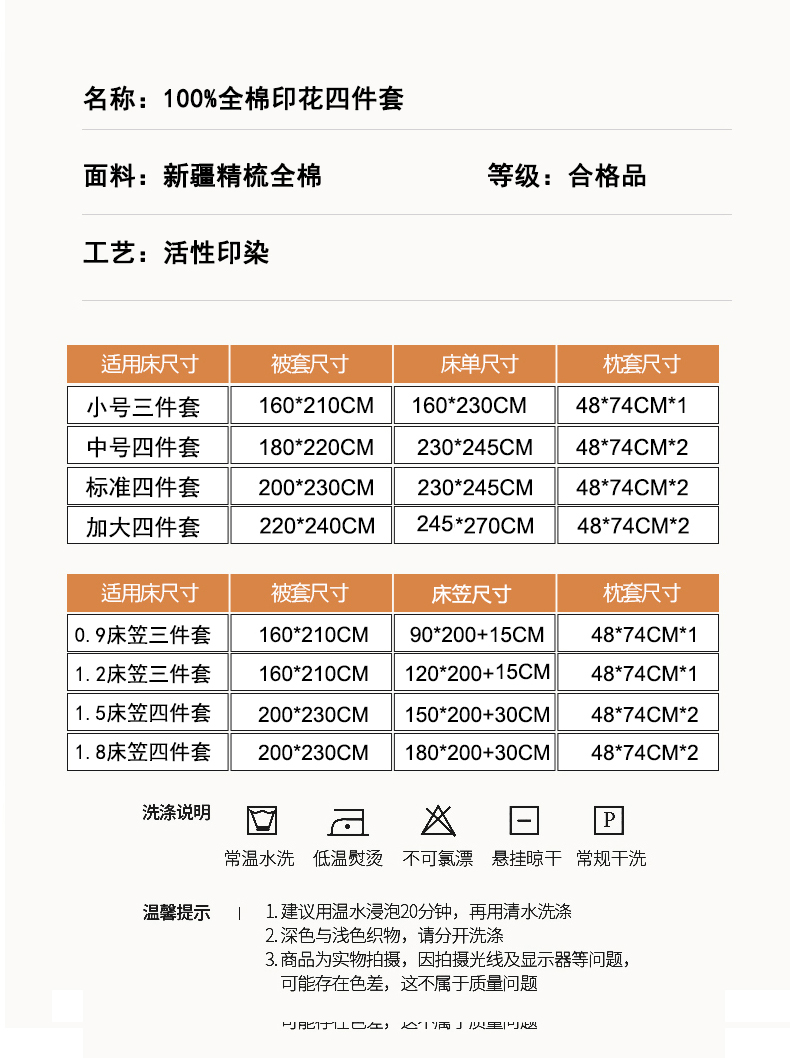 【床笠款】1.5四件套-被套200x230 | ¥125.00 |