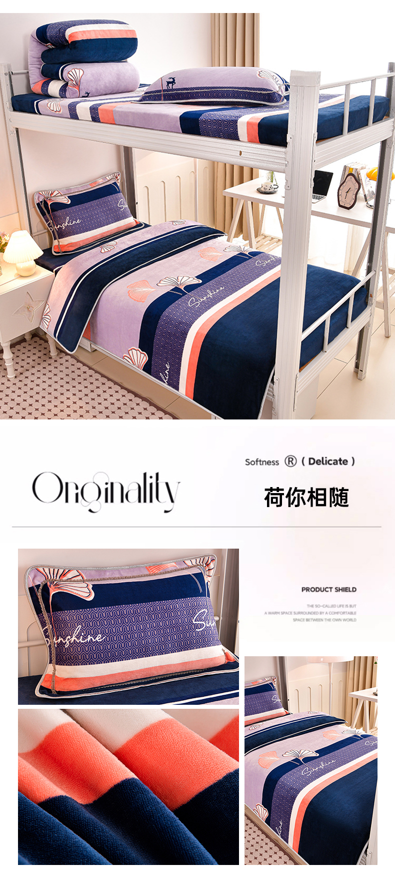 硕喜 2025新款学生宿舍床系列牛奶绒学生三件套 荷你相随